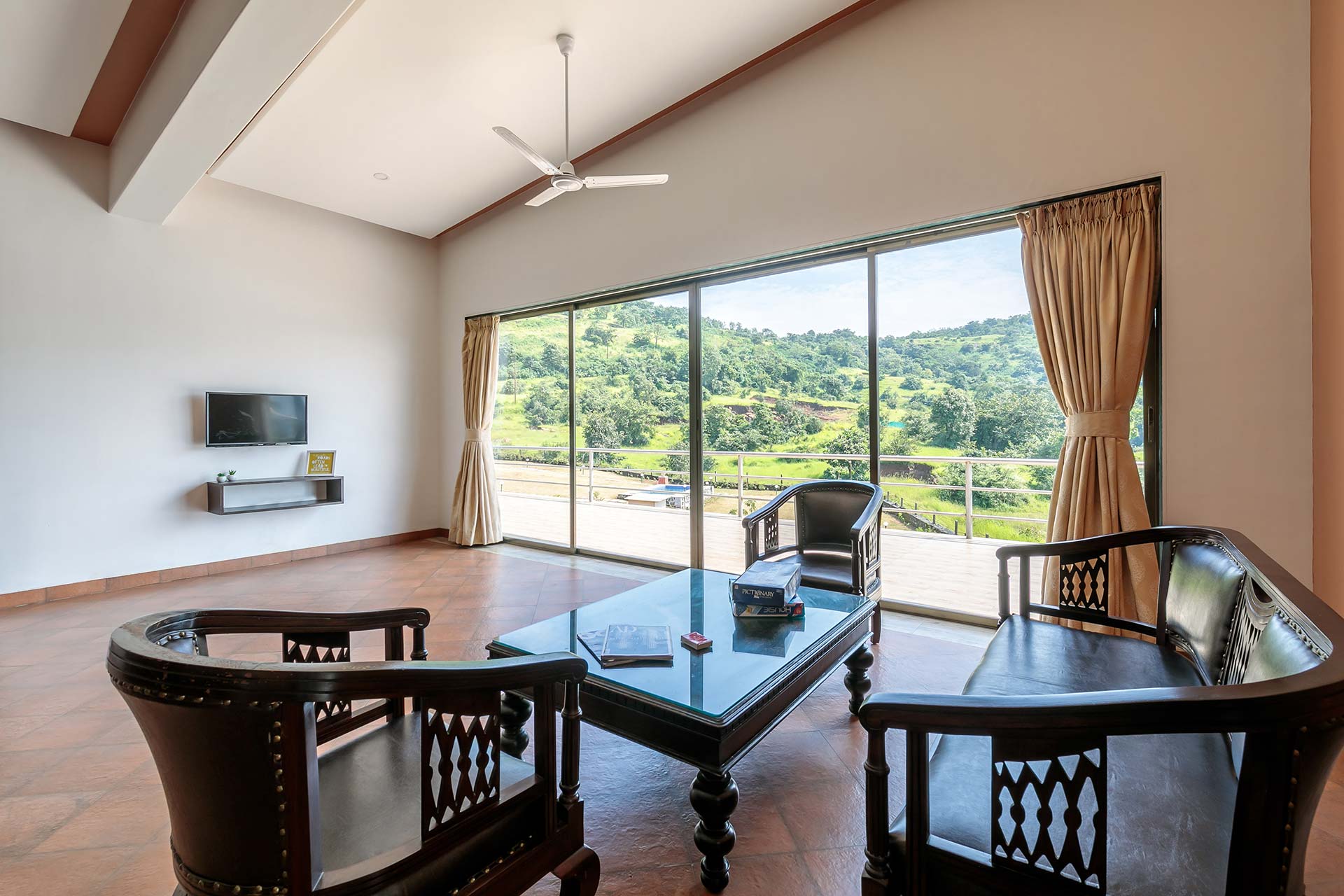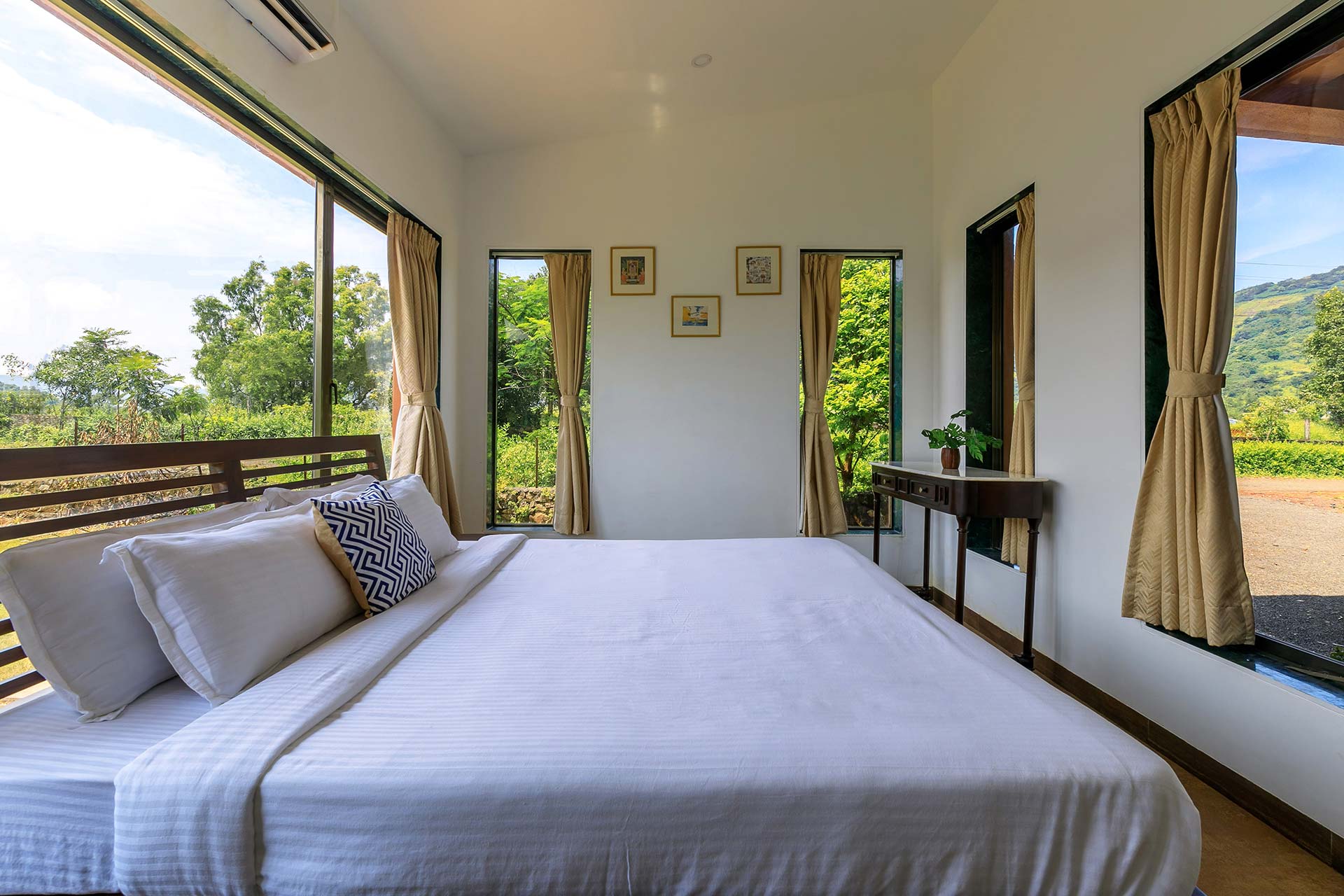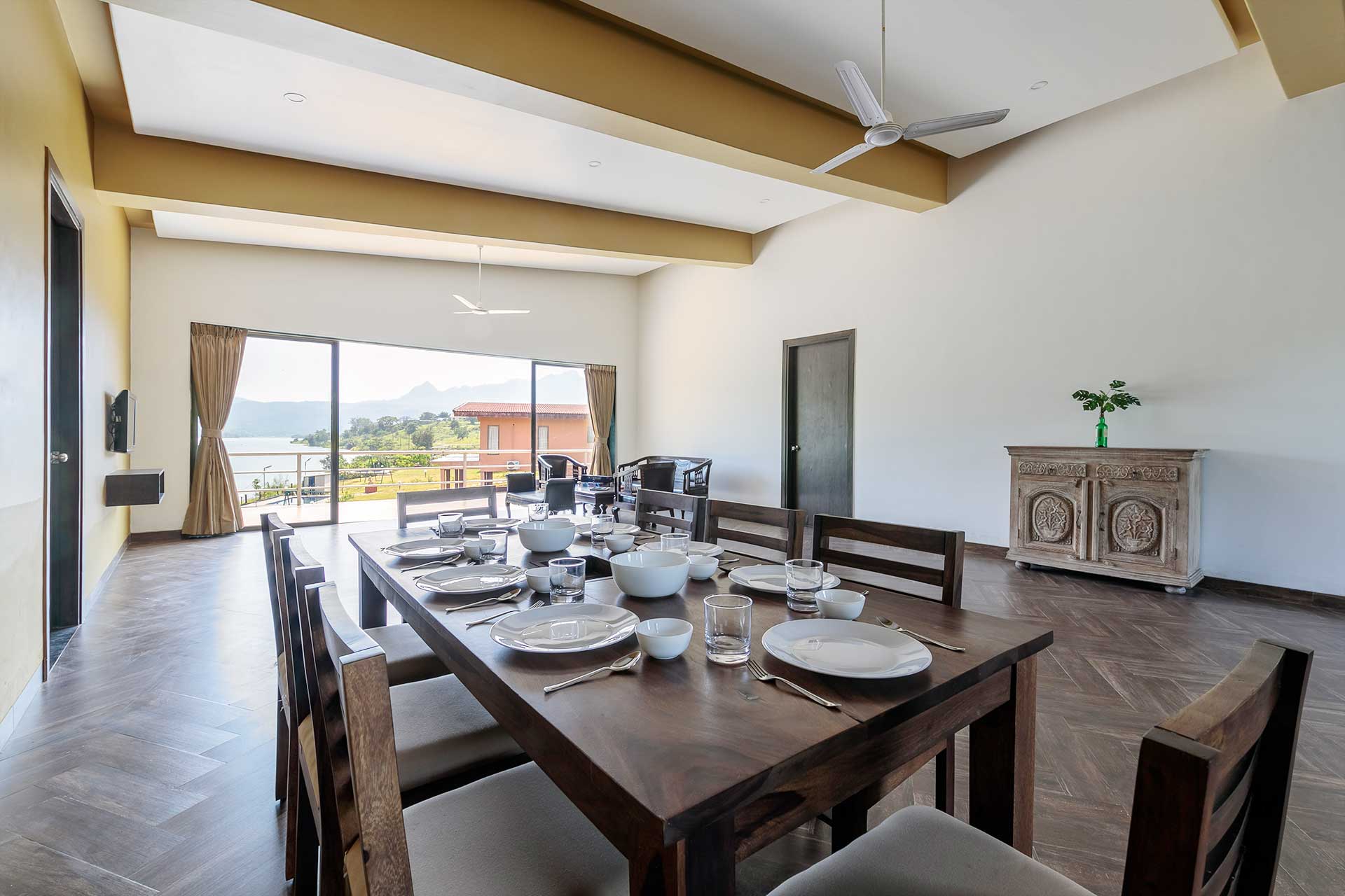 Promising a rejuvenating getaway amidst spectacular landscapes, Shivom Villa is a beautiful property in Pawna. Within the property, guests can start their day with a brisk morning walk on the lawns or enjoy a competitive match of badminton. Gather your loved ones and play indoor games such as cards and ludo. Reserve the evenings for a refreshing splash in the private swimming pools that overlook the lake. Head over to the outdoor deck and soak in the soothing views of the lake as the sky is painted in the vibrant hues of the sunset. Go home relaxed and with a bag of memories.