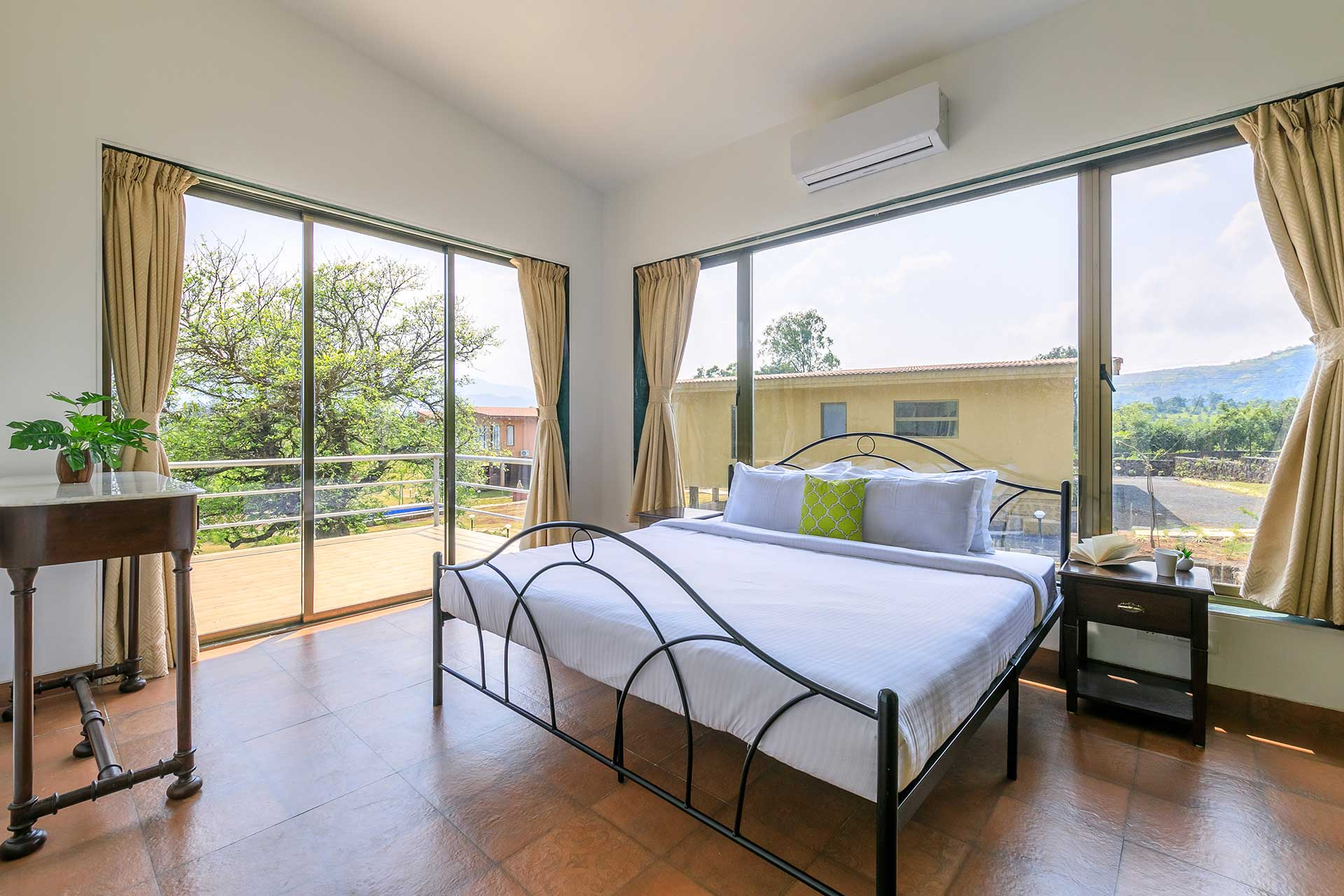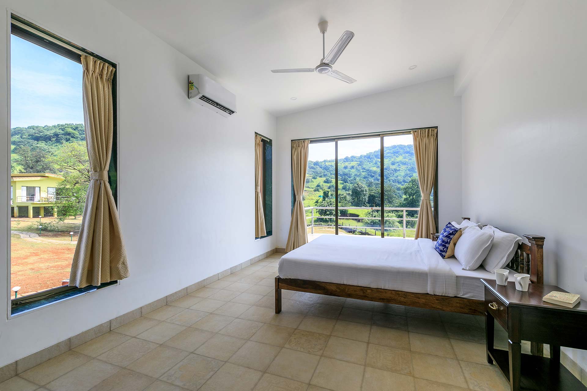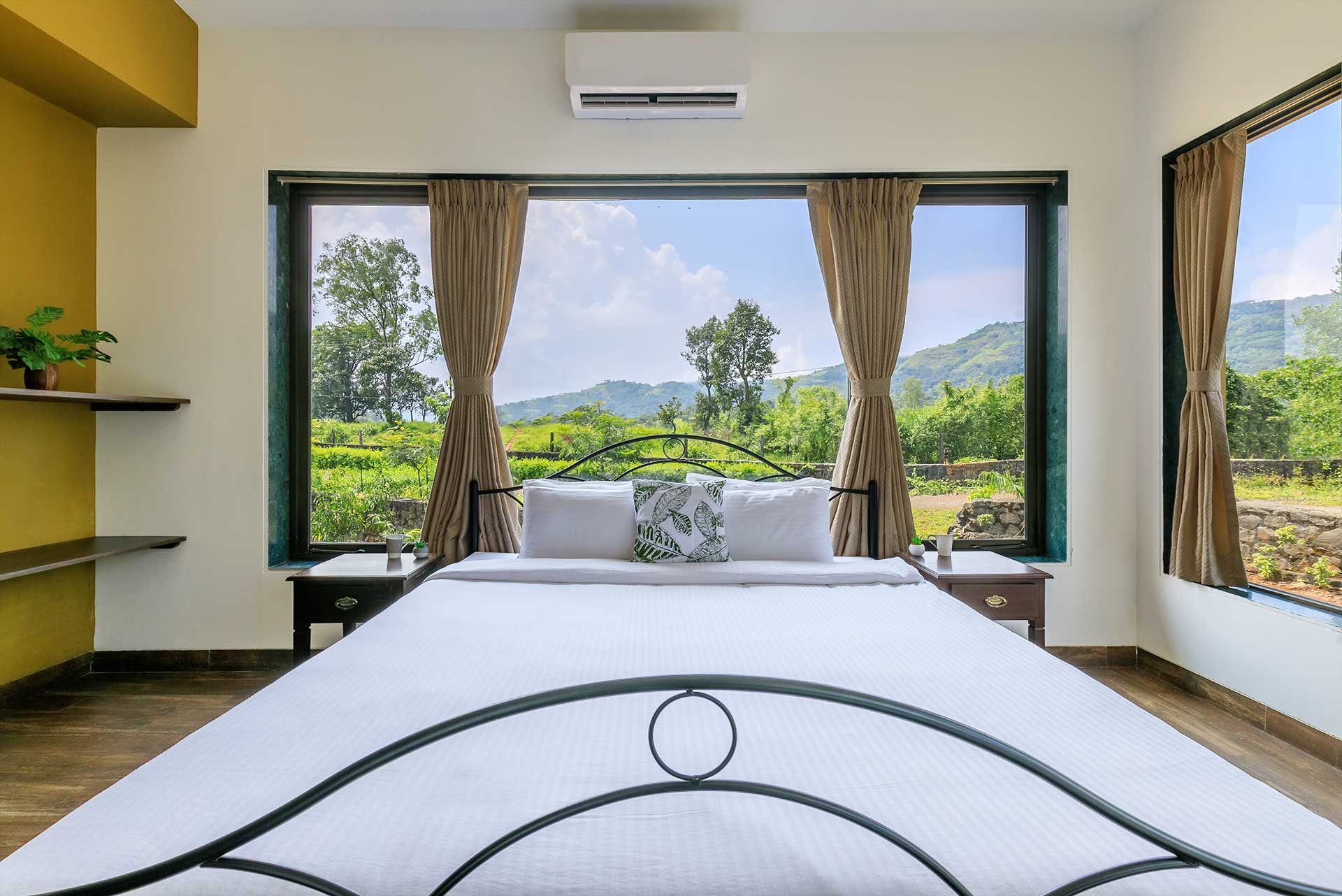 Promising a rejuvenating getaway amidst spectacular landscapes, Shivom Villa is a beautiful property in Pawna. Within the property, guests can start their day with a brisk morning walk on the lawns or enjoy a competitive match of badminton. Gather your loved ones and play indoor games such as cards and ludo. Reserve the evenings for a refreshing splash in the private swimming pools that overlook the lake. Head over to the outdoor deck and soak in the soothing views of the lake as the sky is painted in the vibrant hues of the sunset. Go home relaxed and with a bag of memories.