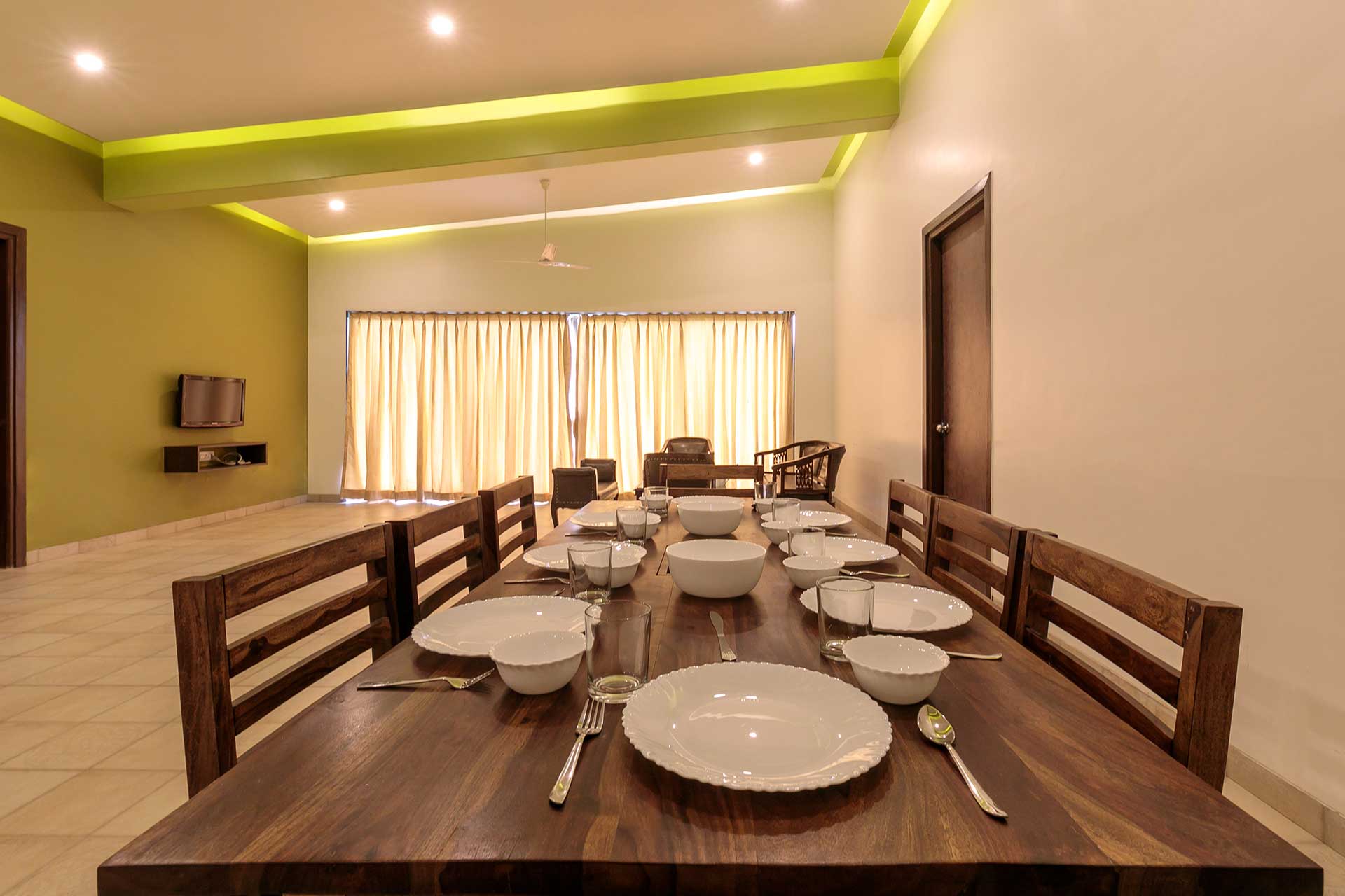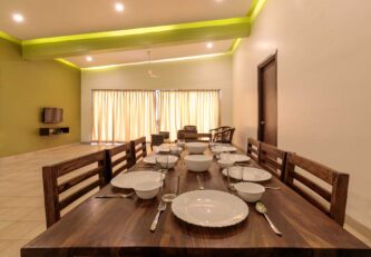 Surrounded by lush greens, Shivom Villa is a peaceful haven in the lap of nature. A swimming pool in the middle of the garden is perfect to just relax in while soaking in the views all around, which often include waterfalls as well! The inside space is neat and every comfort of a home that you may need is available for you. With additional facilities such as bonfires, Shivom Villa makes for a great getaway option!