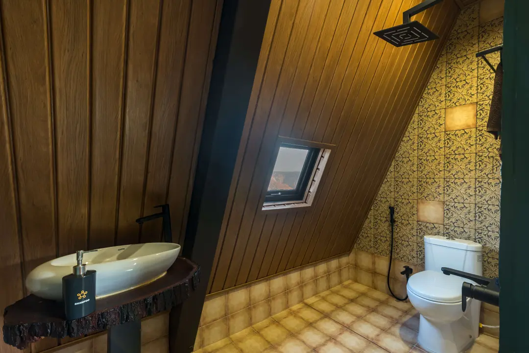- Upon entering the villa, a vast living room welcomes you, complete with a music corner featuring a karaoke set, comfortable sofas, and a laid-back seating area, leading into the adjacent dining area. The bedroom is located adjacent to the living room with an ensuite bathroom and a powder room.