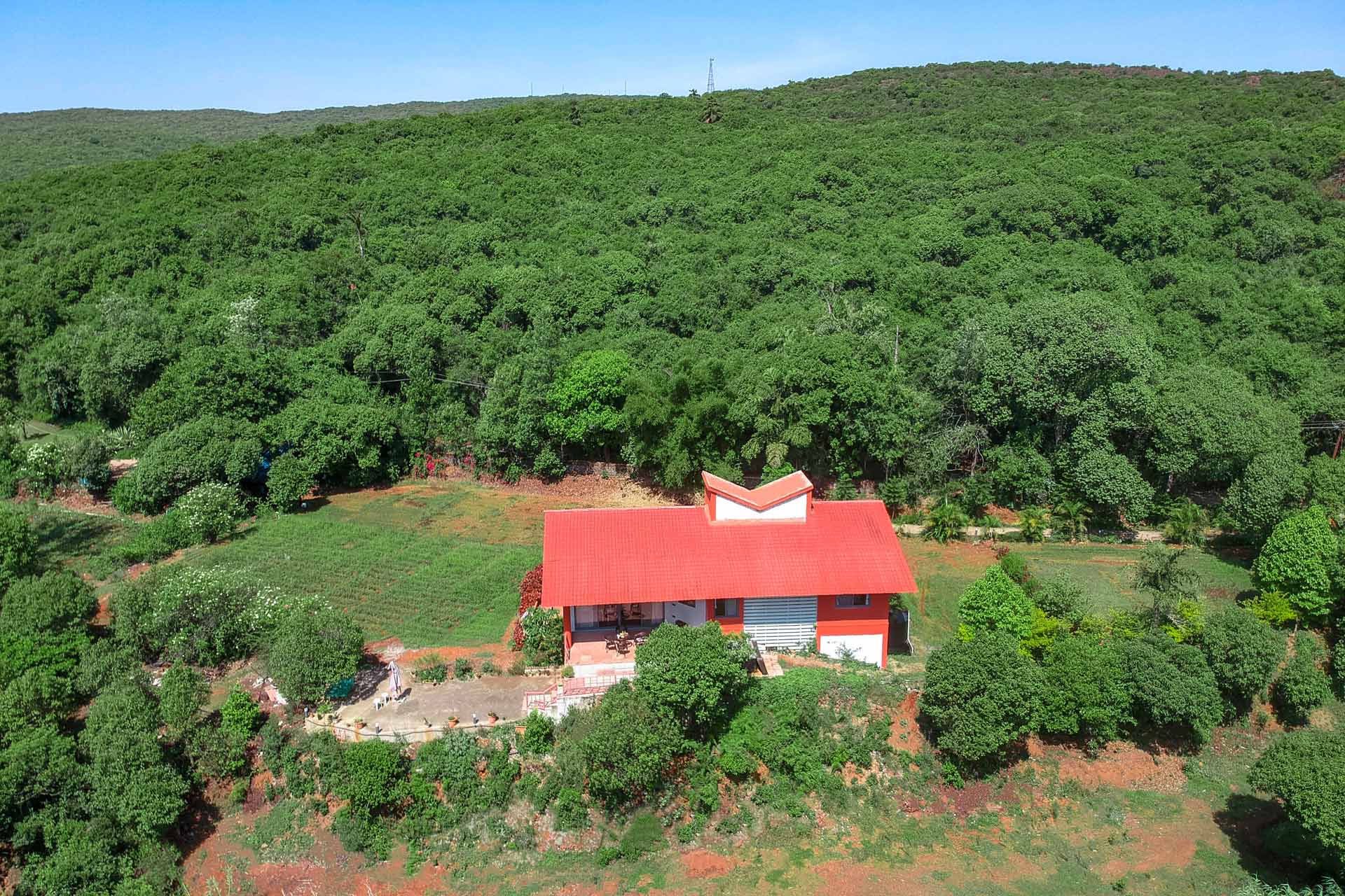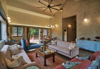 Spend an unforgettable time at the beautiful Amoda Villa and surround yourself with nature, surreal views and gracious hospitality. Situated on a picturesque piece of land, with rolling hills and the river flowing nearby, there’s something so charming about this holiday home. As you explore this home further, you will be struck by the peacefulness of the surroundings, and the quiet calm that seemed to permeate everything. After an elaborate al fresco breakfast, take a stroll through the gardens surrounding the crimson-coloured farmhouse, which compliments the vibrant colours of the flowers and the greenery in the most charming manner. Spend some time relaxing by the river, enjoying the soothing sounds of the water and the cool breeze that blows across the surface.
