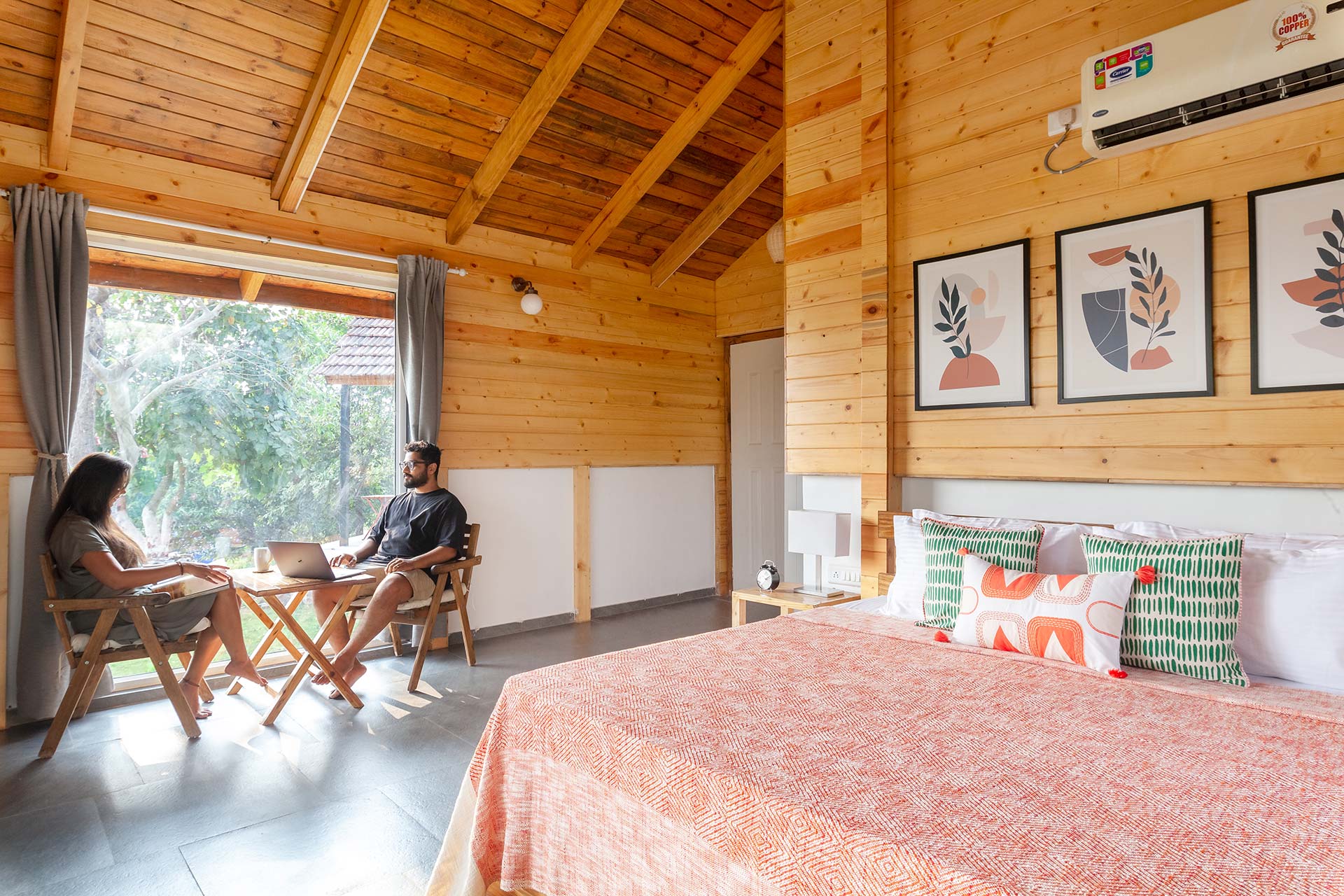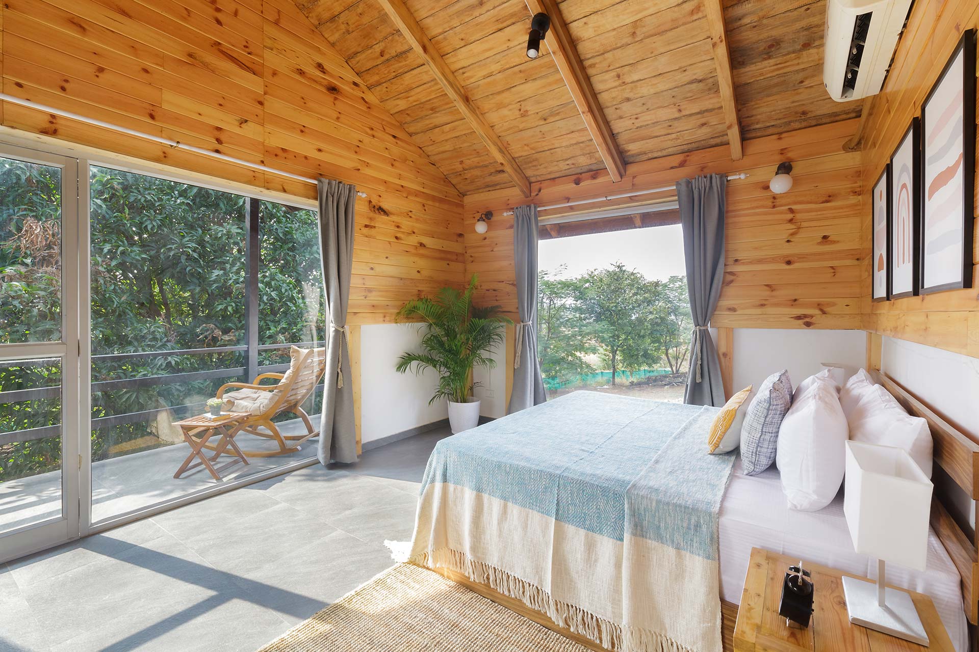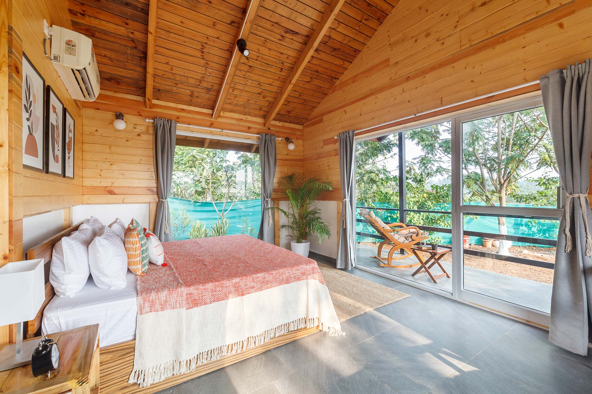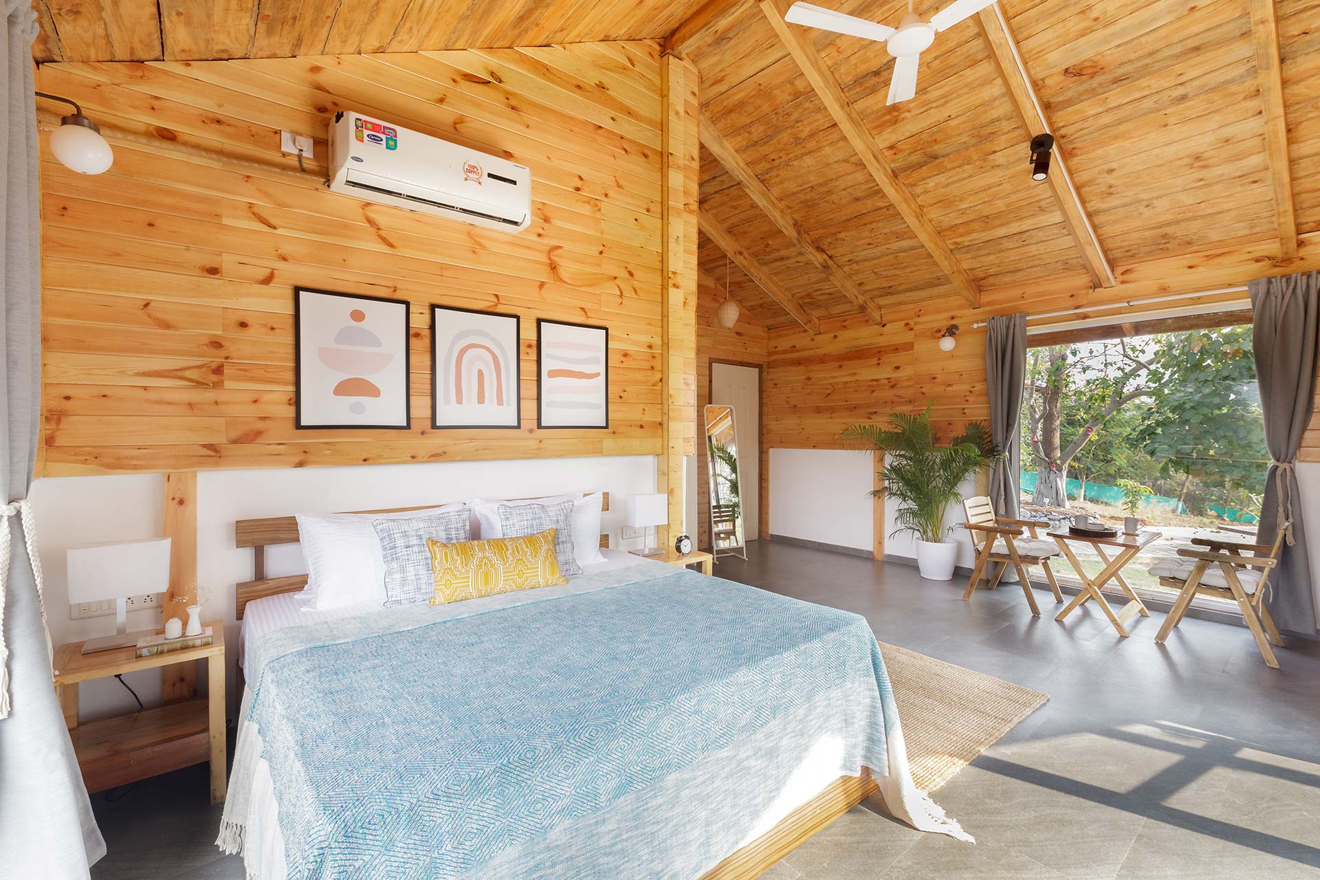– These bedrooms are replete with a range of luxurious amenities such as AC, Wi-Fi, wardrobe, a verdurous backdrop of the surroundings, and an ensuite bathroom.