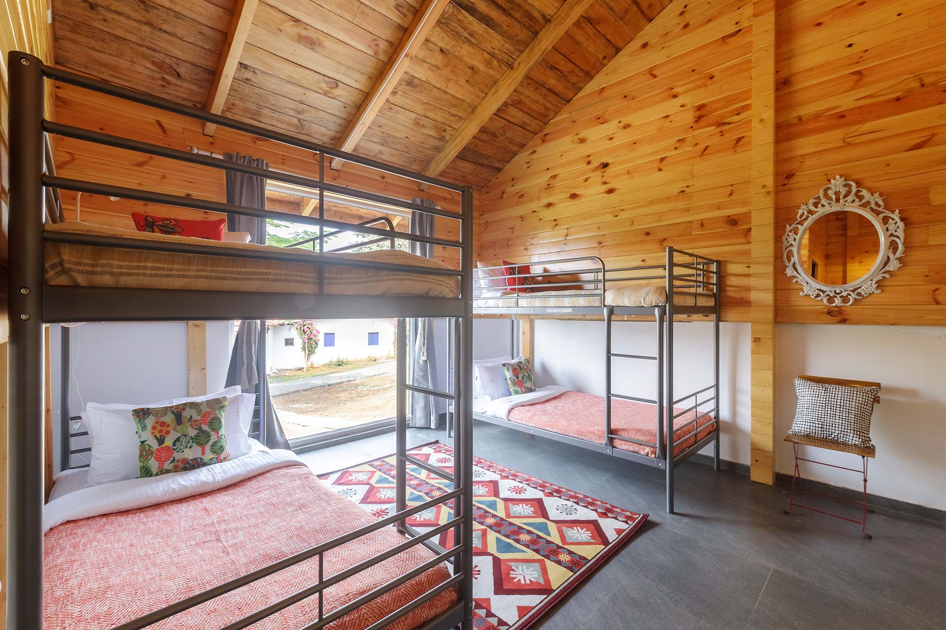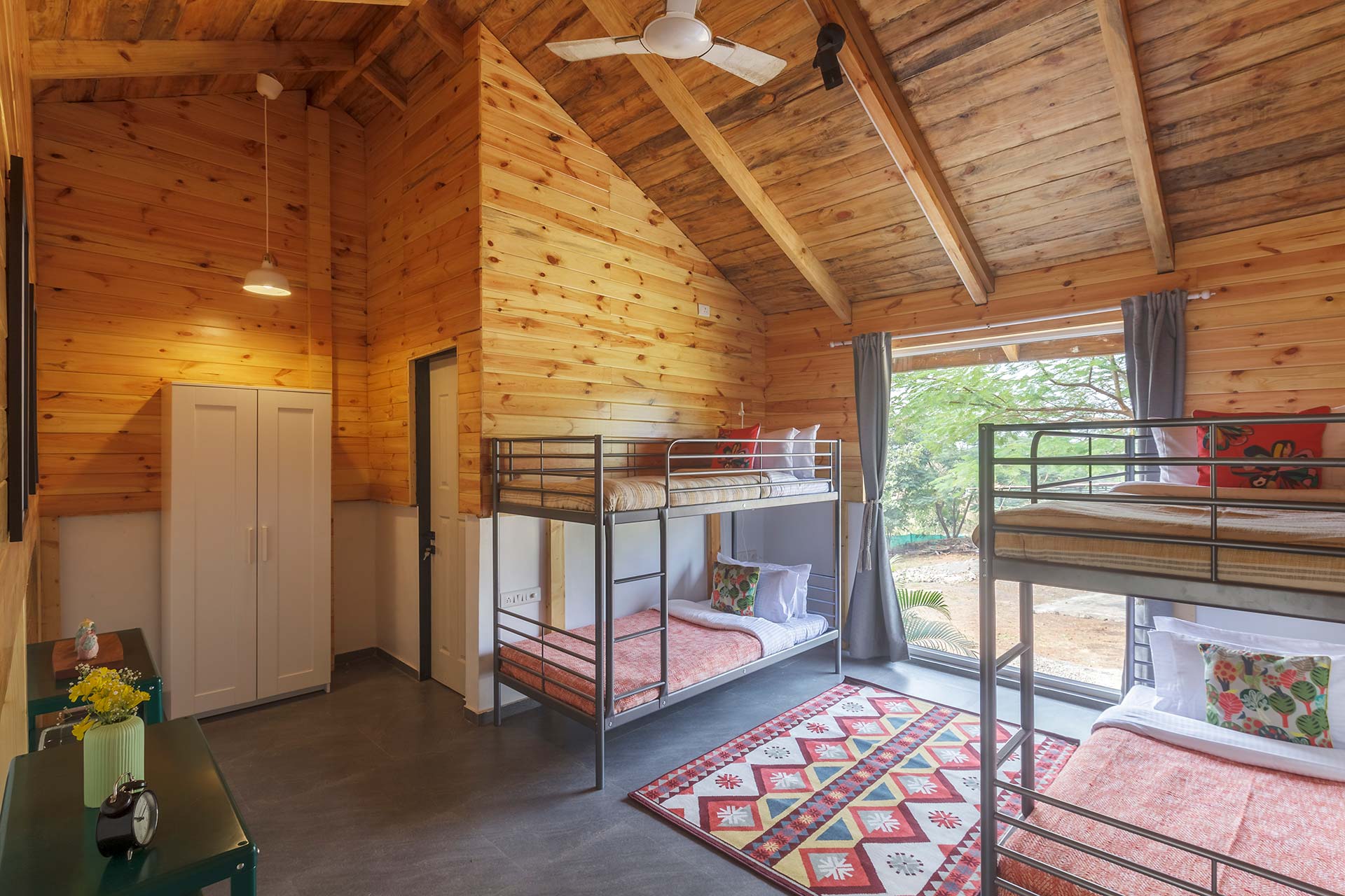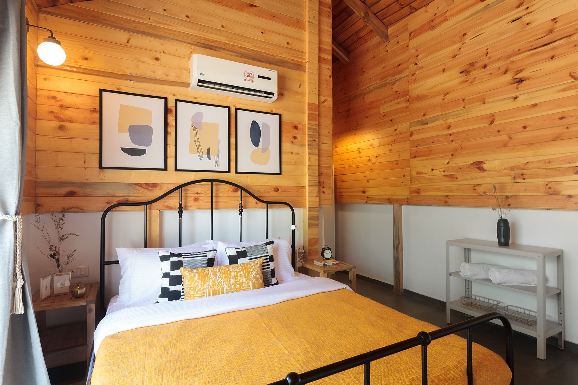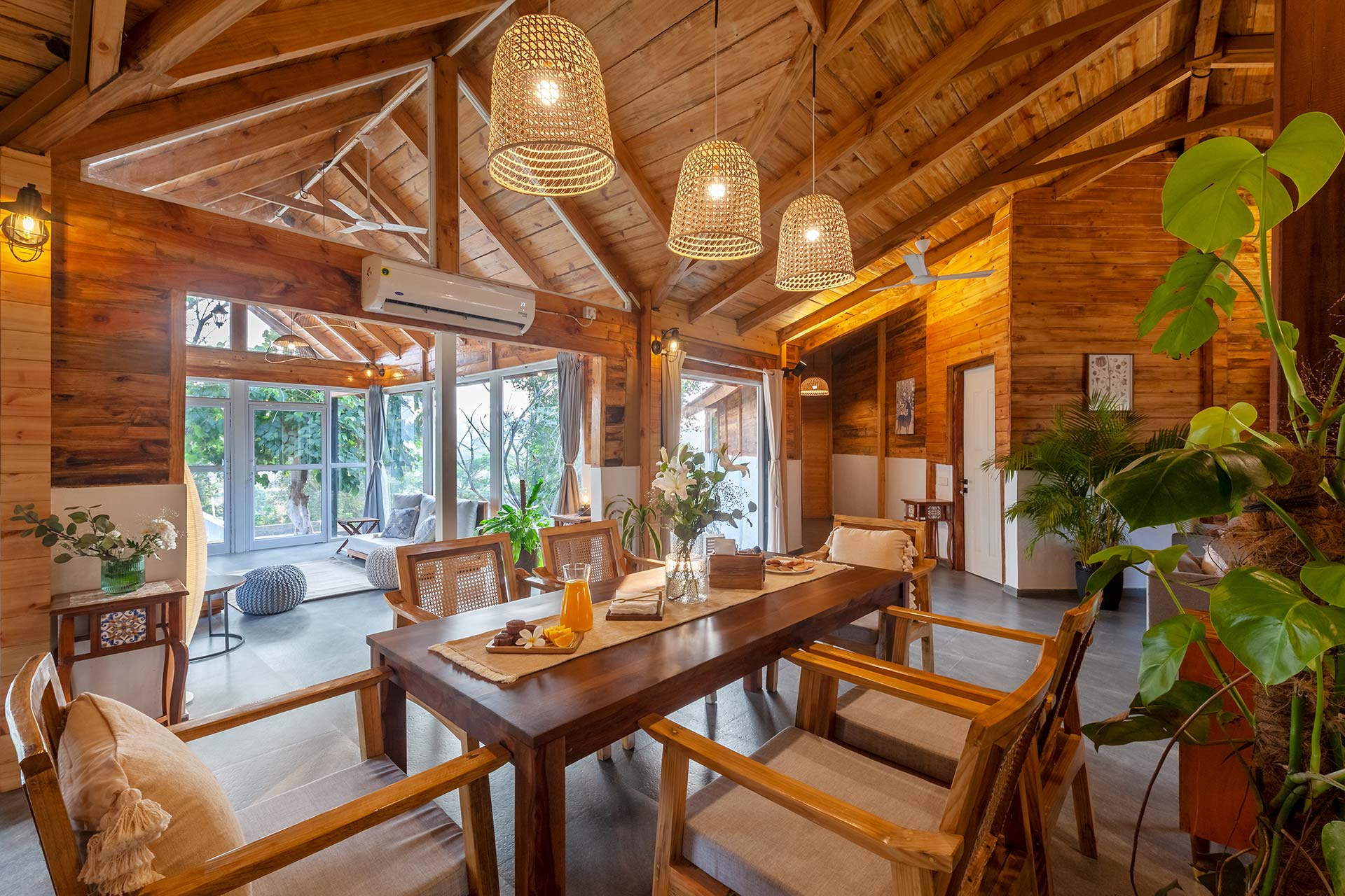 – These bedrooms are replete with a range of luxurious amenities such as AC, Wi-Fi, wardrobe, a verdurous backdrop of the surroundings, and an ensuite bathroom.