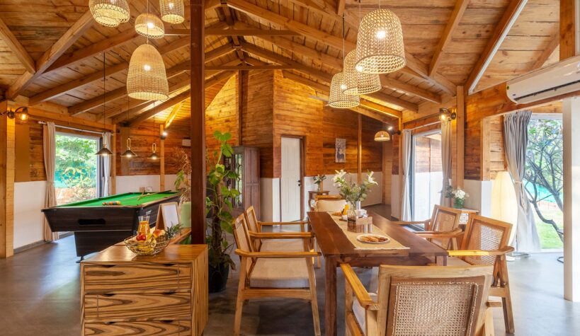 An experience like no other, Anjee’s Chalet is the definition of a relaxing retreat like no other. Forget all your worries and soak in this authentic wooden property. Located mere hours away from Mumbai, amidst mountains and scenic views, this stay is perfect to spend time with your family, friends, and pets! Wake up to fresh air, birds chirping, and an amazing view. Along with a lawn, guests can indulge in some meditation, outdoor games, or just sprawl around.