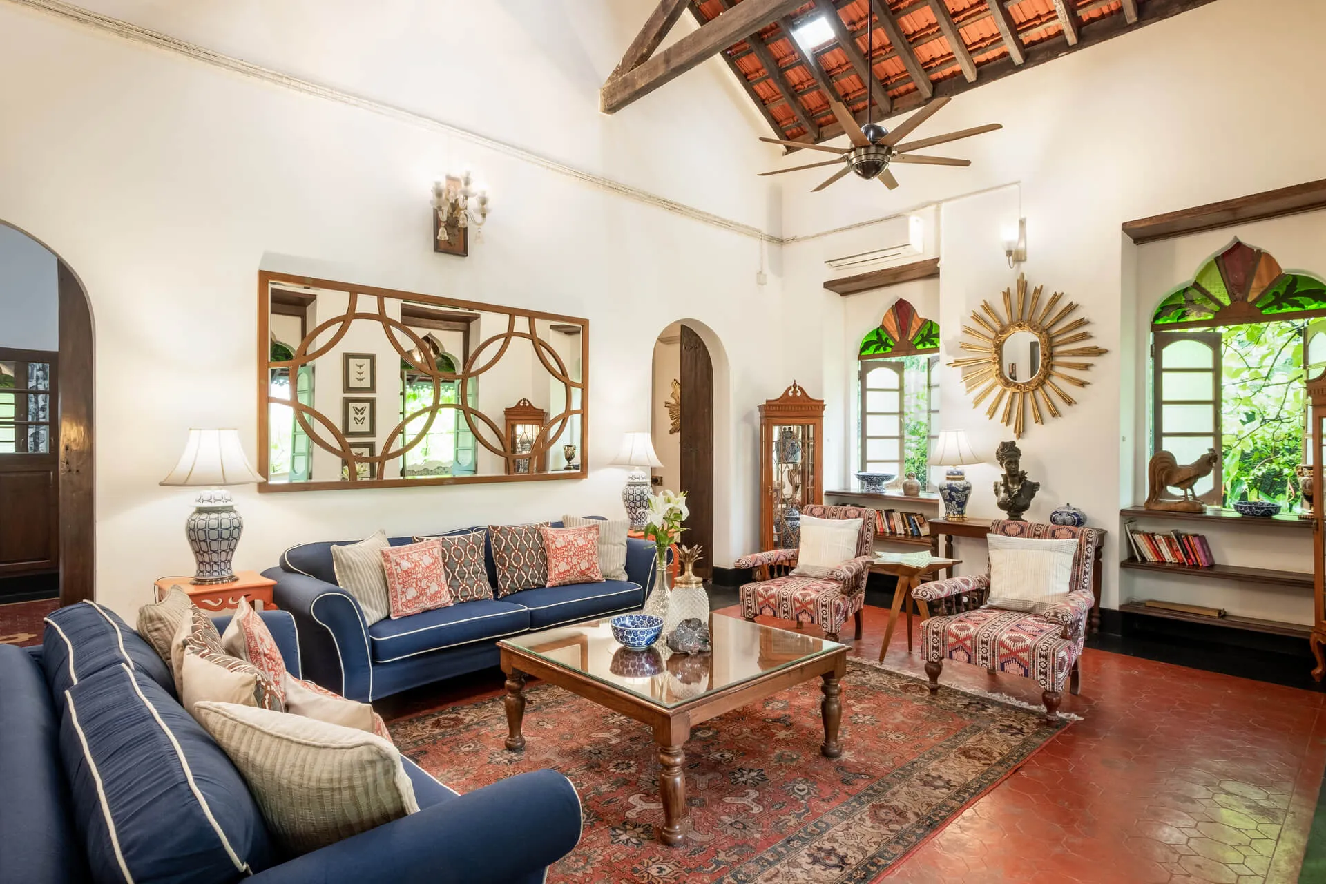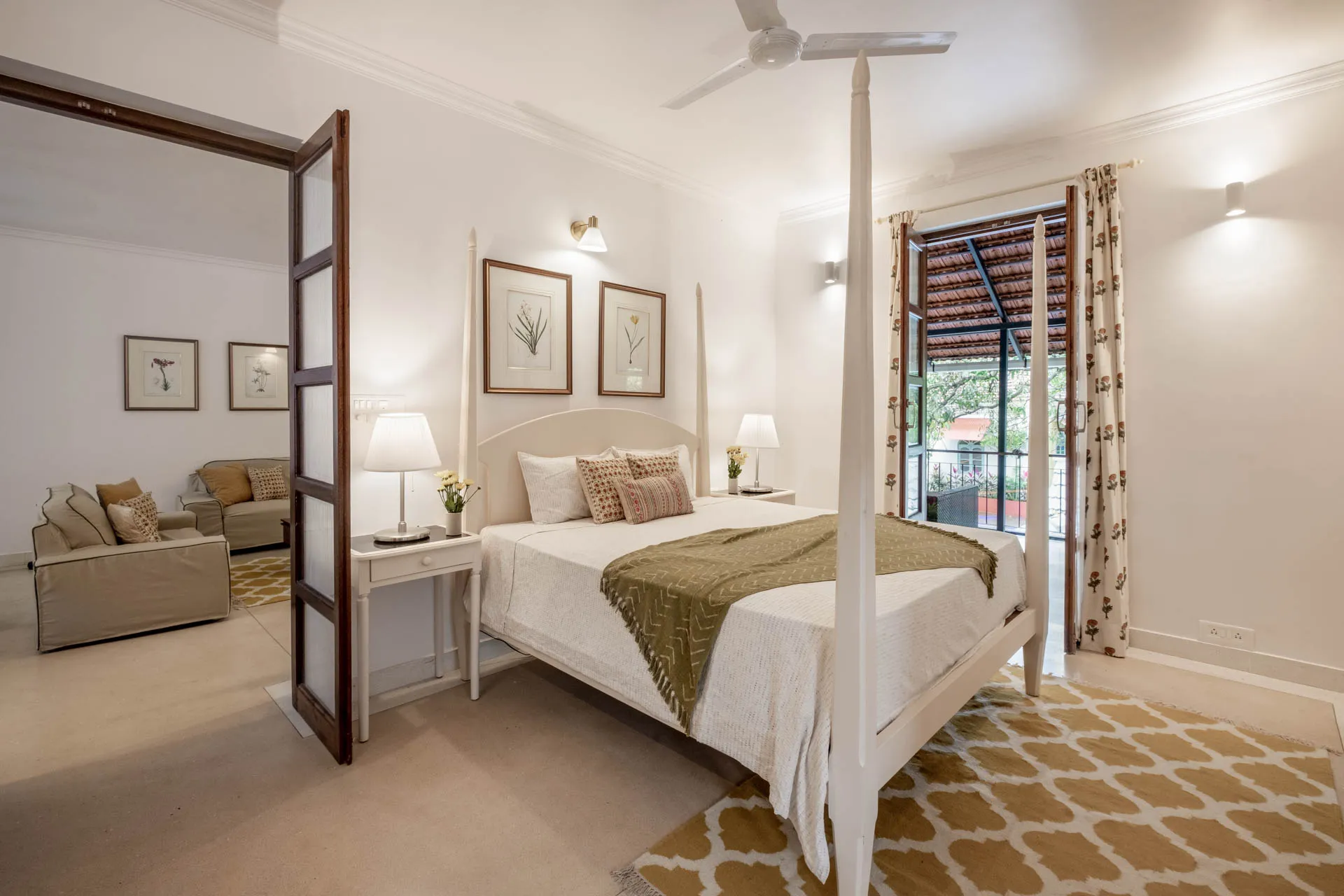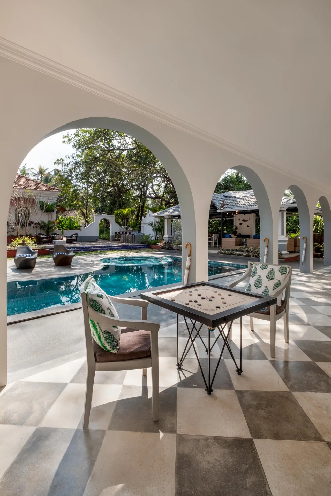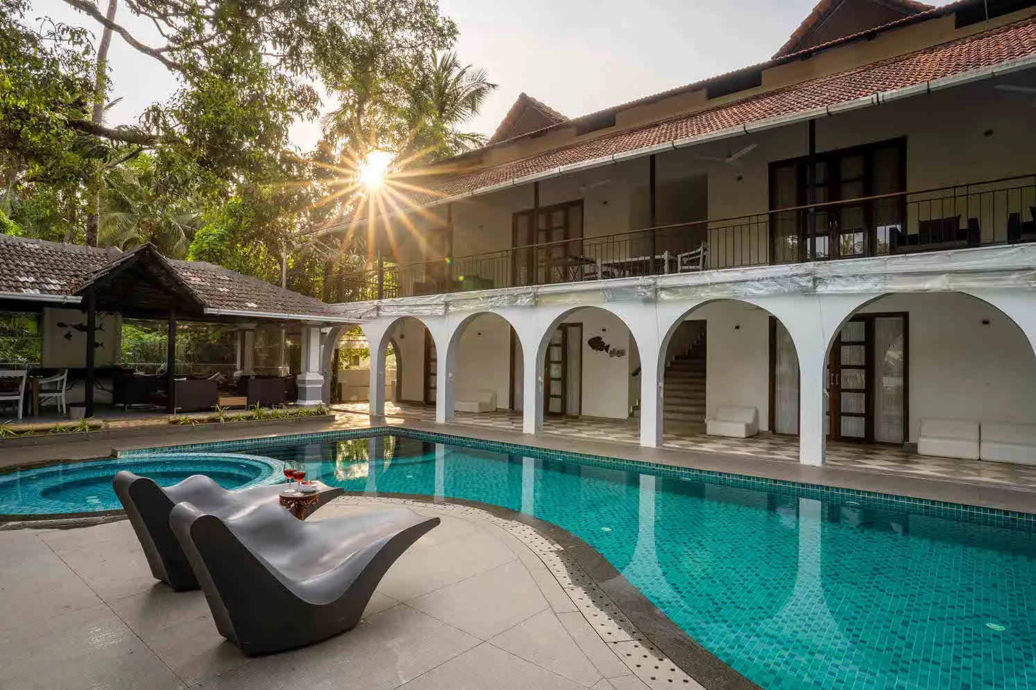 A beautifully restored, 100-year-old Goan-Portuguese home, a striking abode inspired by the neo-traditional style and a breathtaking courtyard that connects the two. Setting the right balance between the old and the new, is the charming Bastora House. With two grand bedrooms, picture-worthy bathrooms and a living and dining area, the heritage home takes you back in time while offering you all the luxuries of the modern world. The new wing, with its five spacious bedrooms, draws inspiration from the traditional and provides world-class amenities to make for a relaxing and comfortable stay. The expansive courtyard sets the stage for quality time with family and friends; have fun in the pool, enjoy delicious meals in the outdoor dining area or toast to special moments at the outdoor bar.