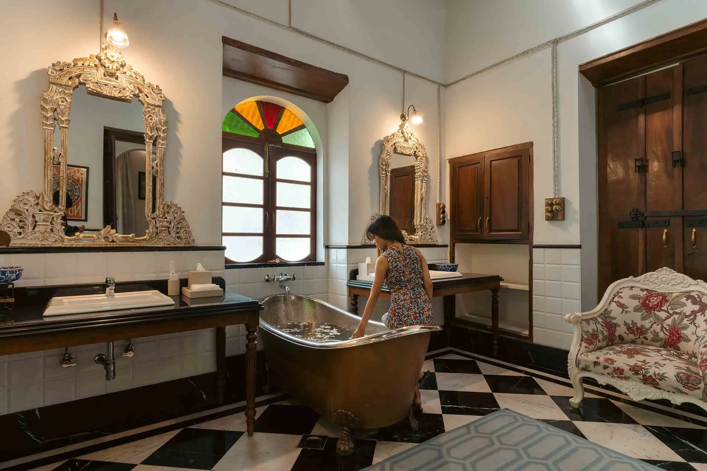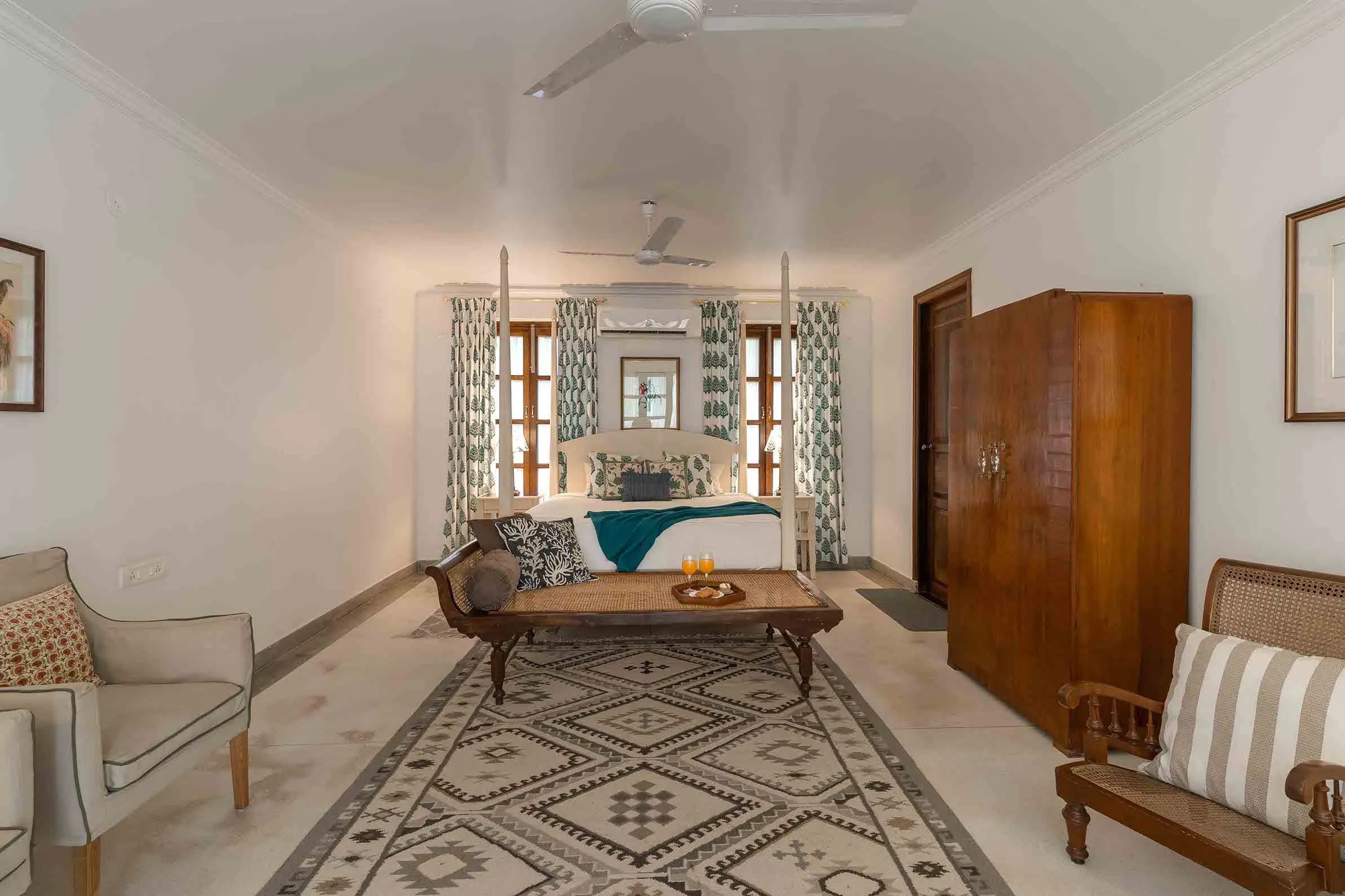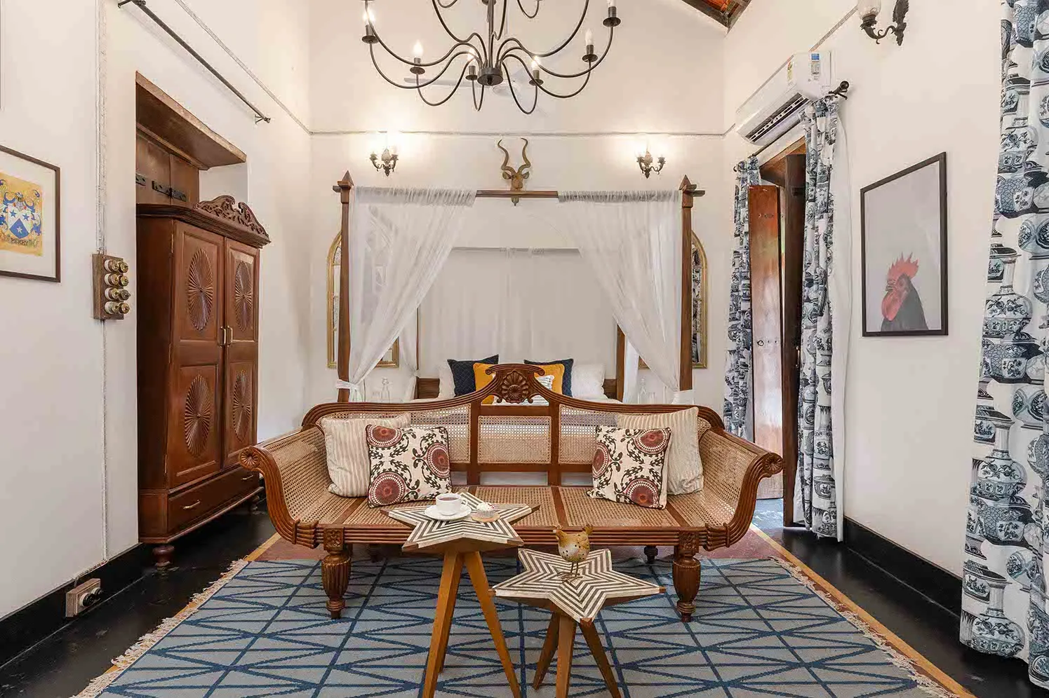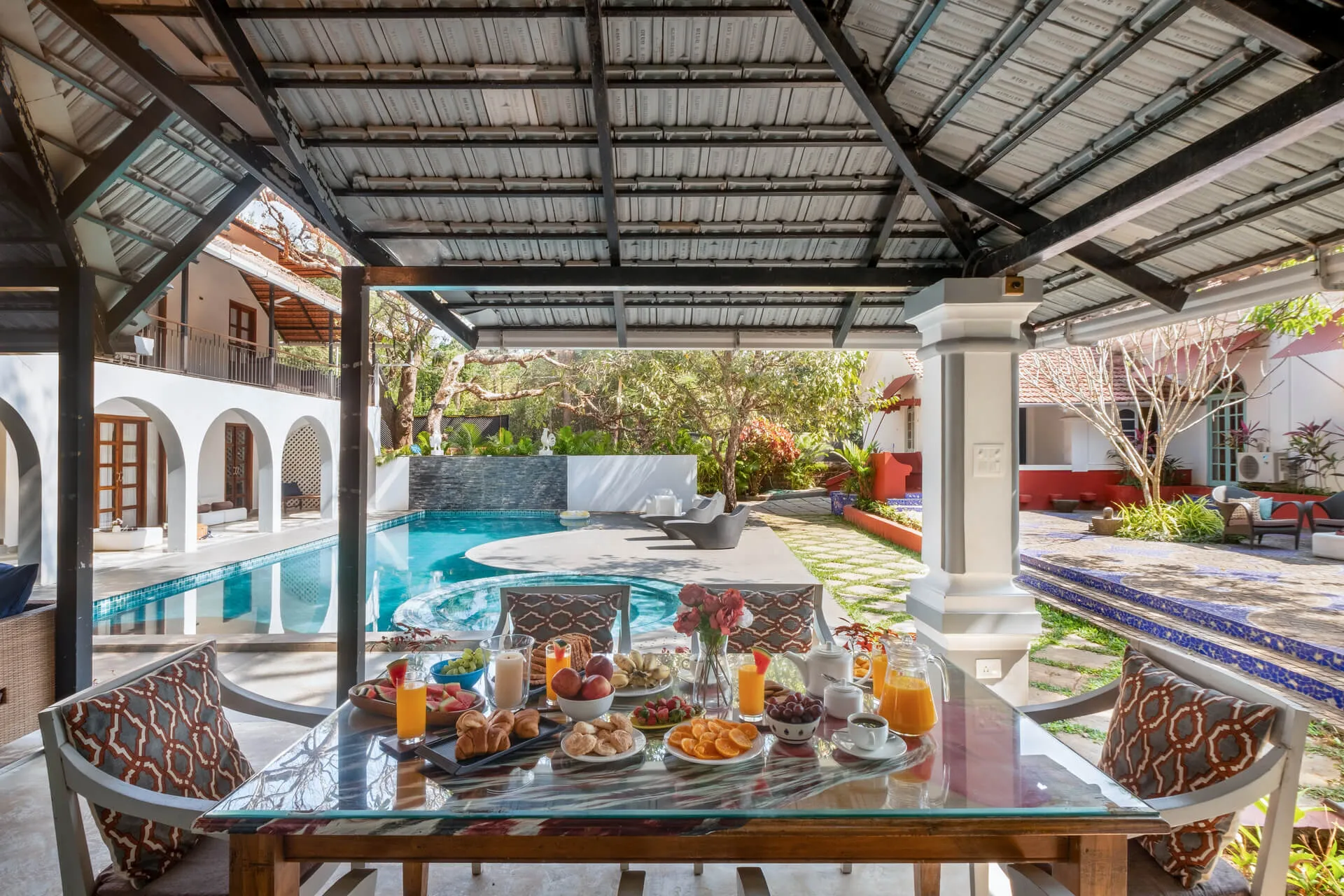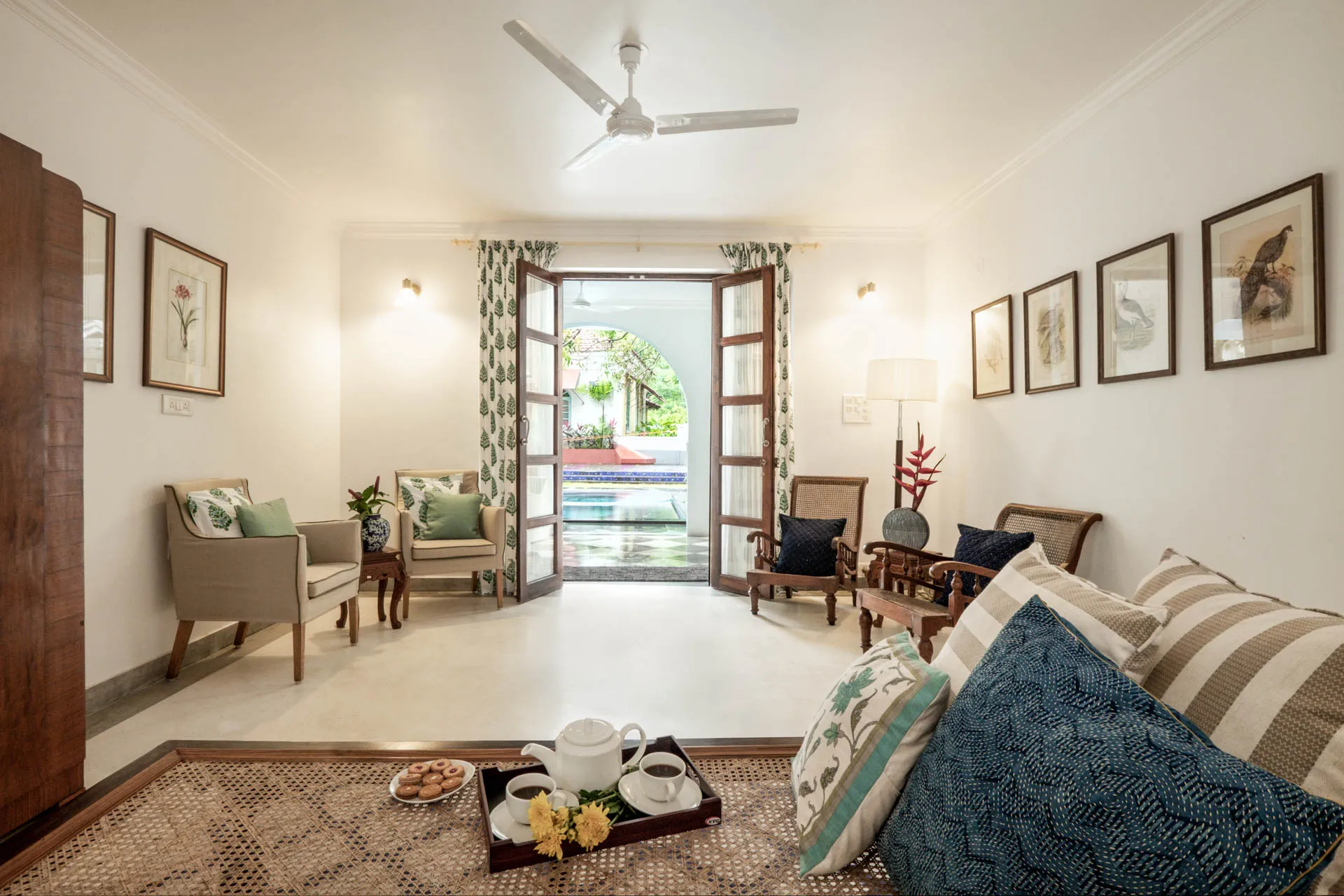 A beautifully restored, 100-year-old Goan-Portuguese home, a striking abode inspired by the neo-traditional style and a breathtaking courtyard that connects the two. Setting the right balance between the old and the new, is the charming Bastora House. With two grand bedrooms, picture-worthy bathrooms and a living and dining area, the heritage home takes you back in time while offering you all the luxuries of the modern world. The new wing, with its five spacious bedrooms, draws inspiration from the traditional and provides world-class amenities to make for a relaxing and comfortable stay. The expansive courtyard sets the stage for quality time with family and friends; have fun in the pool, enjoy delicious meals in the outdoor dining area or toast to special moments at the outdoor bar.