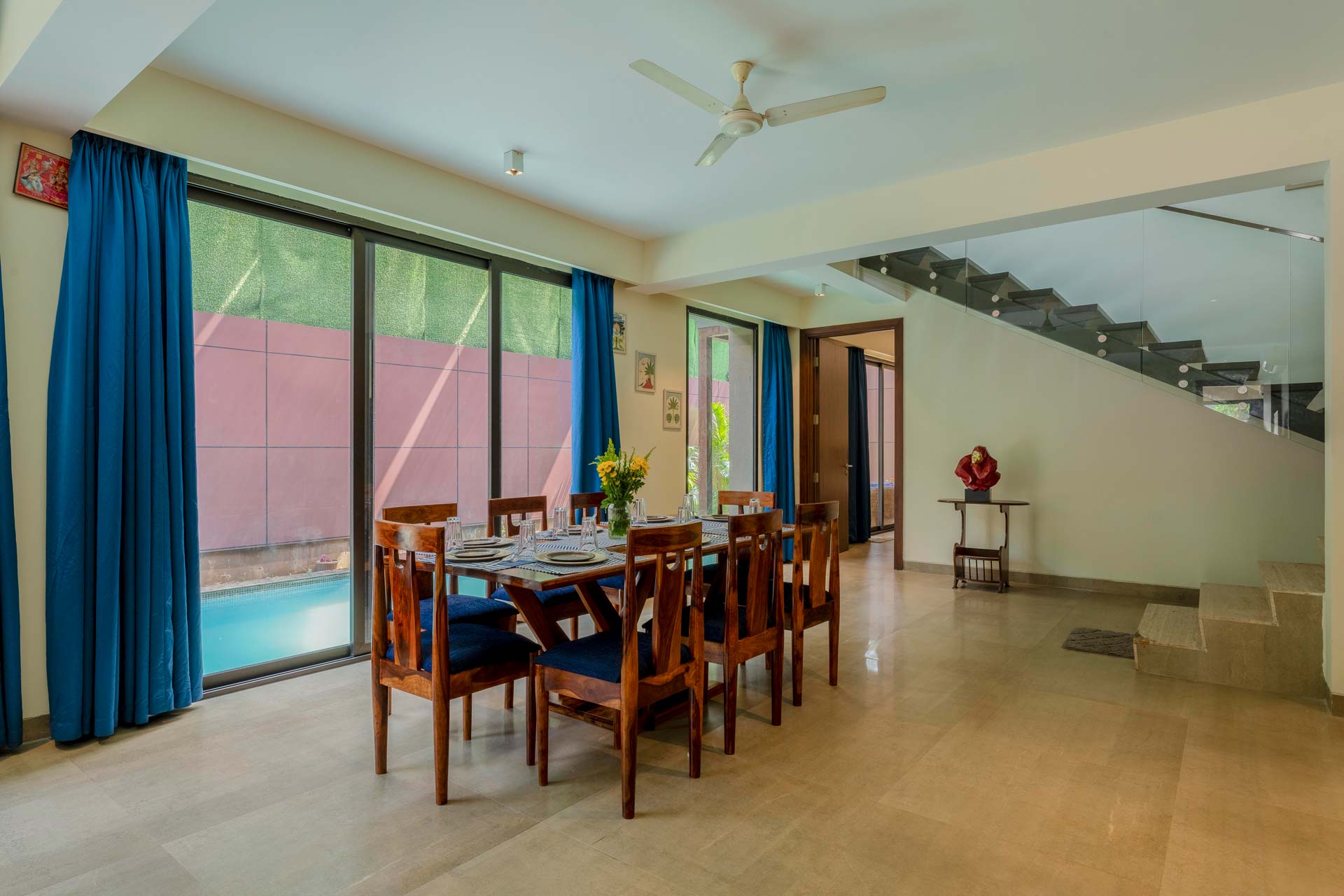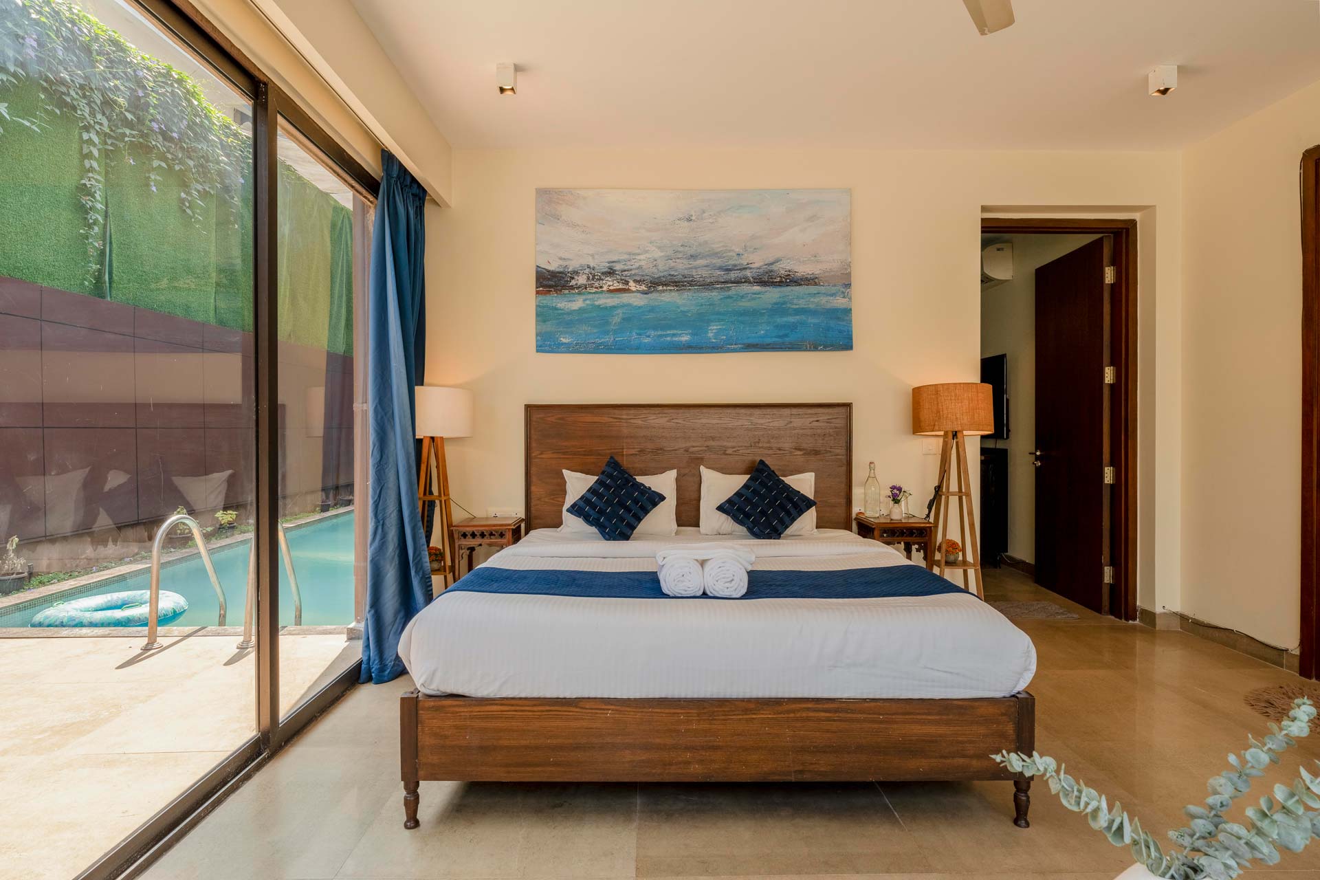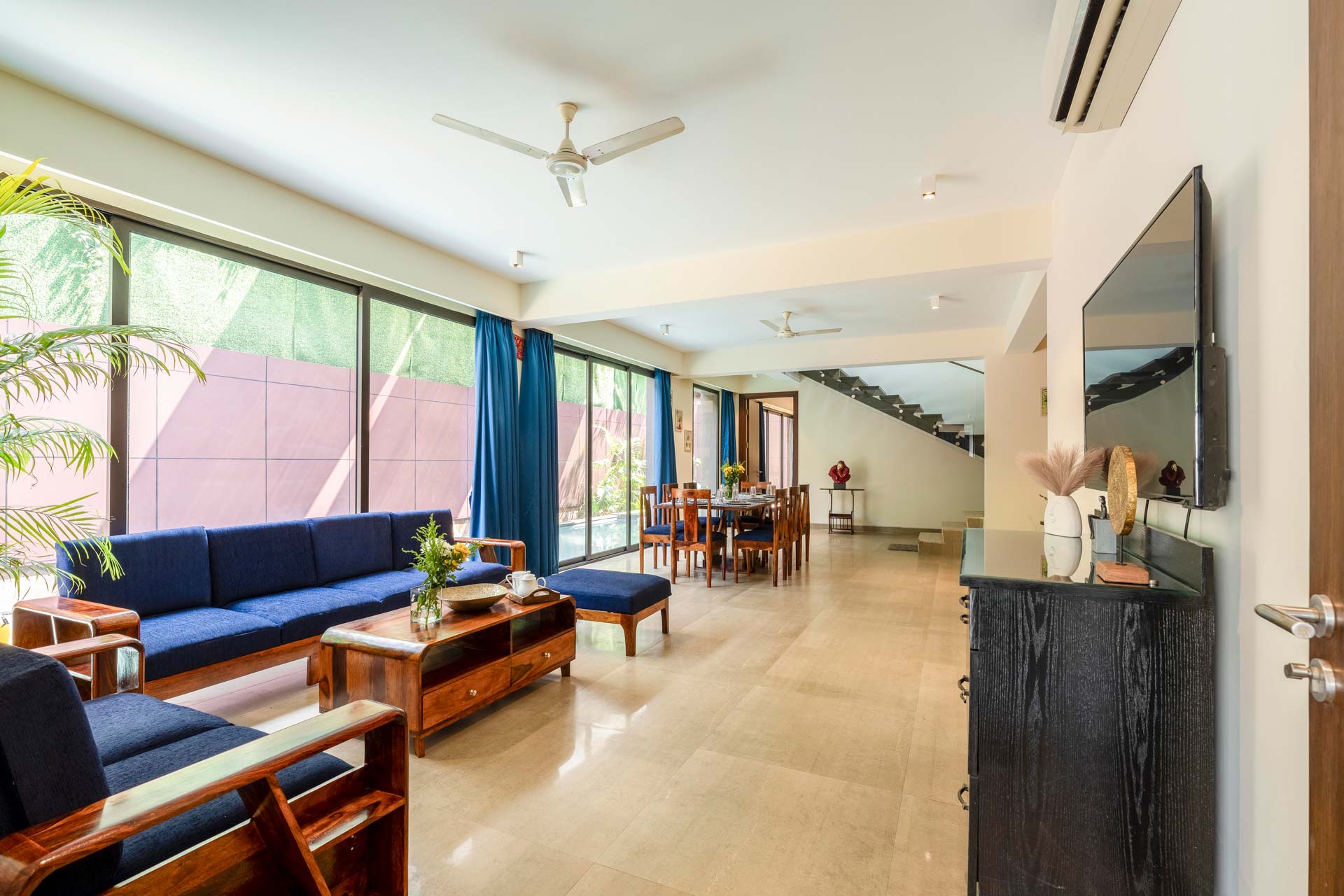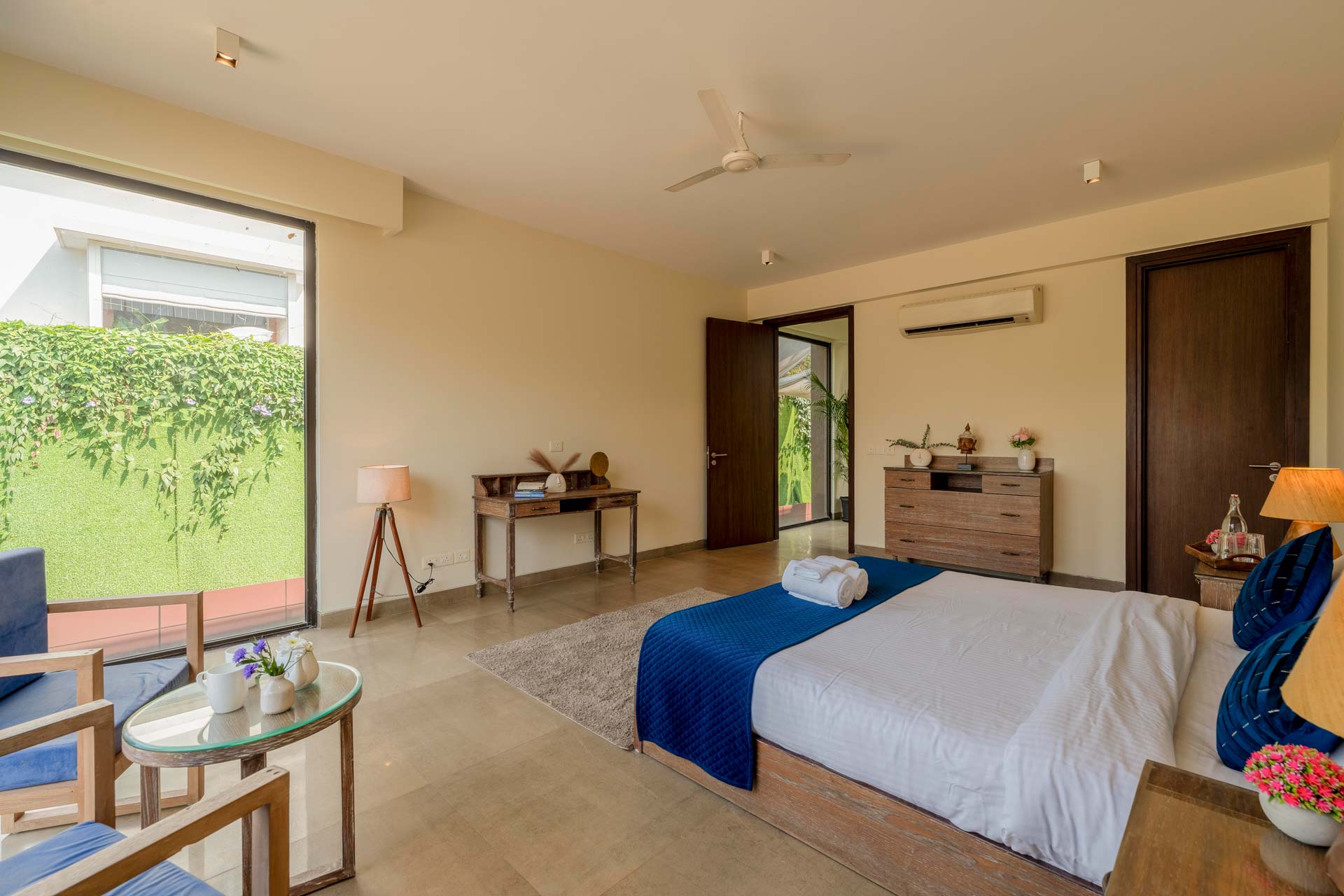 Set in the peaceful surroundings Brew & Breeze is a 4-bedroom villa in Anjuna which offers a perfect mix of style and comfort just minutes from the beach. Its earthy interiors, combined with elegant details, create a warm and inviting atmosphere. The villa features a private pool with a spacious lounge area, ideal for unwinding. A beautifully maintained lawn with charming sit-out spaces adds to the outdoor experience. Designed for those who value privacy and relaxation, this villa in Anjuna is an excellent choice for a memorable getaway.