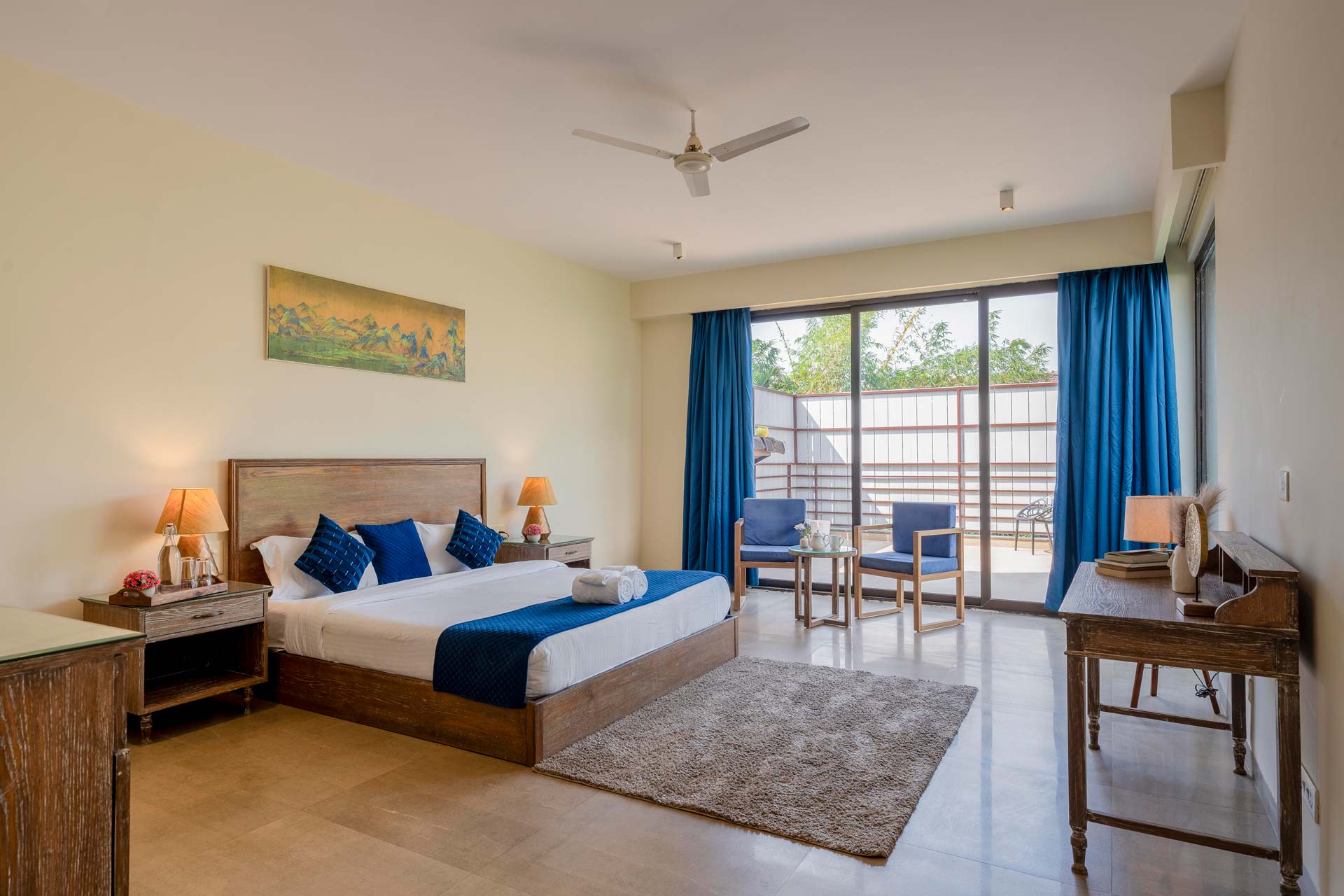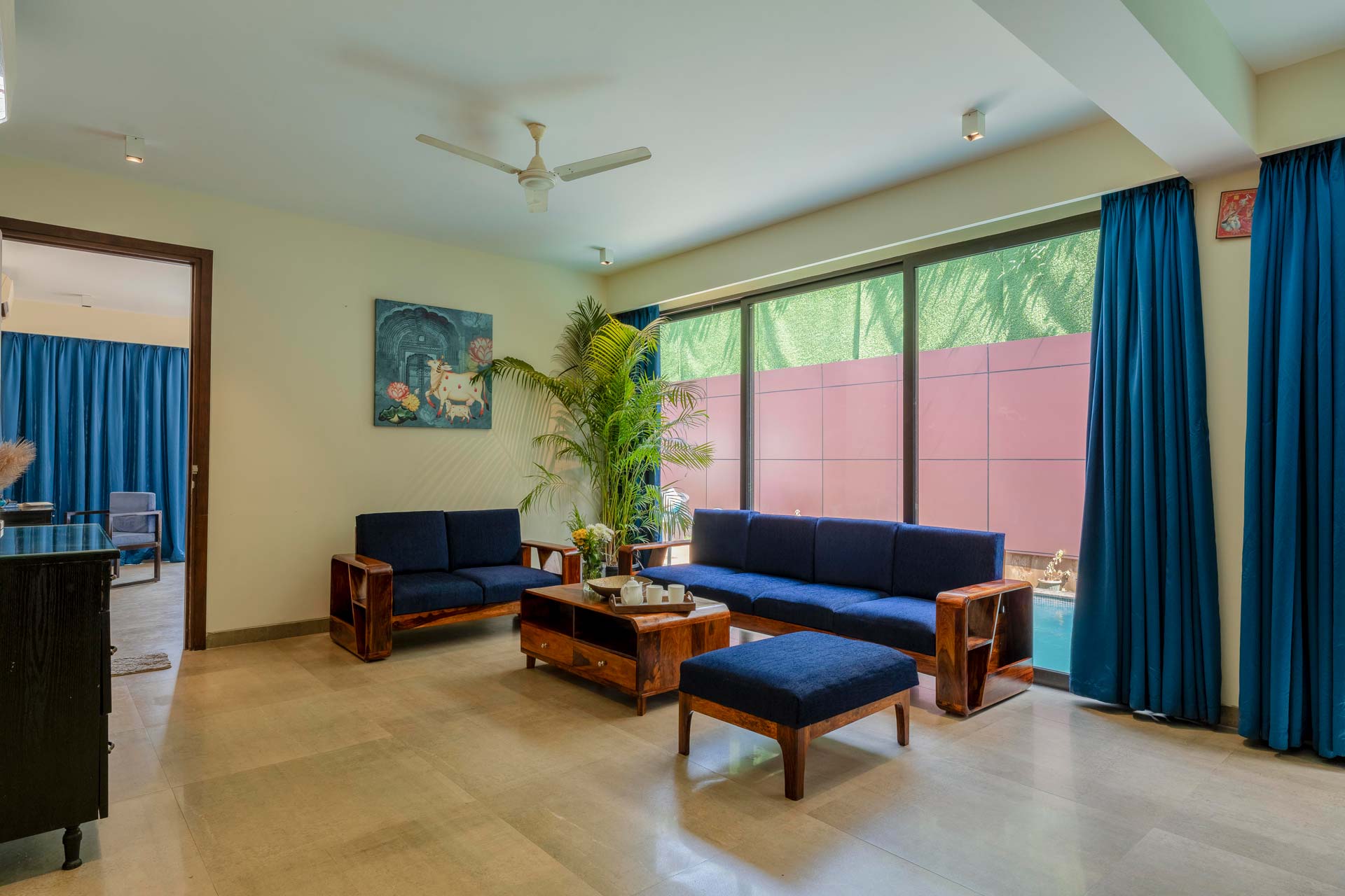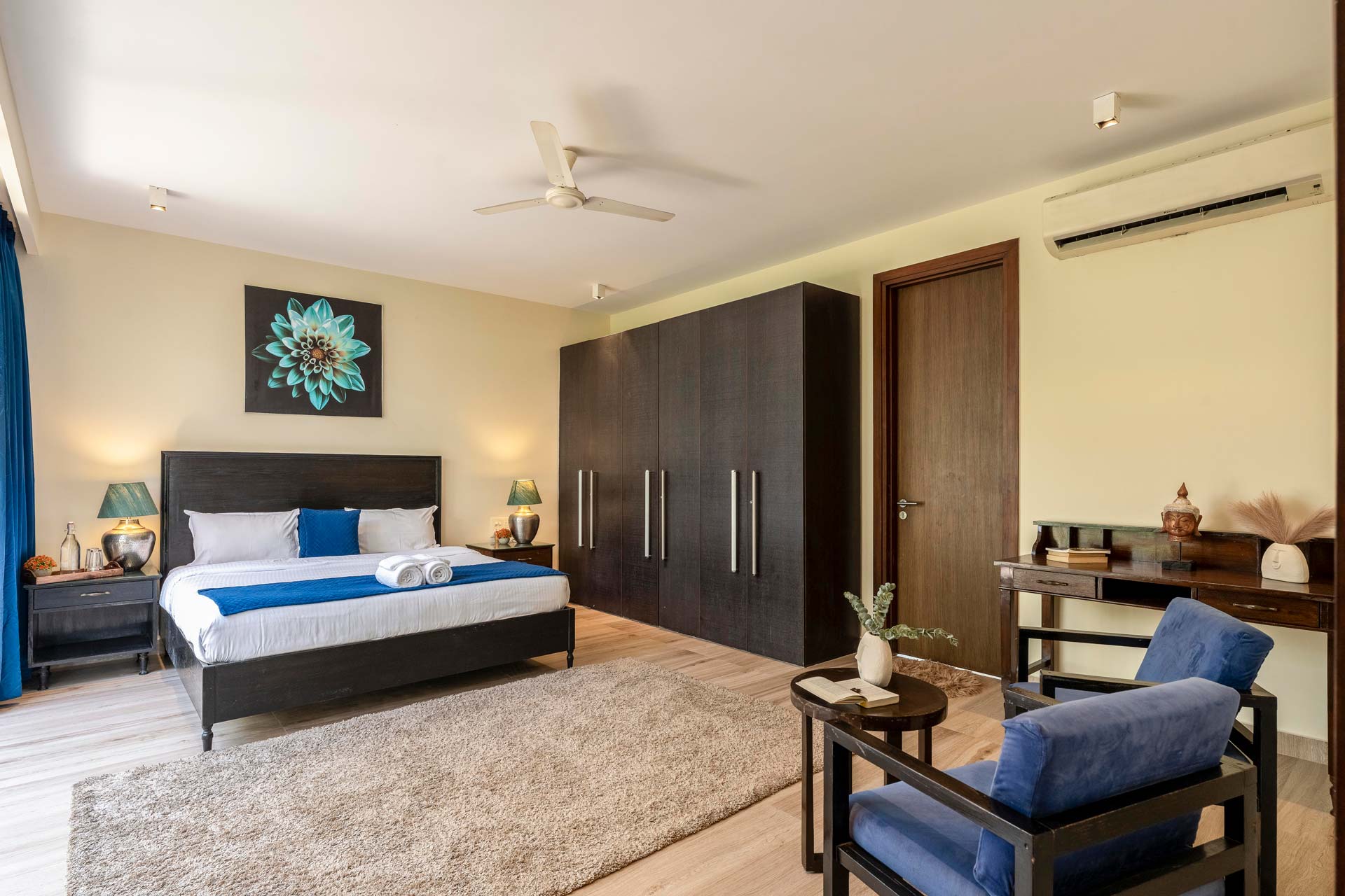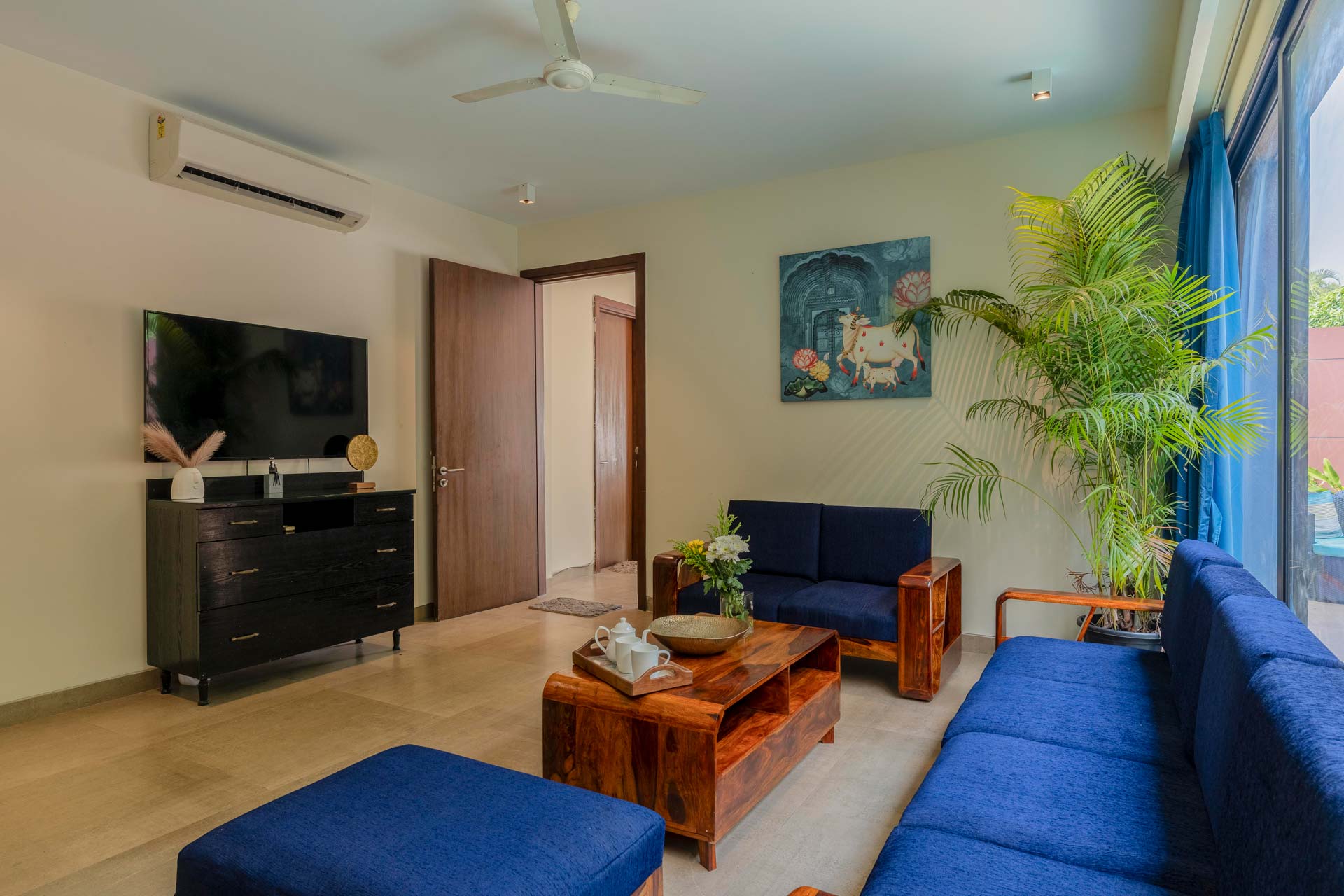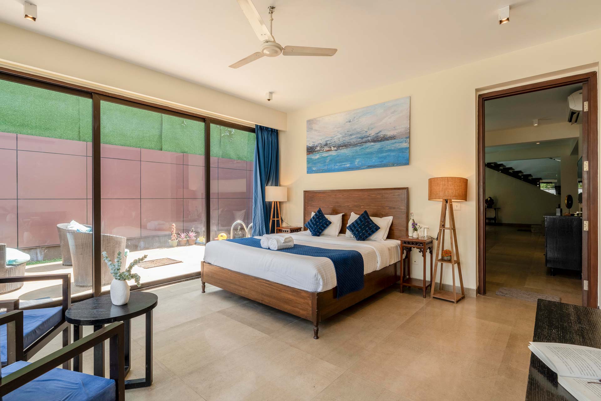 Set in the peaceful surroundings Brew & Breeze is a 4-bedroom villa in Anjuna which offers a perfect mix of style and comfort just minutes from the beach. Its earthy interiors, combined with elegant details, create a warm and inviting atmosphere. The villa features a private pool with a spacious lounge area, ideal for unwinding. A beautifully maintained lawn with charming sit-out spaces adds to the outdoor experience. Designed for those who value privacy and relaxation, this villa in Anjuna is an excellent choice for a memorable getaway.