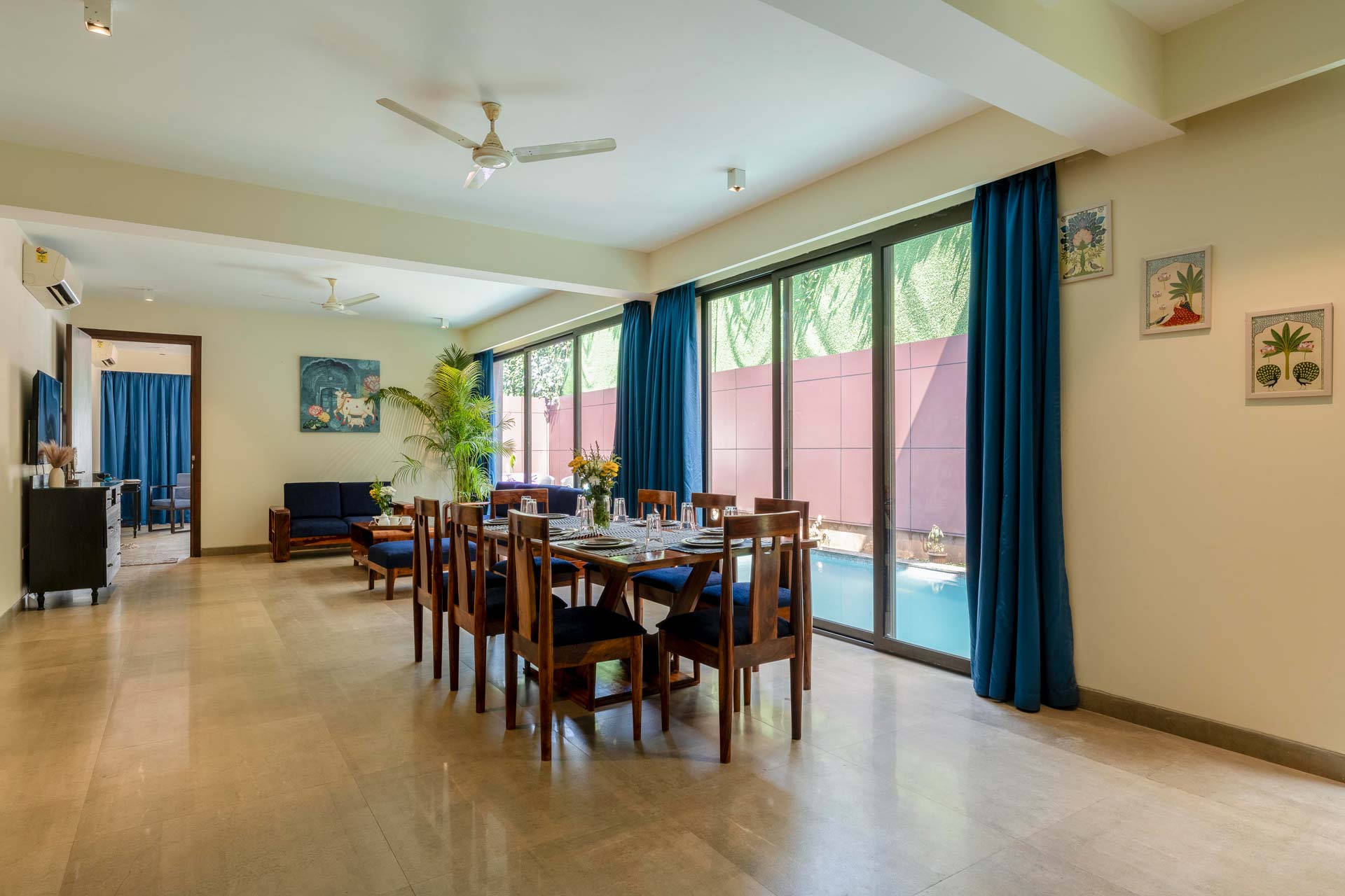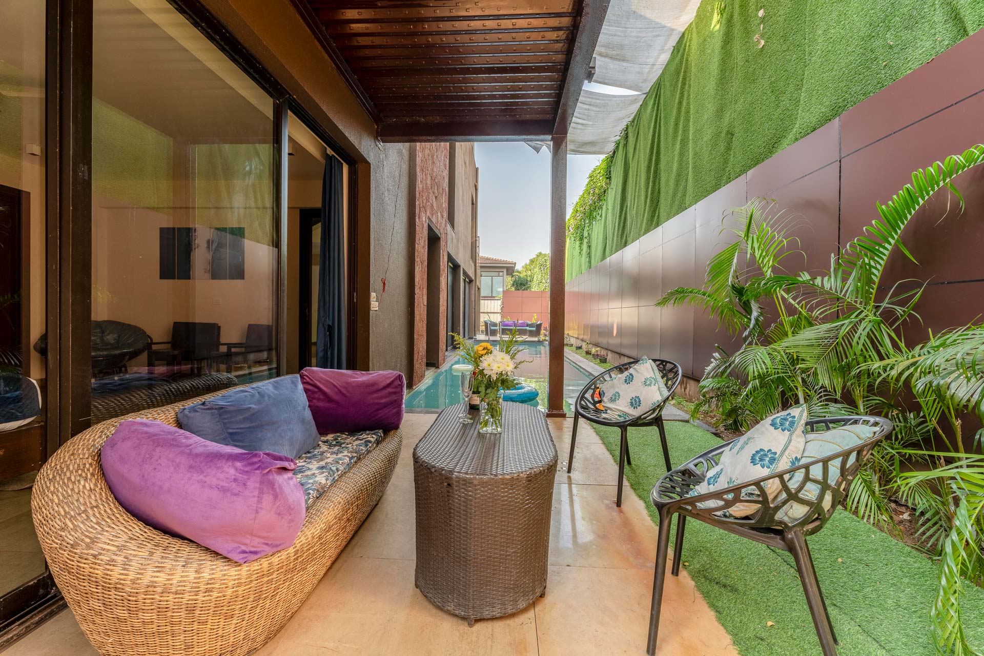 Start your day with a slow sip of coffee on the balcony, where soft light and calm surroundings set the tone. Brew & Breeze, a 4-bedroom villa in Anjuna, blends earthy interiors with elegant touches to create a warm, welcoming vibe. Ease into the morning with a dip in your private pool or unwind on the spacious lounge deck. When the sun’s high, the lush lawn becomes the perfect spot to relax whether you’re stretched out under a tree or playing a round of indoor games with your crew. As the day fades, the BBQ station invites you to fire things up. Grill, chill and catch up under the open sky as the villa takes on a cozy evening glow. From peaceful moments to lively conversations, every corner of Brew & Breeze is designed for comfort, privacy and effortless connection, just minutes from the beach, yet in a world of its own.