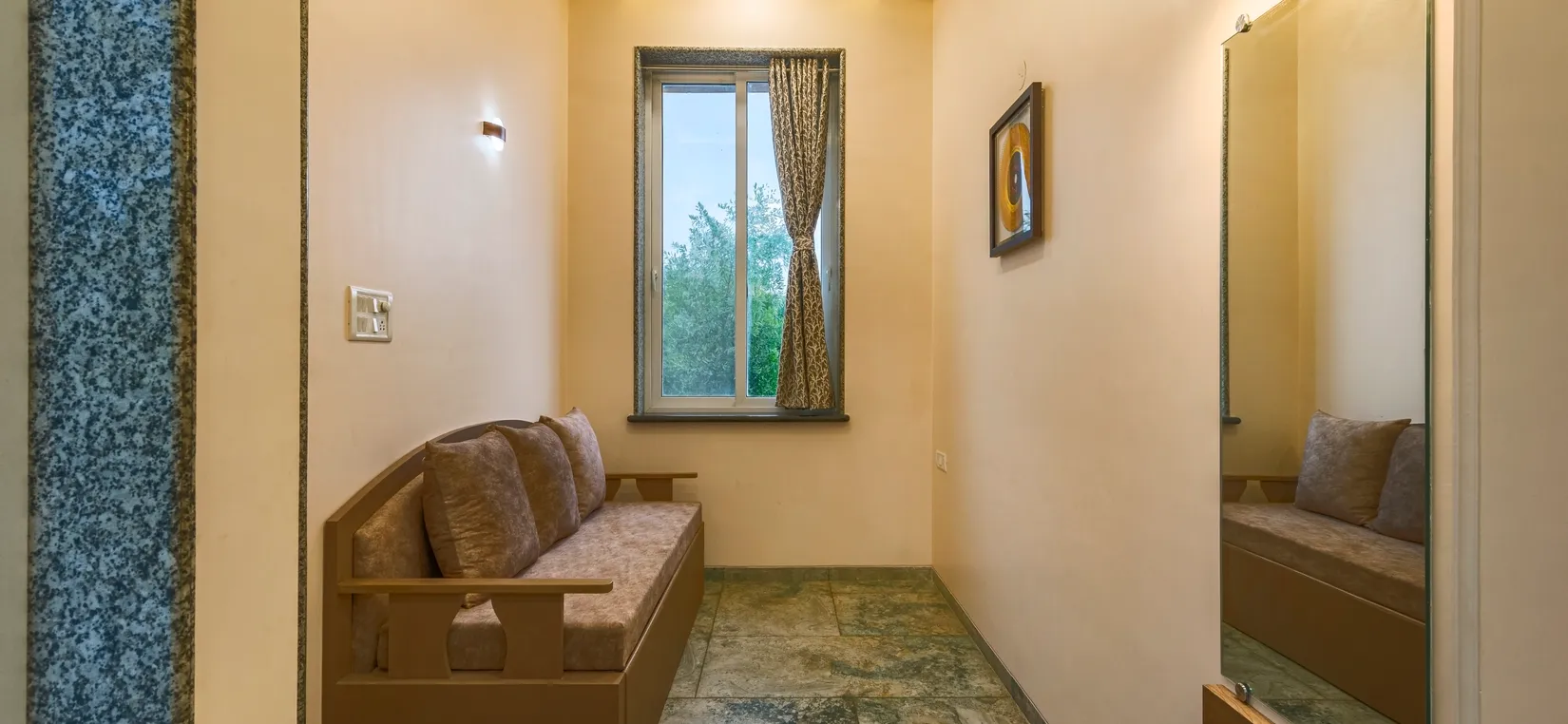 • This villa near Mumbai is elderly-friendly as there are 4-bedrooms with ensuite bathrooms on the ground floor. One of the bathrooms also has a bathtub.