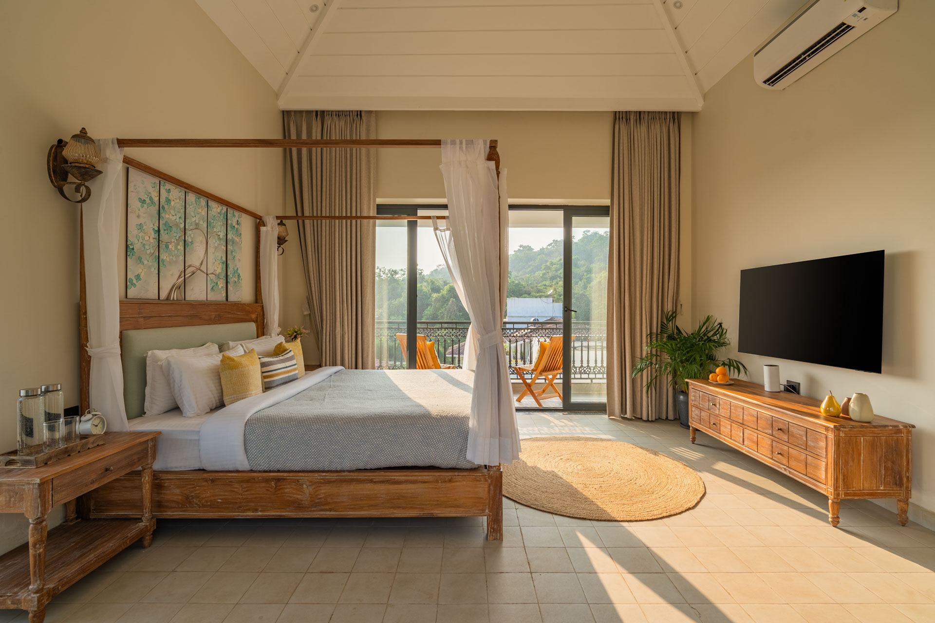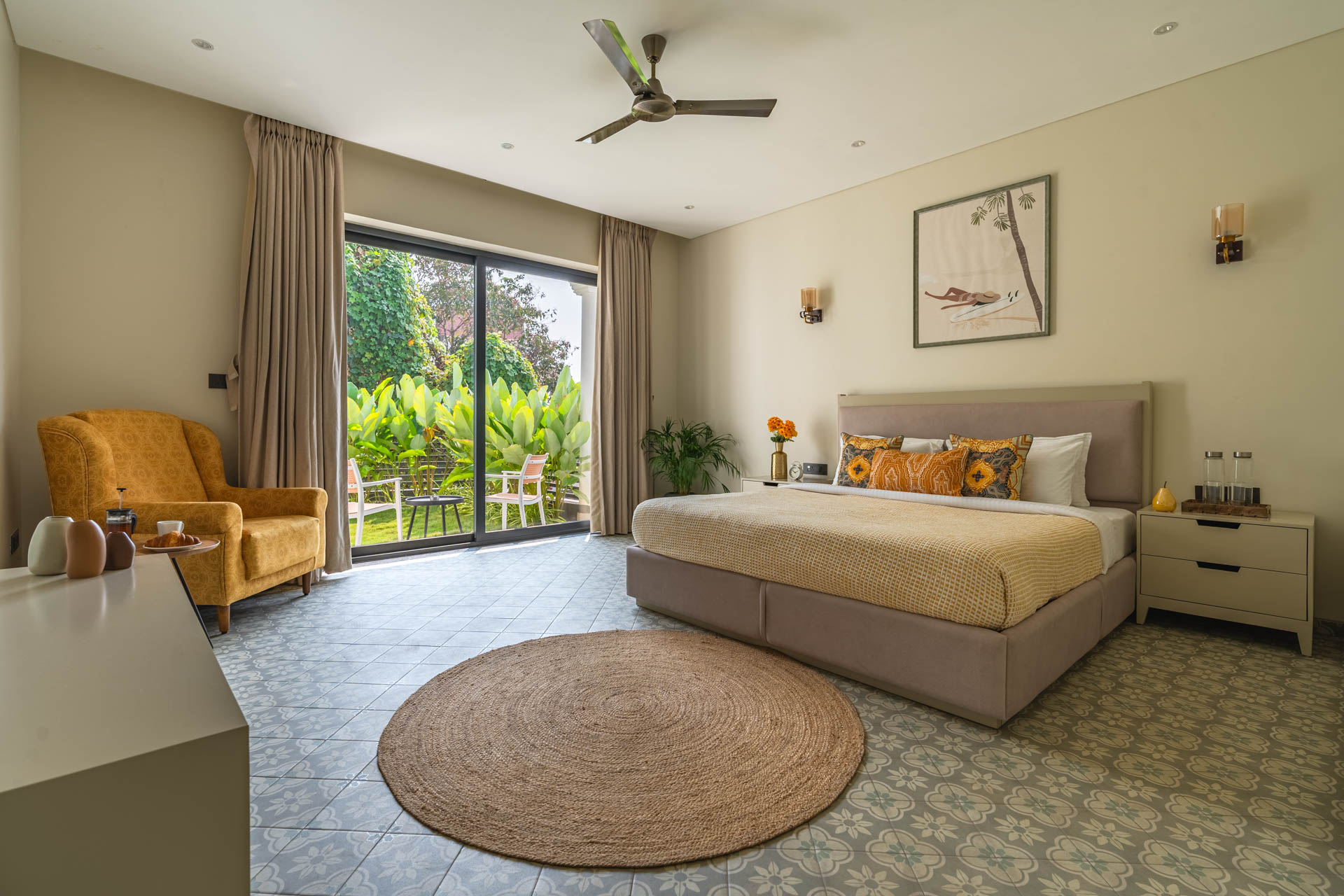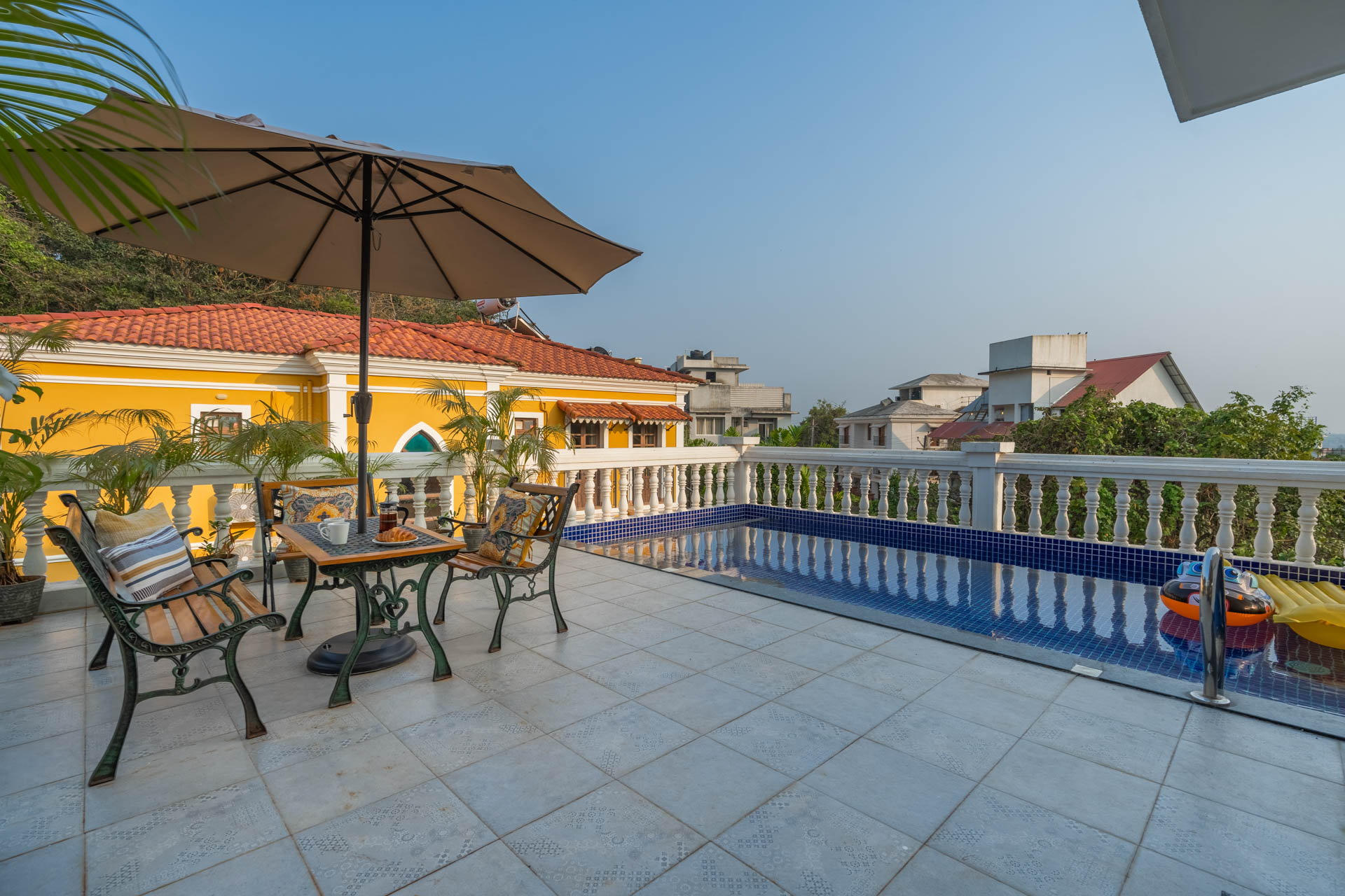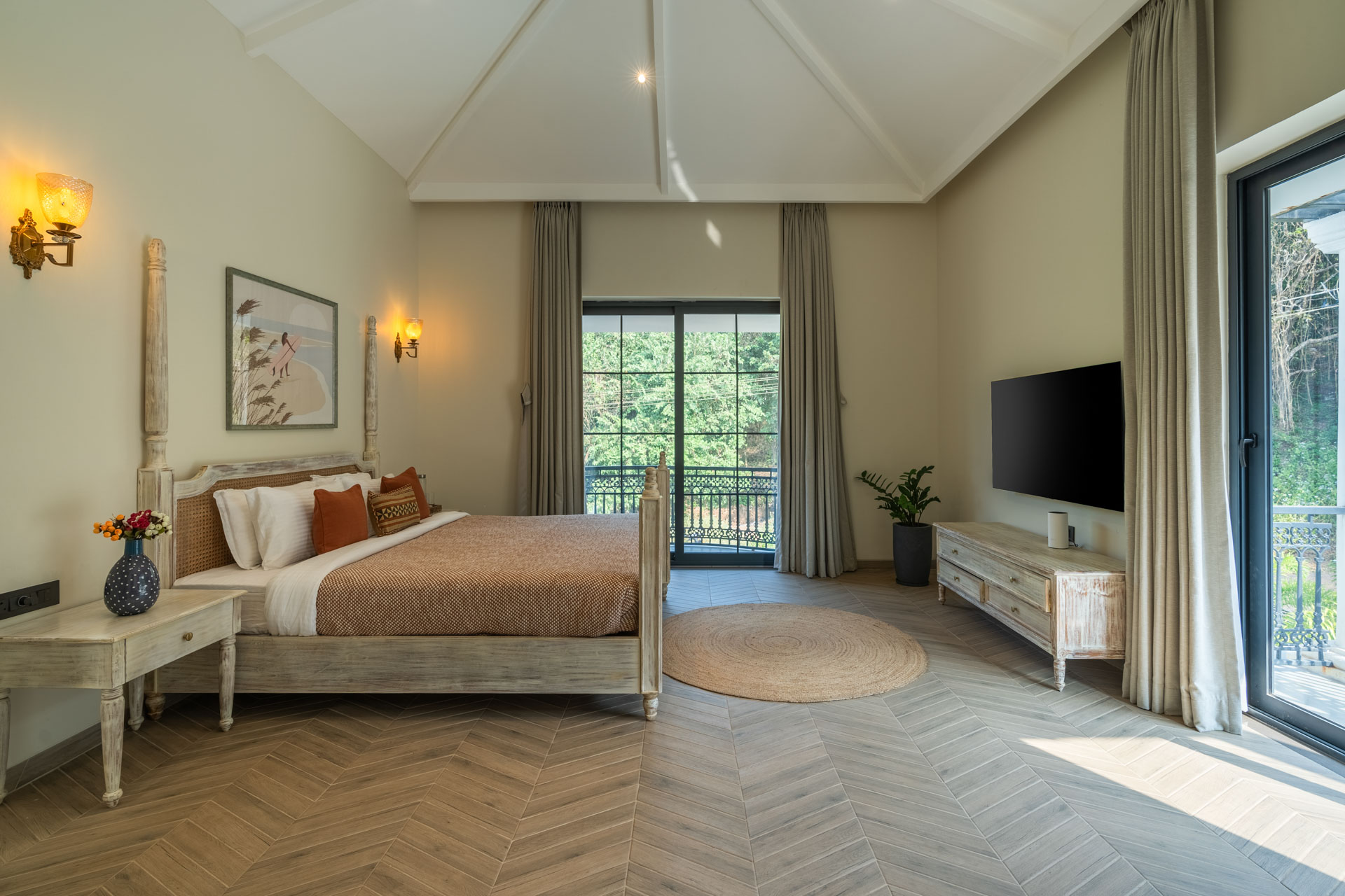 Start your tropical retreat at this majestic Goan haven in North Goa, where the day unfolds like a dream. Begin with a dip in the rooftop pool or the ground floor pool, soaking in panoramic views of swaying palms and the lush Goan landscape. For a more grounded escape, the lawn offers the perfect spot for a morning yoga session or a lazy picnic under the shade. Take your relaxation to new heights in your spacious room, with some offering indulgent jacuzzis to bubble your stress away. Savour delicious meals or fire up the barbecue for a smoky feast to remember. When the call of the coast beckons, explore Goa’s famed beaches like Vagator, Anjuna, and Baga, or chill at vibrant cafes such as Gunpowder and Purple Martini. As the sun dips, return to the property to unwind poolside or toast to a perfect day in paradise. This is Goa at its tropical best!
