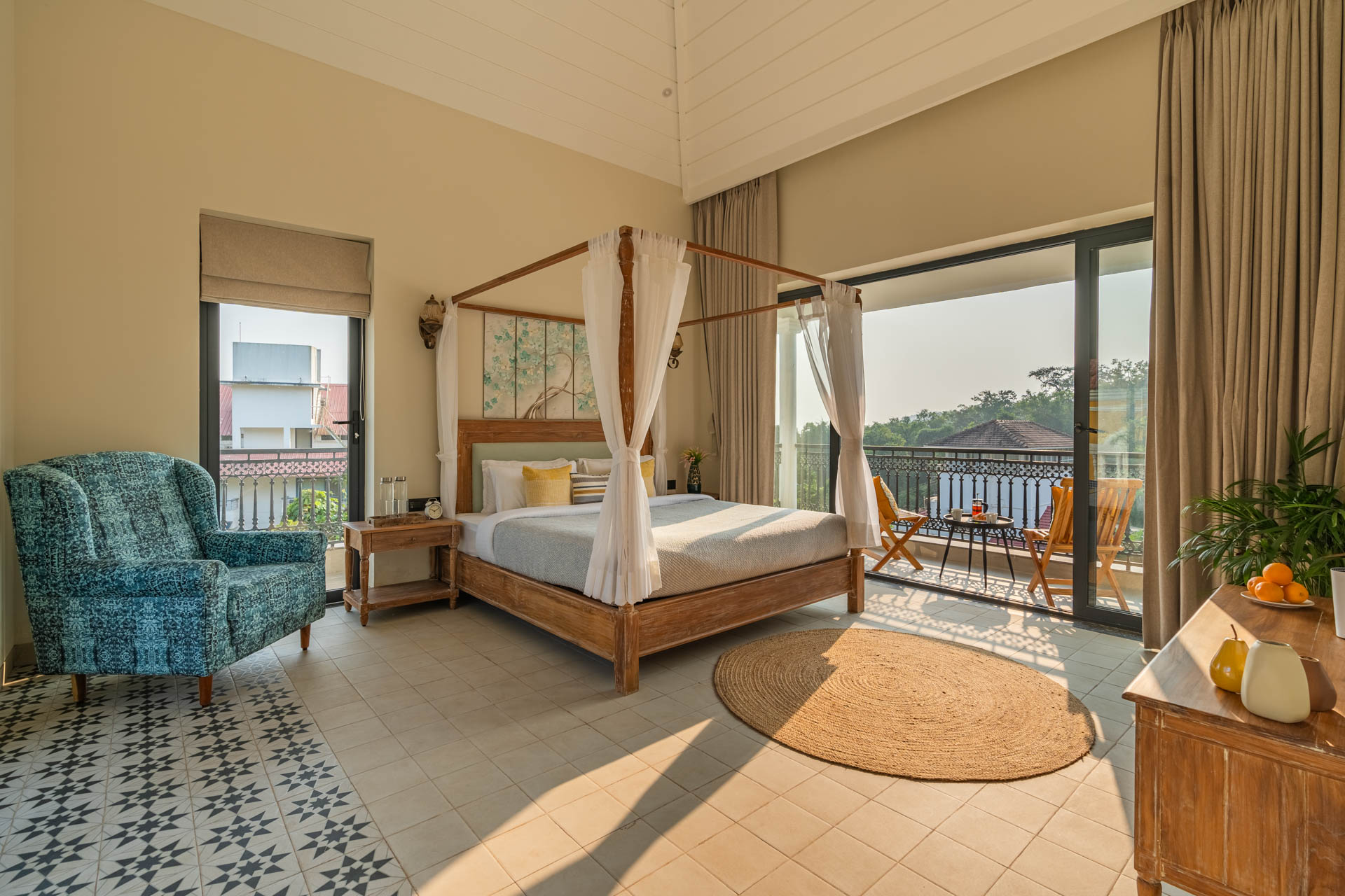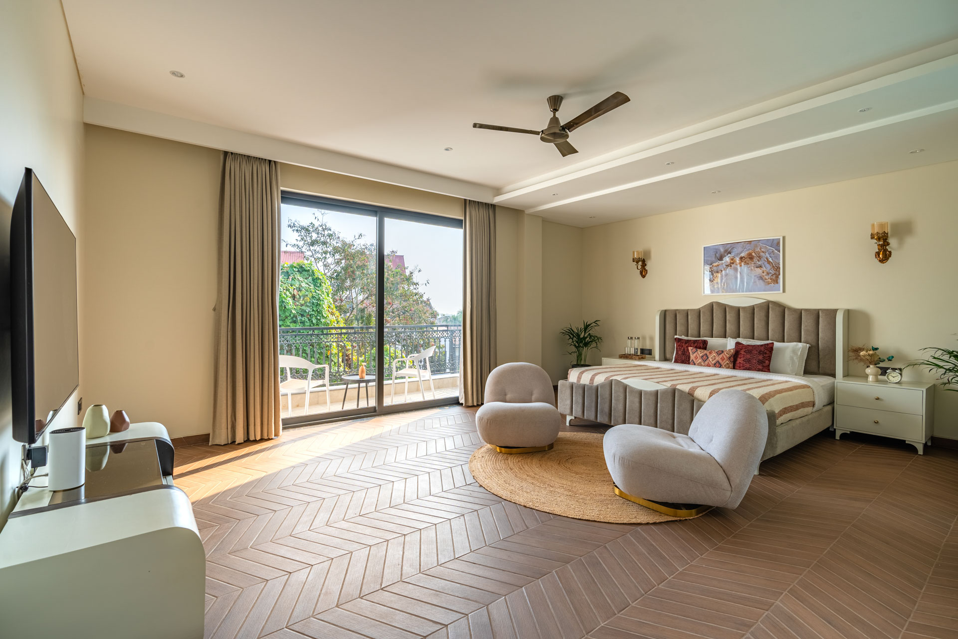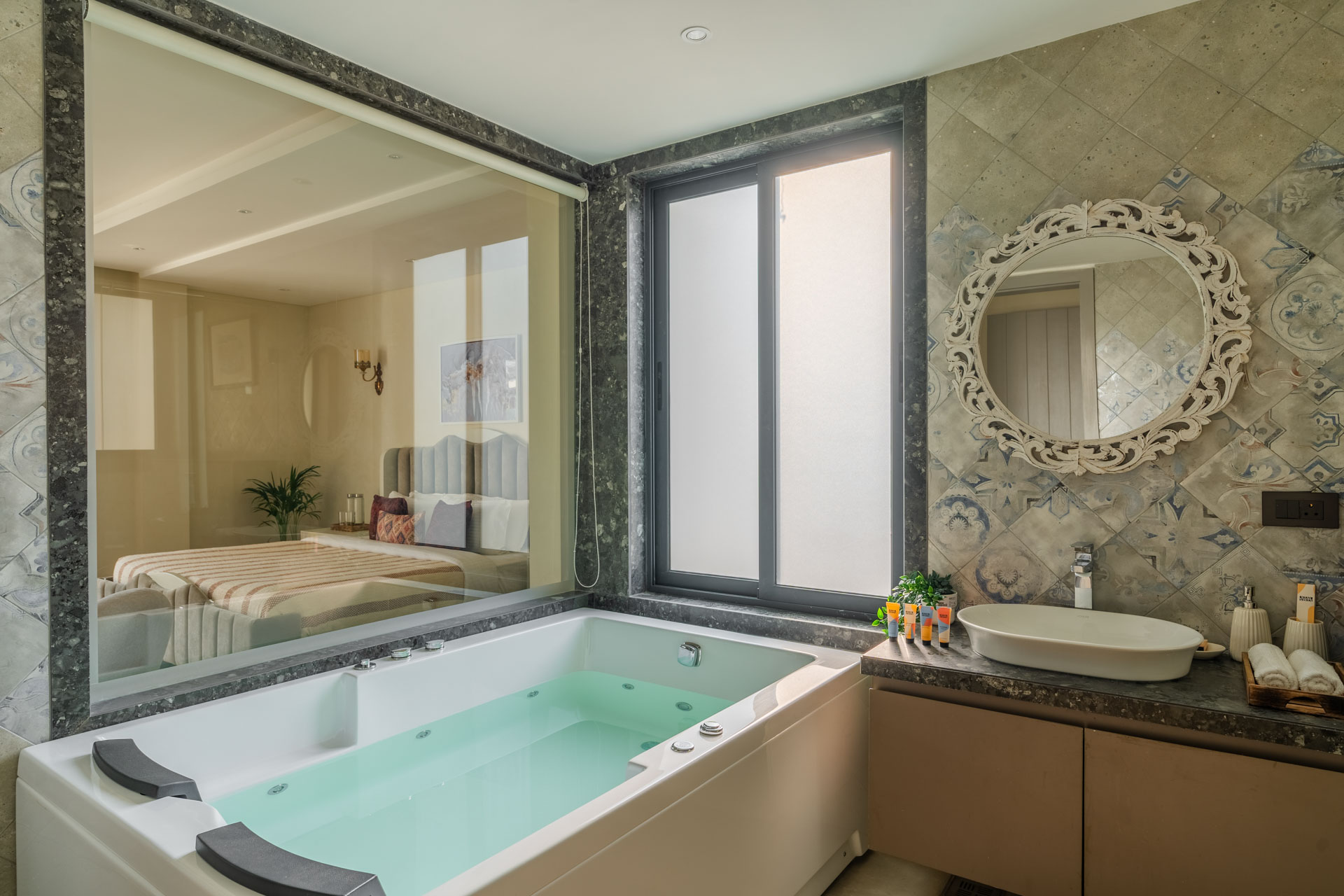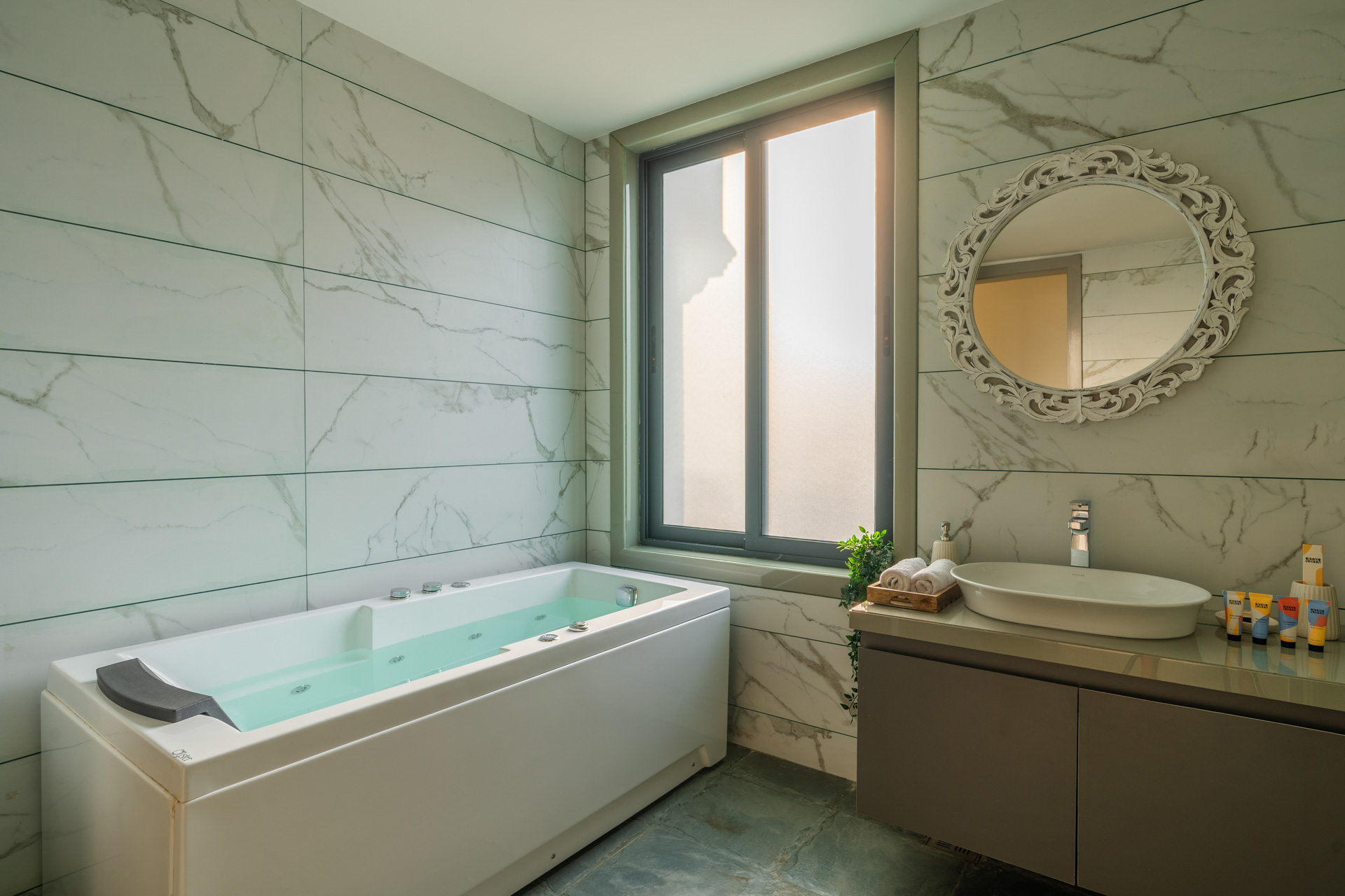 Start your tropical retreat at this majestic Goan haven in North Goa, where the day unfolds like a dream. Begin with a dip in the rooftop pool or the ground floor pool, soaking in panoramic views of swaying palms and the lush Goan landscape. For a more grounded escape, the lawn offers the perfect spot for a morning yoga session or a lazy picnic under the shade. Take your relaxation to new heights in your spacious room, with some offering indulgent jacuzzis to bubble your stress away. Savour delicious meals or fire up the barbecue for a smoky feast to remember. When the call of the coast beckons, explore Goa’s famed beaches like Vagator, Anjuna, and Baga, or chill at vibrant cafes such as Gunpowder and Purple Martini. As the sun dips, return to the property to unwind poolside or toast to a perfect day in paradise. This is Goa at its tropical best!