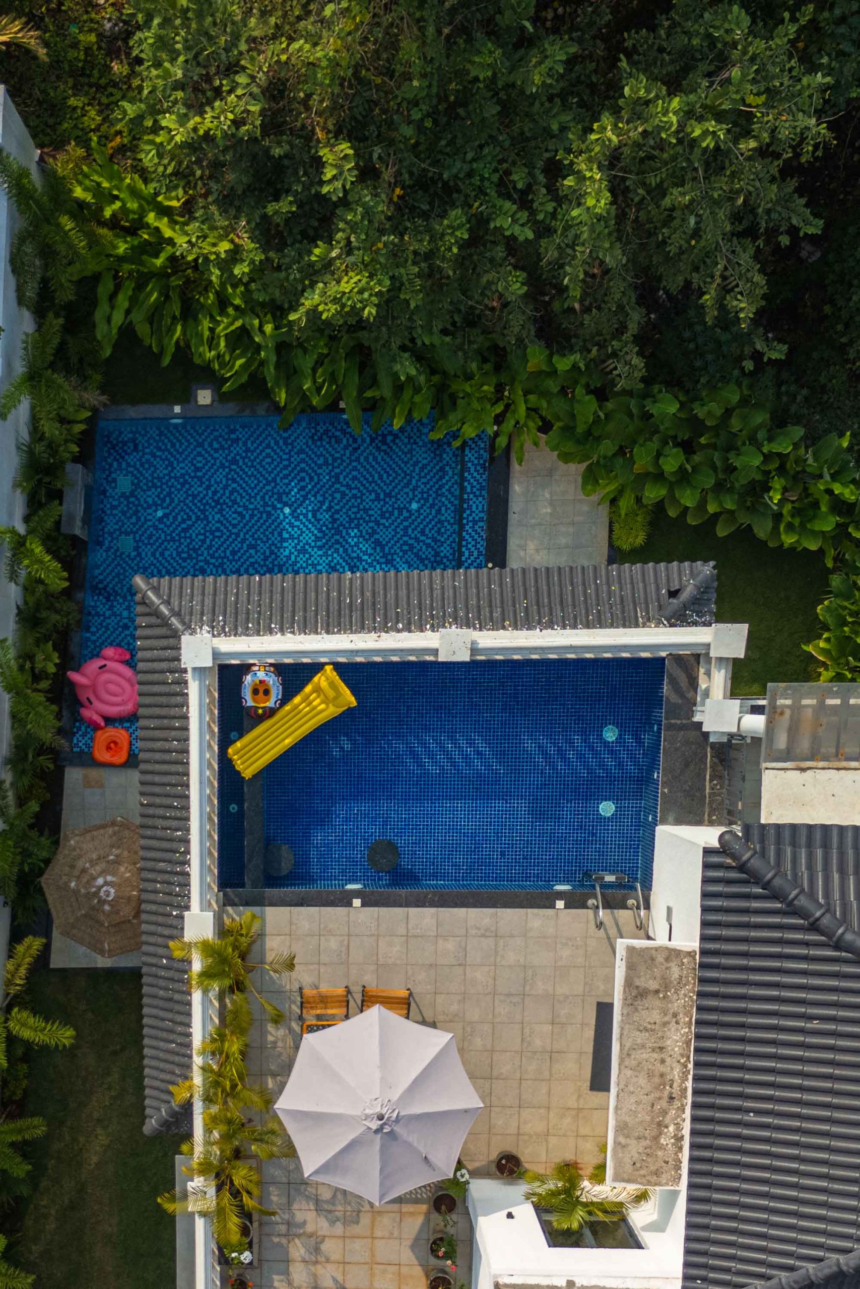 There are 2 private pools. One is on the ground floor and the other is a rooftop pool