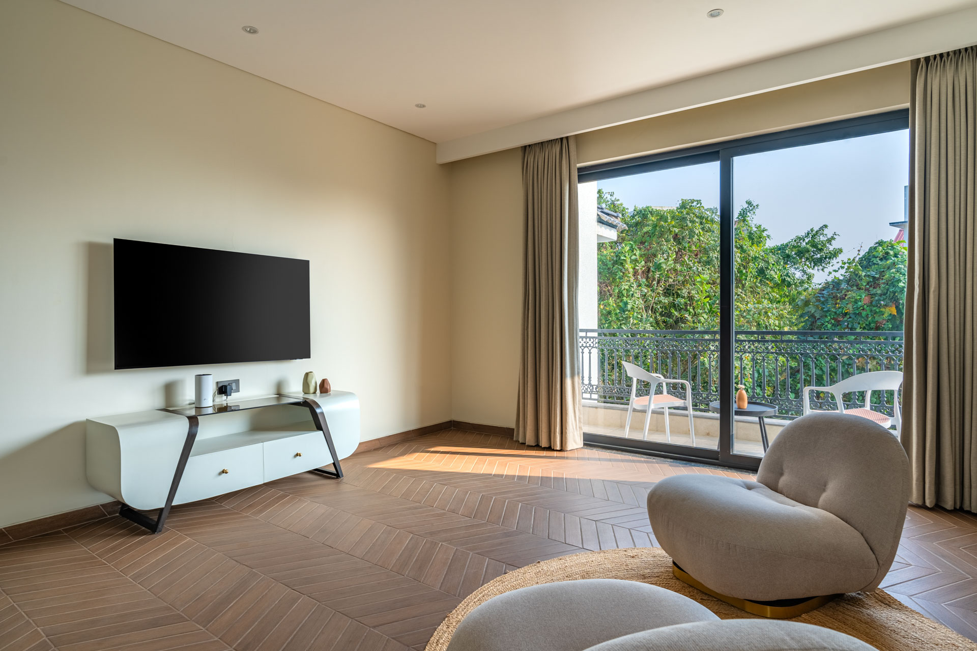 There is one living room on the ground floor, elegantly designed with amenities that elevate luxury.