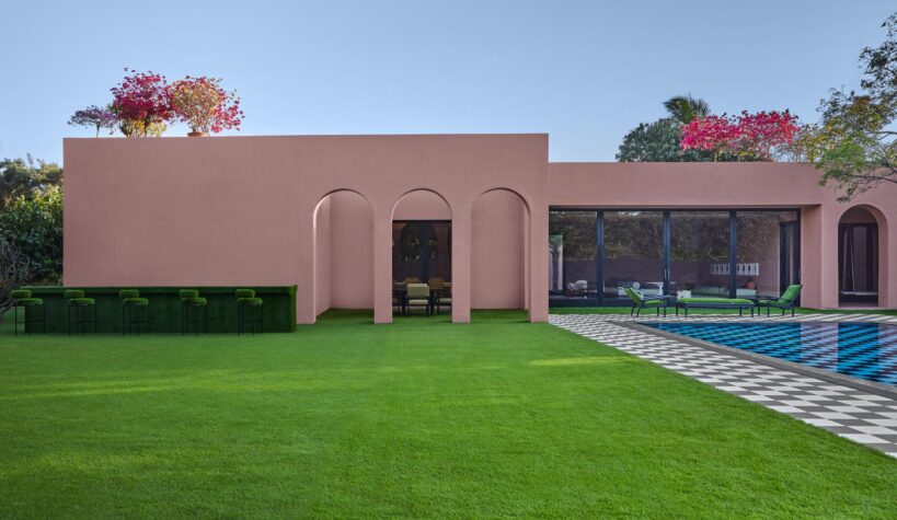 Embark on a spiritual journey at Casa Del. Tucked away amid swaying palms in Alibaug, the villa is an invitation to think deeply. Architect Pinakin Patel uses clean lines and soft curves to craft contemplative spaces that let you breathe. The five ensuite bedrooms are minimally decorated with elegant pieces and statement artwork. The Dholpur red stone colours the entire villa in a shade that is both soothing and inspiring. Enjoy a meditative day as sunlight and birdsong bathe the villa, which by night transforms into a dynamic space brought alive by the evening lights.