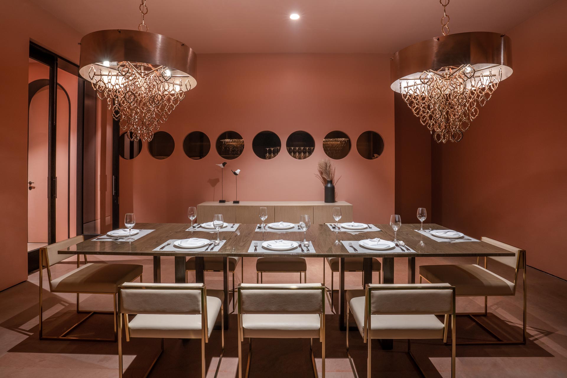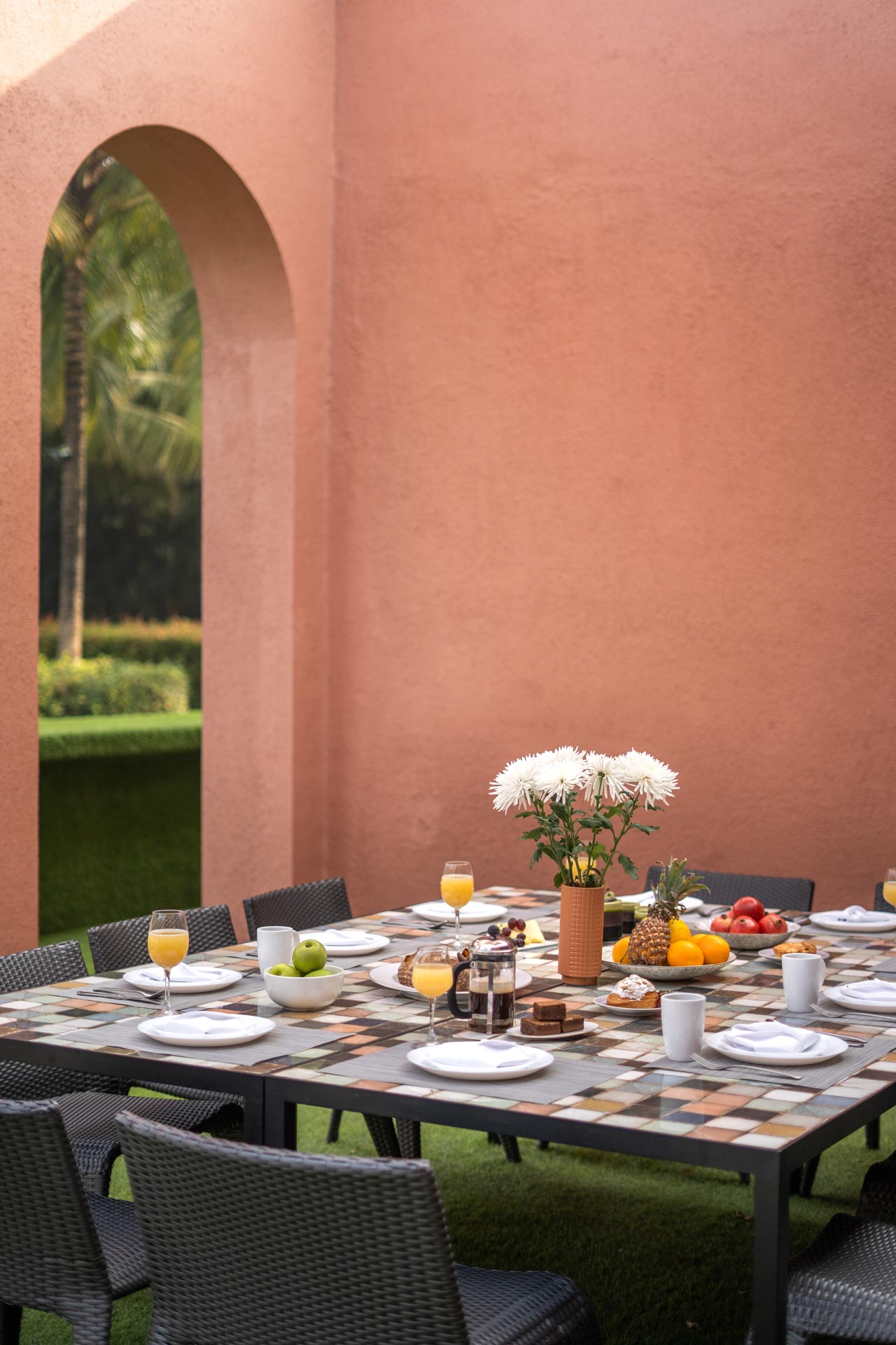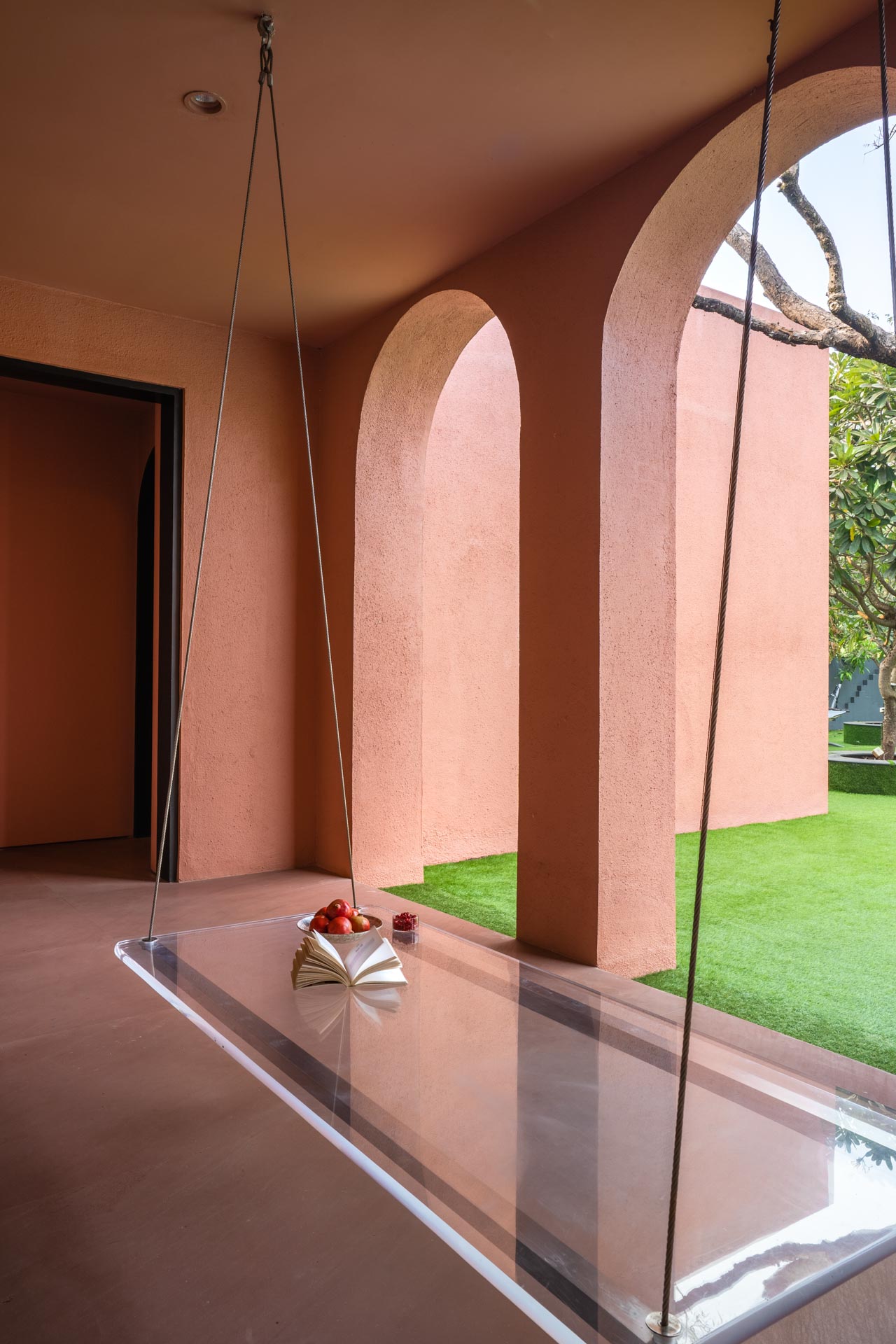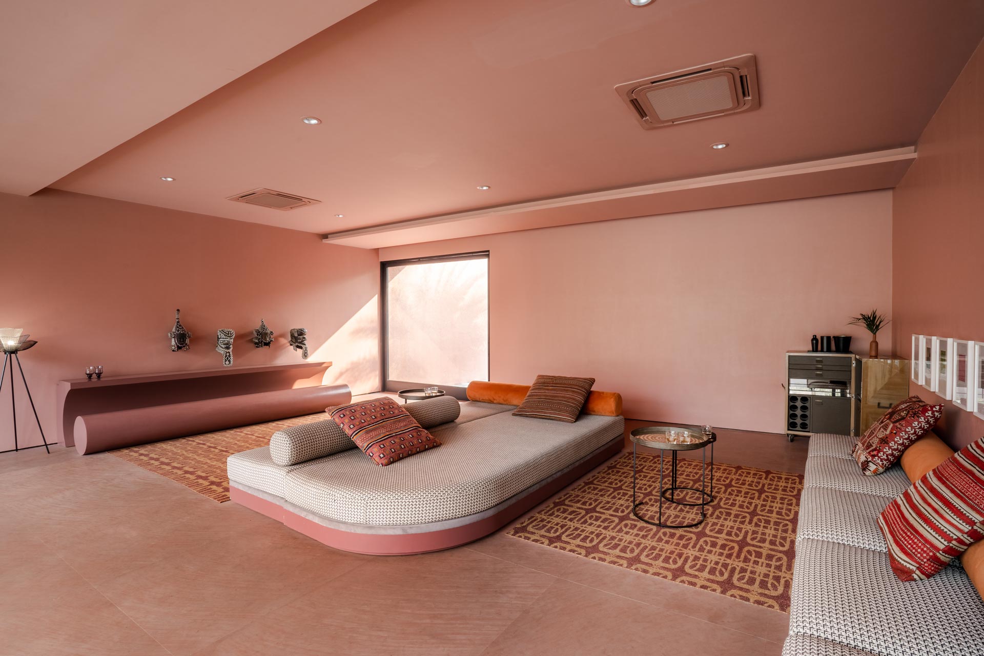 Embark on a spiritual journey at Casa Del. Tucked away amid swaying palms in Alibaug, the villa is an invitation to think deeply. Architect Pinakin Patel uses clean lines and soft curves to craft contemplative spaces that let you breathe. The five ensuite bedrooms are minimally decorated with elegant pieces and statement artwork. The Dholpur red stone colours the entire villa in a shade that is both soothing and inspiring. Enjoy a meditative day as sunlight and birdsong bathe the villa, which by night transforms into a dynamic space brought alive by the evening lights.