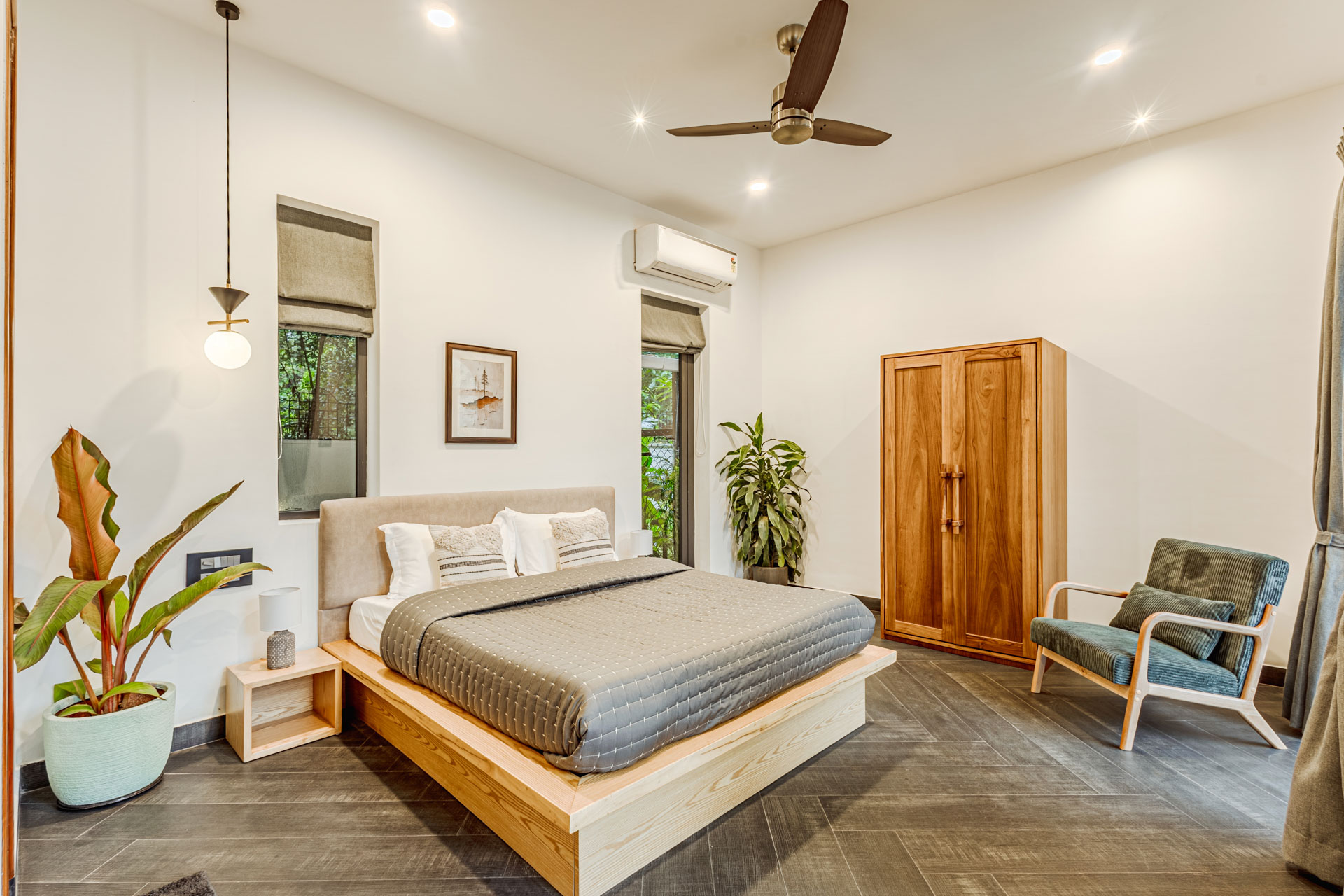 Nestled in the heart of Siolim, Casa Lumina is a tranquil sanctuary where nature’s charm meets refined elegance. Surrounded by scenic vistas and bathed in a serene atmosphere, it offers the perfect escape from the everyday rush. The villa’s earthy interiors, adorned with elemental accents and warm tones, exude a sense of grounded grandeur, creating spaces that feel both luxurious and inviting. Step outside to discover a sparkling private pool—ideal for a refreshing dip or a lazy afternoon under the Goan sun. A beautifully manicured lawn unfolds into a picturesque garden, offering serene corners for quiet reflection or cheerful gatherings. Whether you wish to stay connected with the world through unlimited high-speed WiFi or disconnect entirely to embrace the villa’s calming rhythm, Casa Lumina offers the best of both worlds. Here, every moment is steeped in comfort, beauty, and the understated sophistication that defines Siolim’s finest retreats.  This villa is part of a beautifully developed campus by Zedpoint Developers, named IDA – by Zedpoint. The campus features 13 identical villas, with Casa Lumina (Villa 10) and Casa Roma (Villa 12) being part of this serene property. Both villas share a common entrance while maintaining privacy, lush greenery, and open spaces. Guests can book either villa individually or both together. Please note that while the exteriors of Casa Roma and Casa Lumina are similar, their interiors have distinct designs.