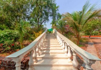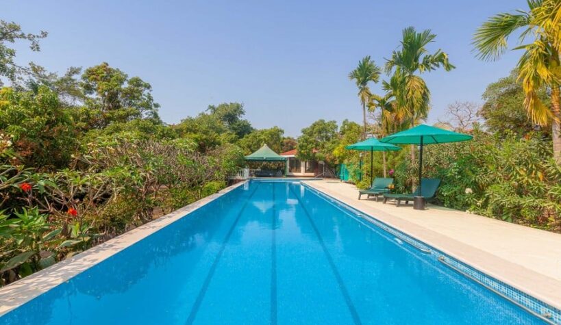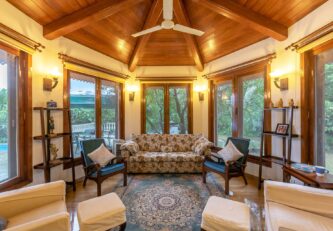 There’s room for everyone at the beautiful 6 BHK Casa Palmera. Laid with Jaisalmer stone, the property is flushed with a unique organic warmth. Separate to the main bungalow and across the property is an outhouse which is like a large gazebo with glass walls. Take a moment to appreciate the massive living space that opens out to a large, covered verandah overlooking the mango orchard. The villa is full of surprises and experiences, including kicking back in the glorious 22-meter swimming pool.