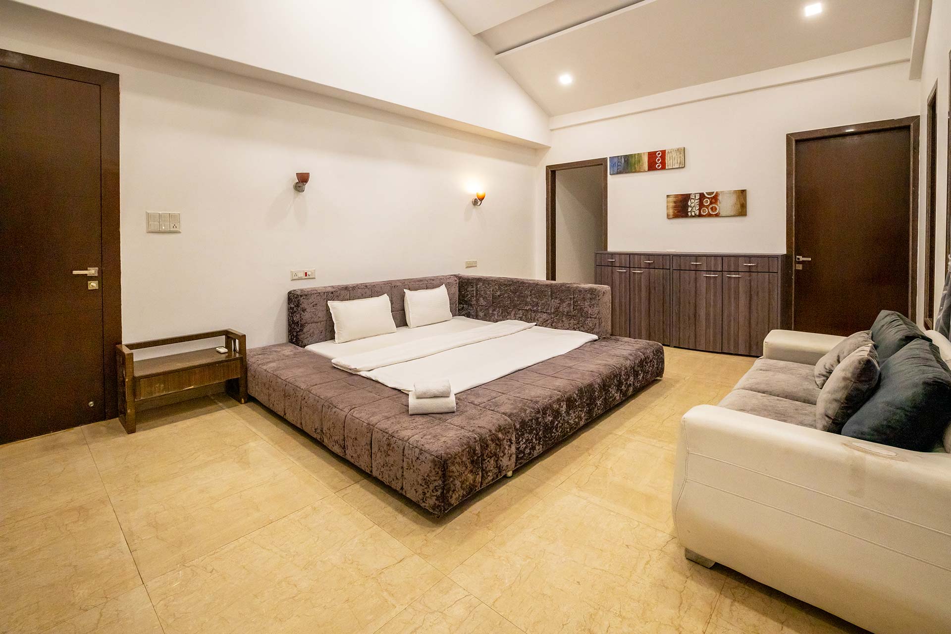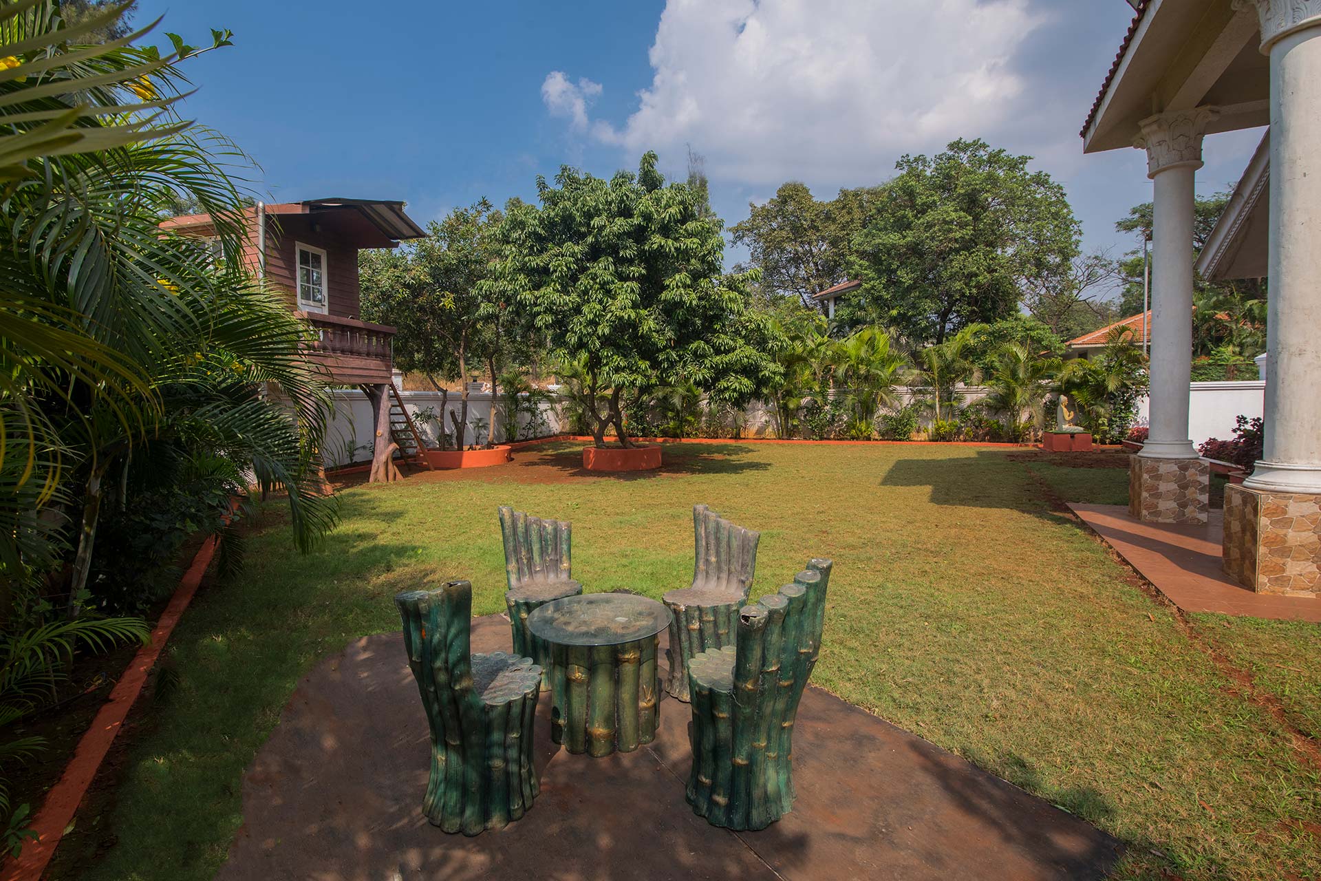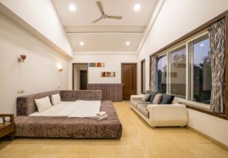 It’s time to treat yourself and your loved ones! With 4 spacious bedrooms, a massive living room and a vast terrace, there’s enough space for everyone. Play games like cricket and badminton on the 2 sprawling lawns, and catch a breath in between at the gazebo. There is swimming pool! Simply sit around a bonfire and share old memories, or explore the tree-house and create new ones!
