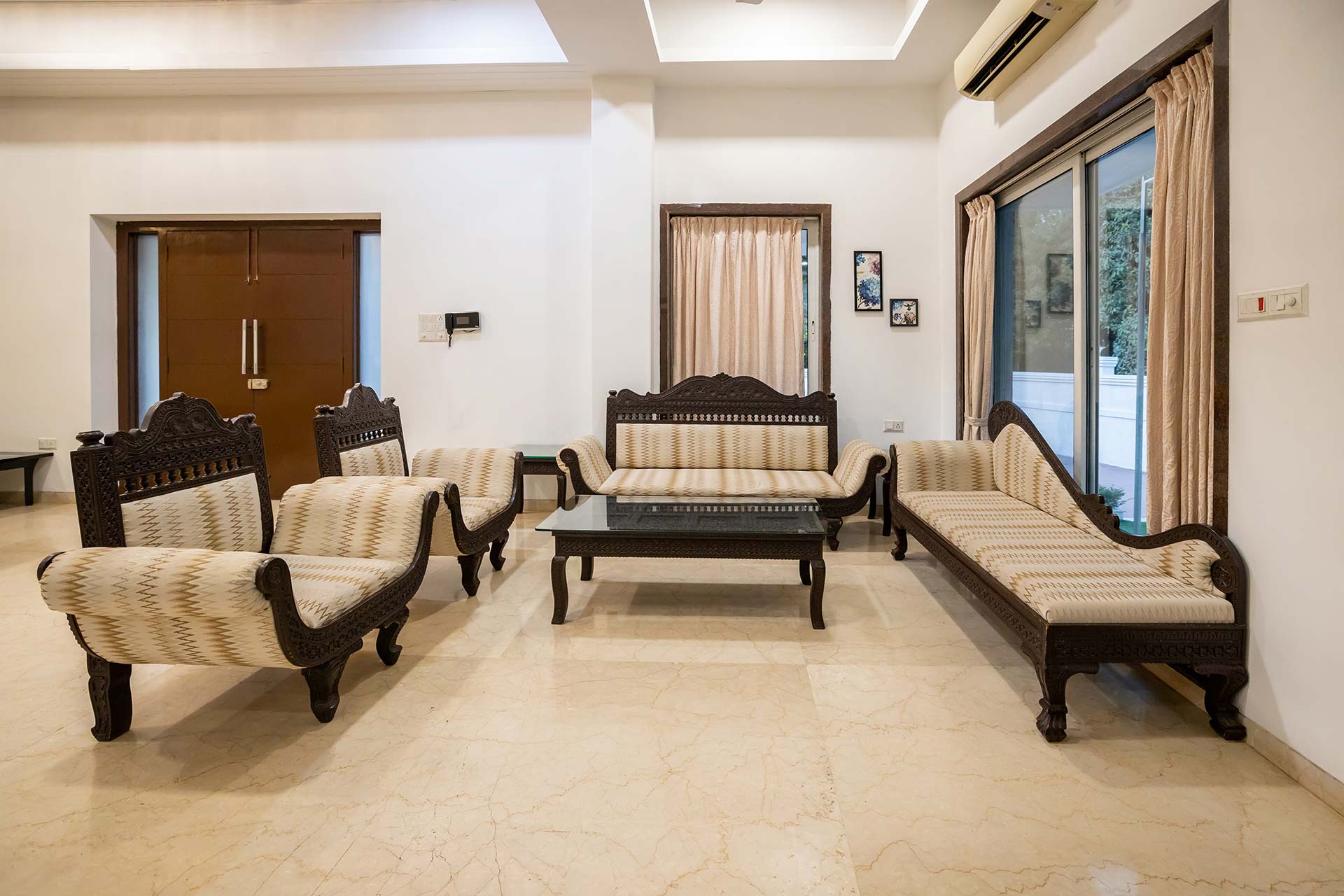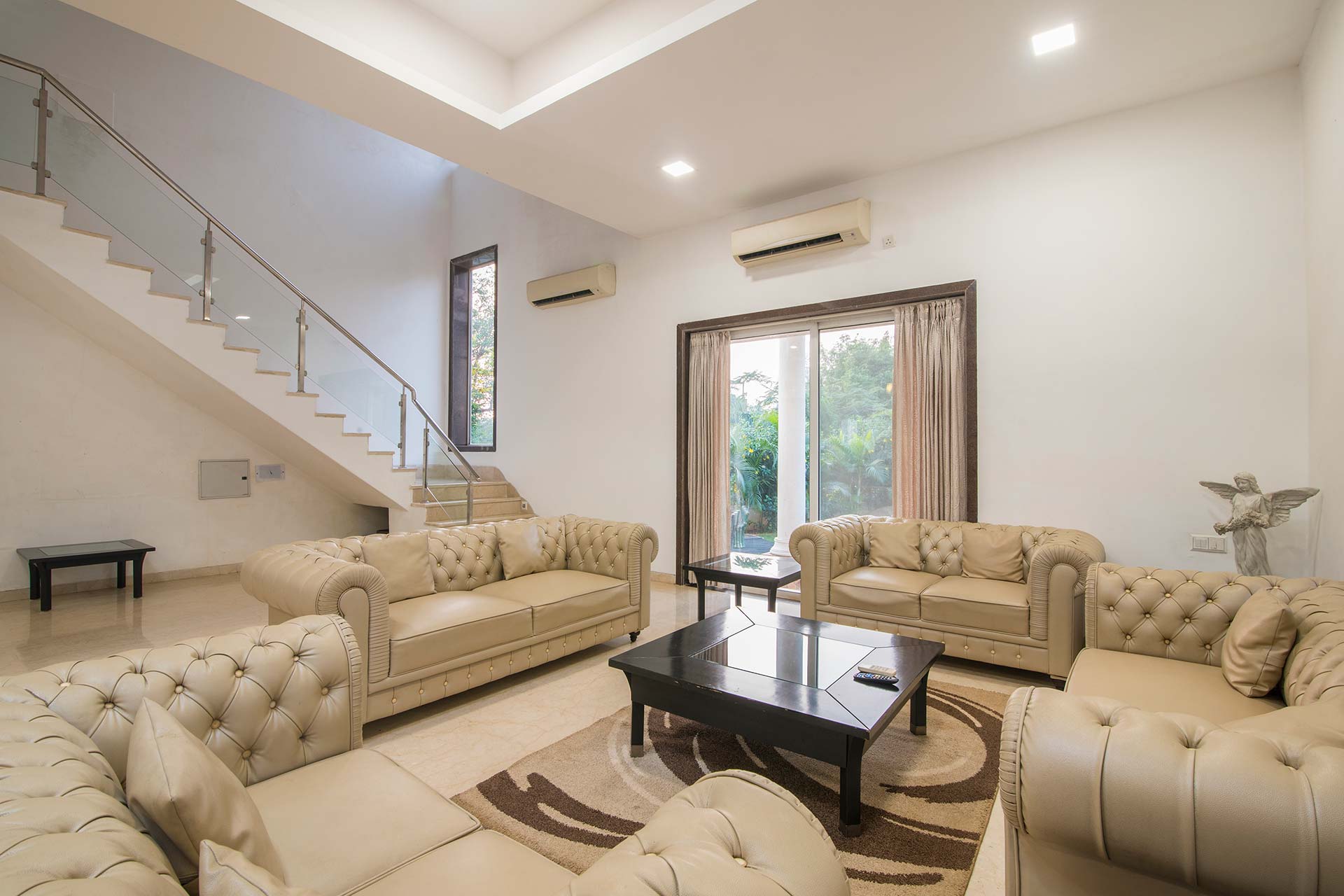 – There are 5 bathrooms in the villa. – 4 attached, 1 common bathroom on the ground floor.