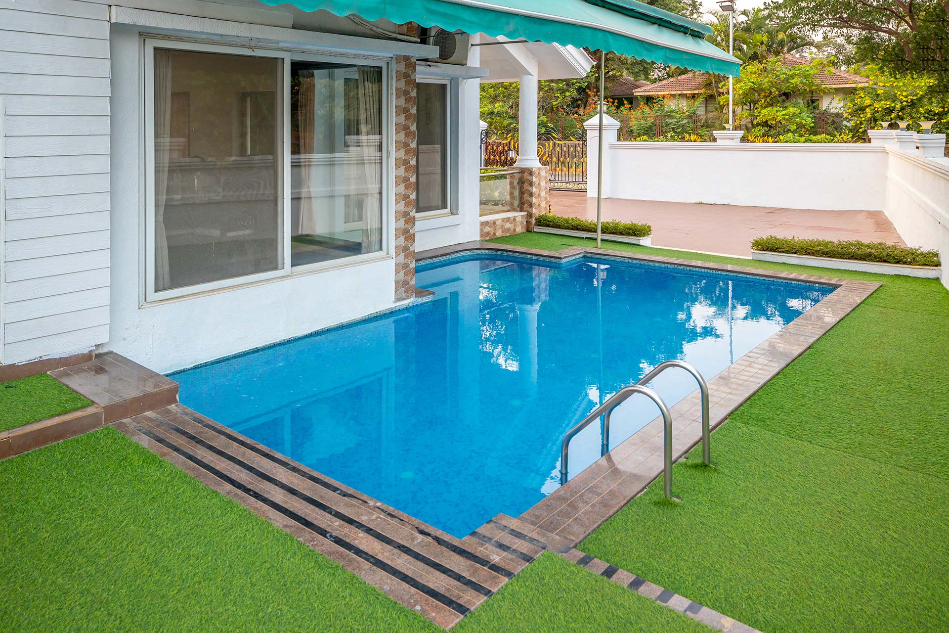 – There is a 2,000 sq. ft lawn with accommodation for up to 75 people.