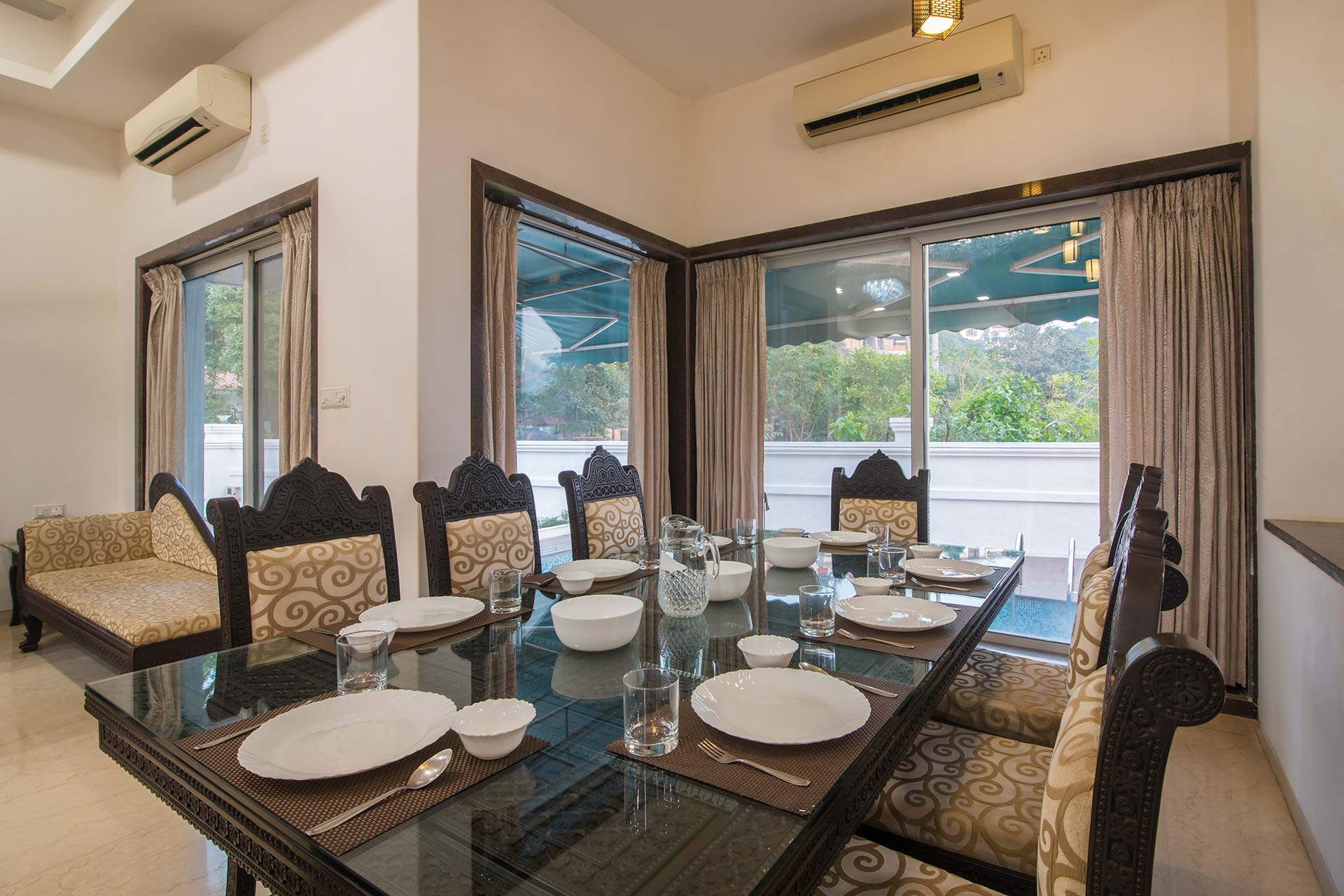 – All vegetarian meals can be provided in-house at an additional cost of Rs. 1500 per person, per day. All non-vegetarian meals can be provided in-house at an additional cost of Rs. 1800 per person, per day.