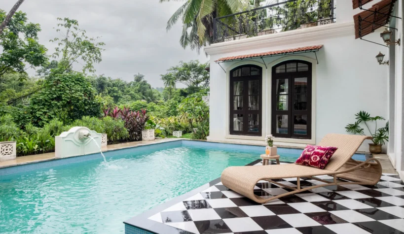 Derived from the word ‘castle’, Castello Villa 6 celebrates the unification of modern and timeless design. Part of the Castello villa community in Assagaon, the home seamlessly weaves together traditional Mediterranean architecture with modern, world-class amenities. The stunning living and dining room opens up into a beautiful pool area, perfect for relaxing with a chilled cocktail in hand, while taking in the lush green views. The four gorgeous ensuite-bedrooms include a master suite that comes with a private sit-out. The cozy terrace on the second floor will allow you to make the most of balmy Goan evenings and is ideal for hosting an intimate soirée. Focus on work or unwind with a book in the study, or don the chef’s hat in the fully equipped kitchen. And if you’d like to step out and explore or indulge in some of our unique in-villa experiences,  guest relations and concierge teams will be at hand with the best recommendations and thoughtful assistance. Secluded yet thriving, Assagaon has it all. Its leafy streets, lush fields and nearby pristine beaches are where you can stop and catch a breath before heading off to one of its popular restaurants for a thumping night of fun.