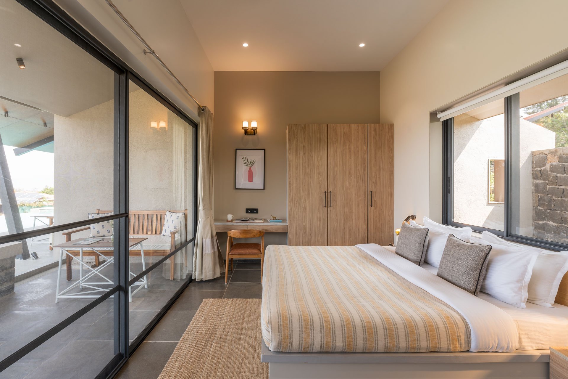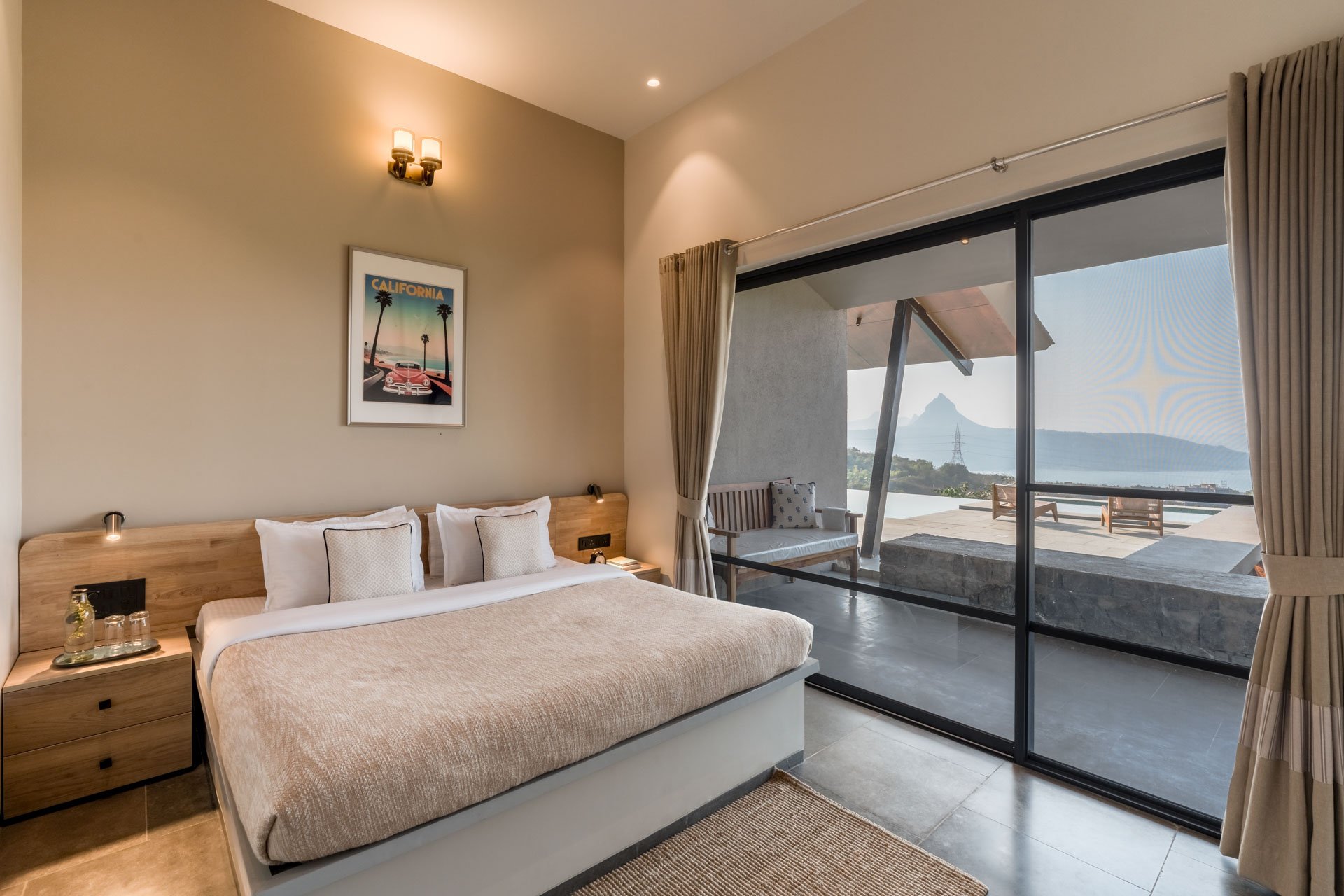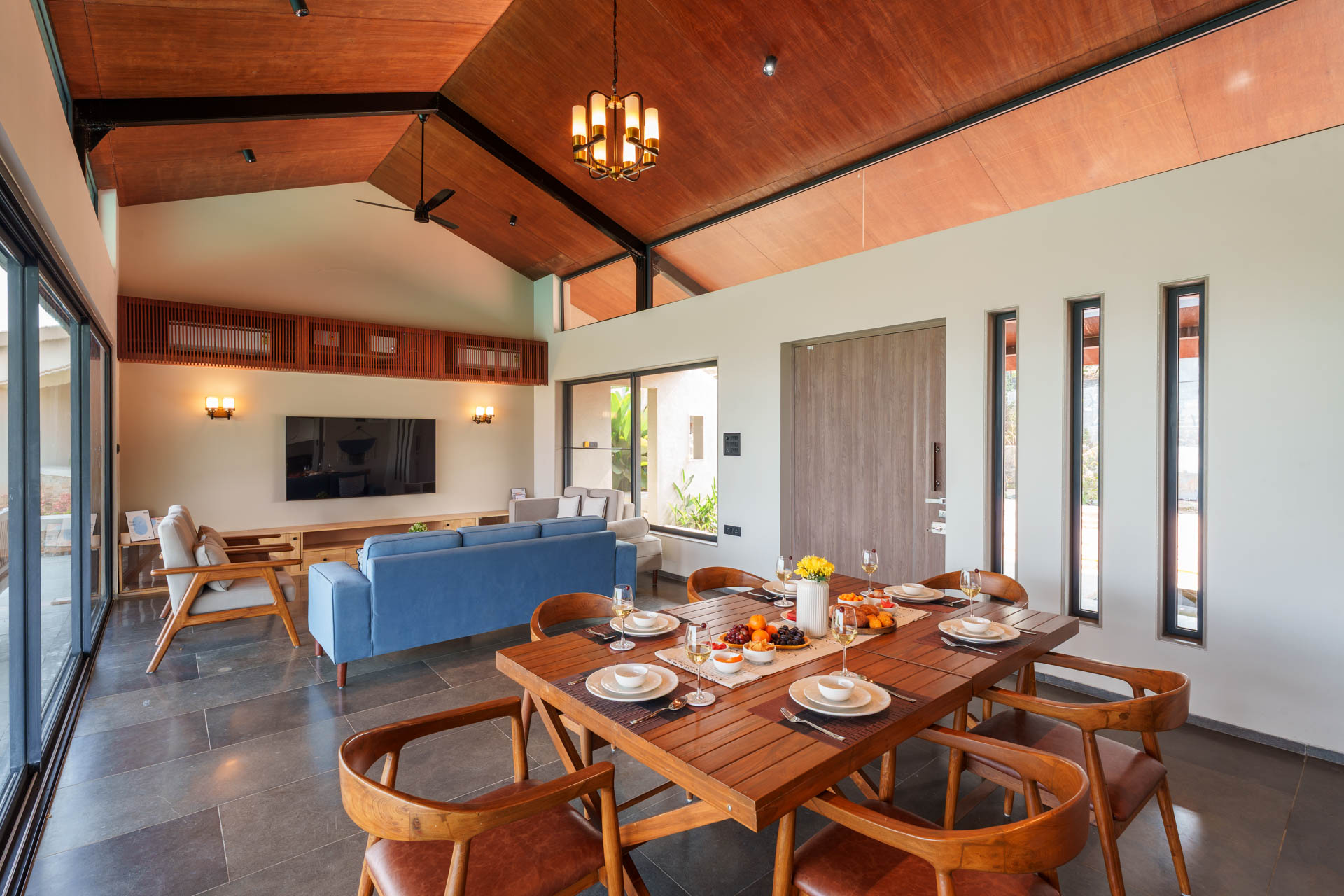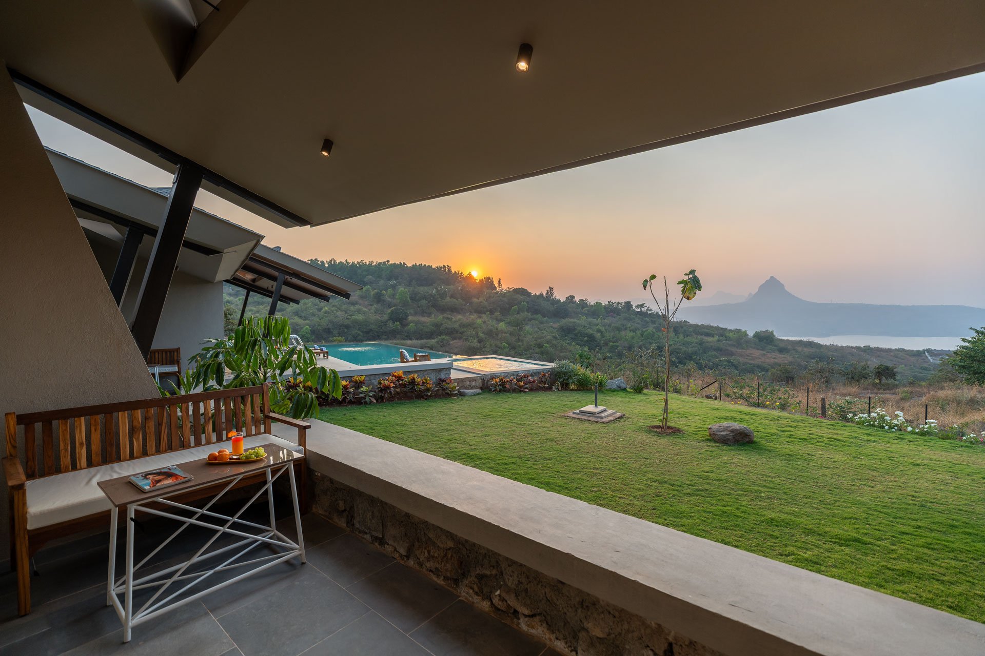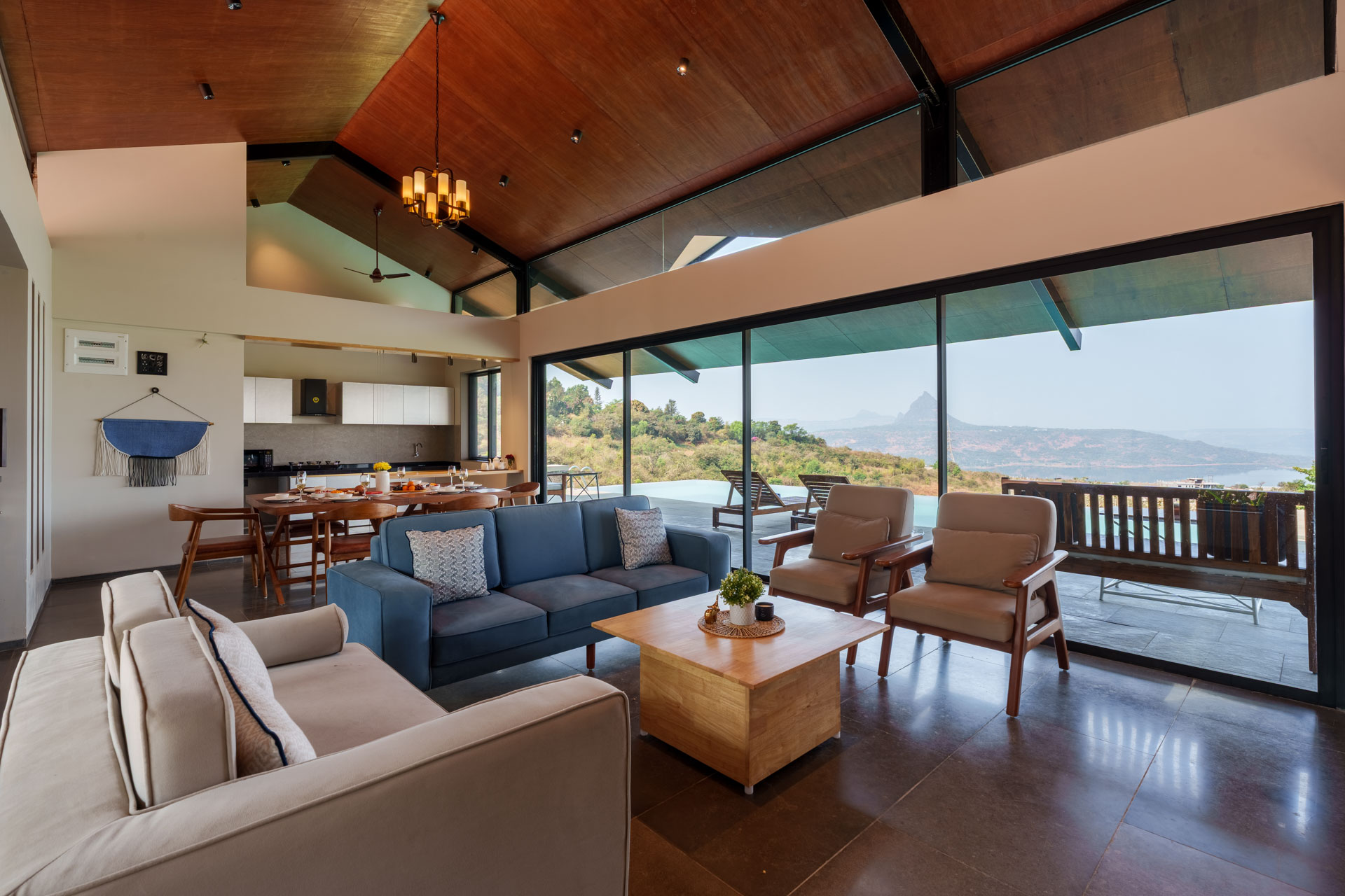 Chitrakoot is a humble villa in Lonavala, wrapped in lush greenery and breathtaking valley views. With a striking facade, this five-bedroom retreat effortlessly marries sophistication with nature. The tranquil silence draws you in, far enough from the road to enjoy the peace, yet close enough to feel connected to the local charm. Steps away, an inviting outdoor pool and heated jacuzzi await, a perfect spot to unwind under the sky, framed by mesmerizing vistas. The spaces are thoughtfully crafted for relaxation, with plush, understated decor that creates an elegant yet homely vibe. Conveniently accessible from Lonavala, Pune, and Ambe Valley, Chitrakoot is tucked amidst scenic surroundings near Tikona, a locale favoured by celebrities. It is the perfect getaway to pause, rejuvenate, and make timeless memories.