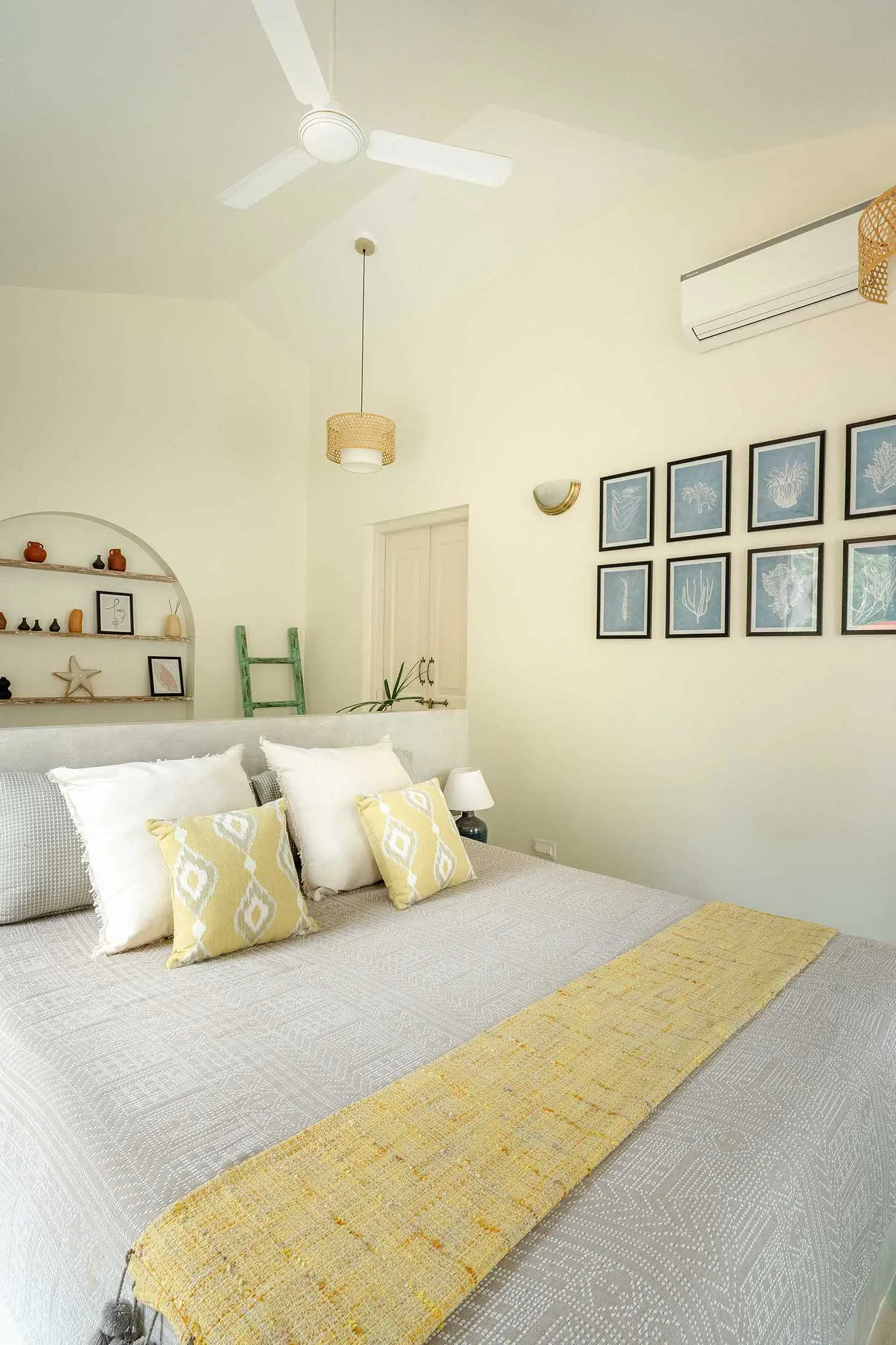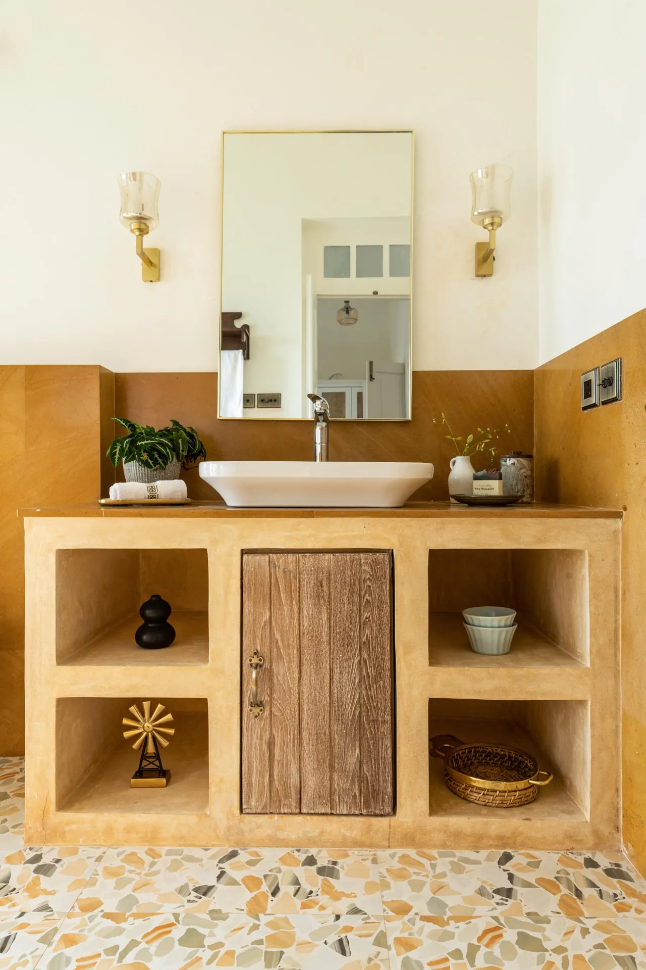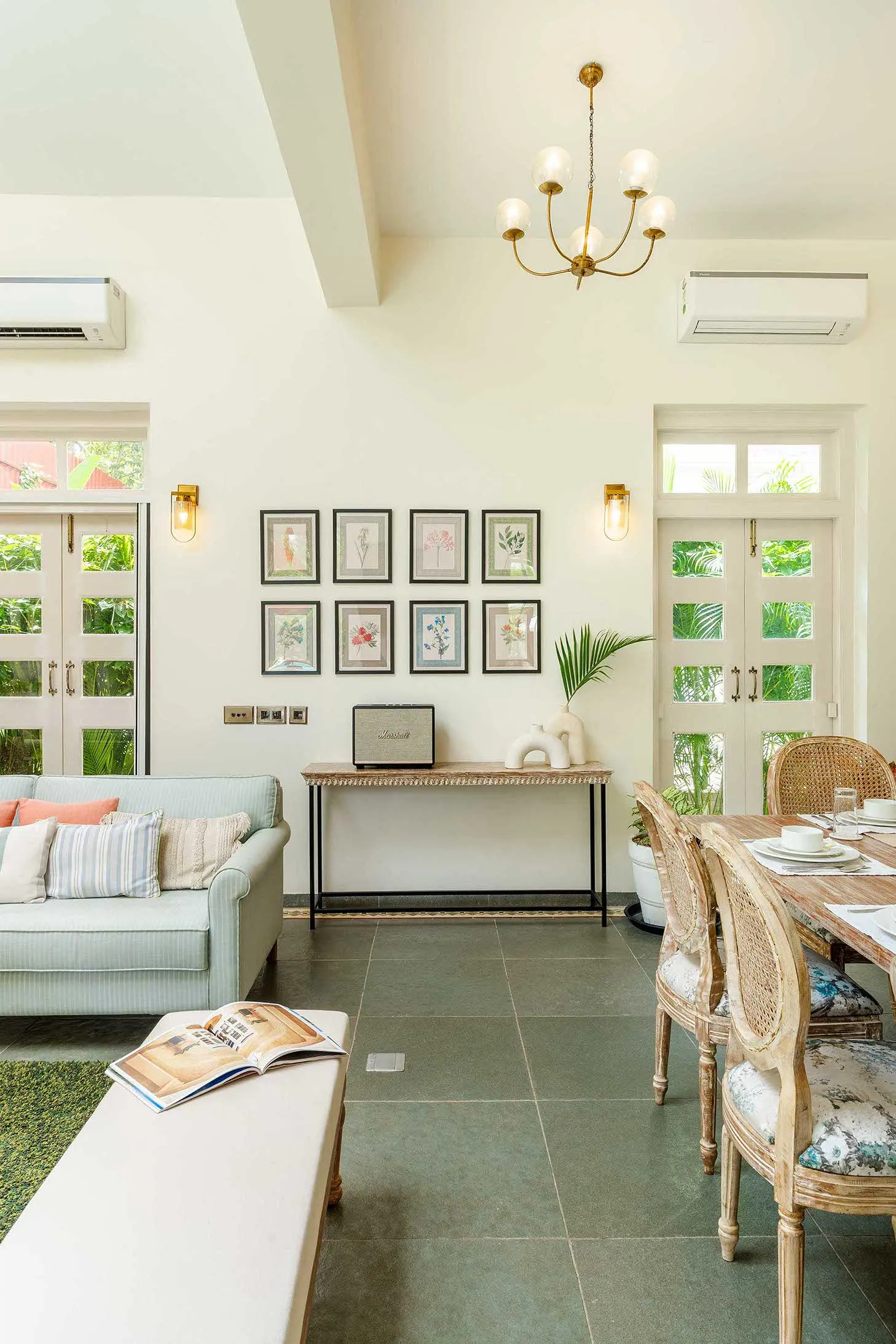 A stunning skylight enhances the light, airy atmosphere of the living space while the soothing colour palettes juxtaposed with patterned tiles in the 3 ensuite bedrooms create a playful harmony. With a private pool, terrace and multiple sit-outs, the Mediterranean-inspired Villa H encourages you to make the most of the balmy Goan weather. The semi-covered bar sets the tone for a revelrous evening with family or unending conversations with your confidants.