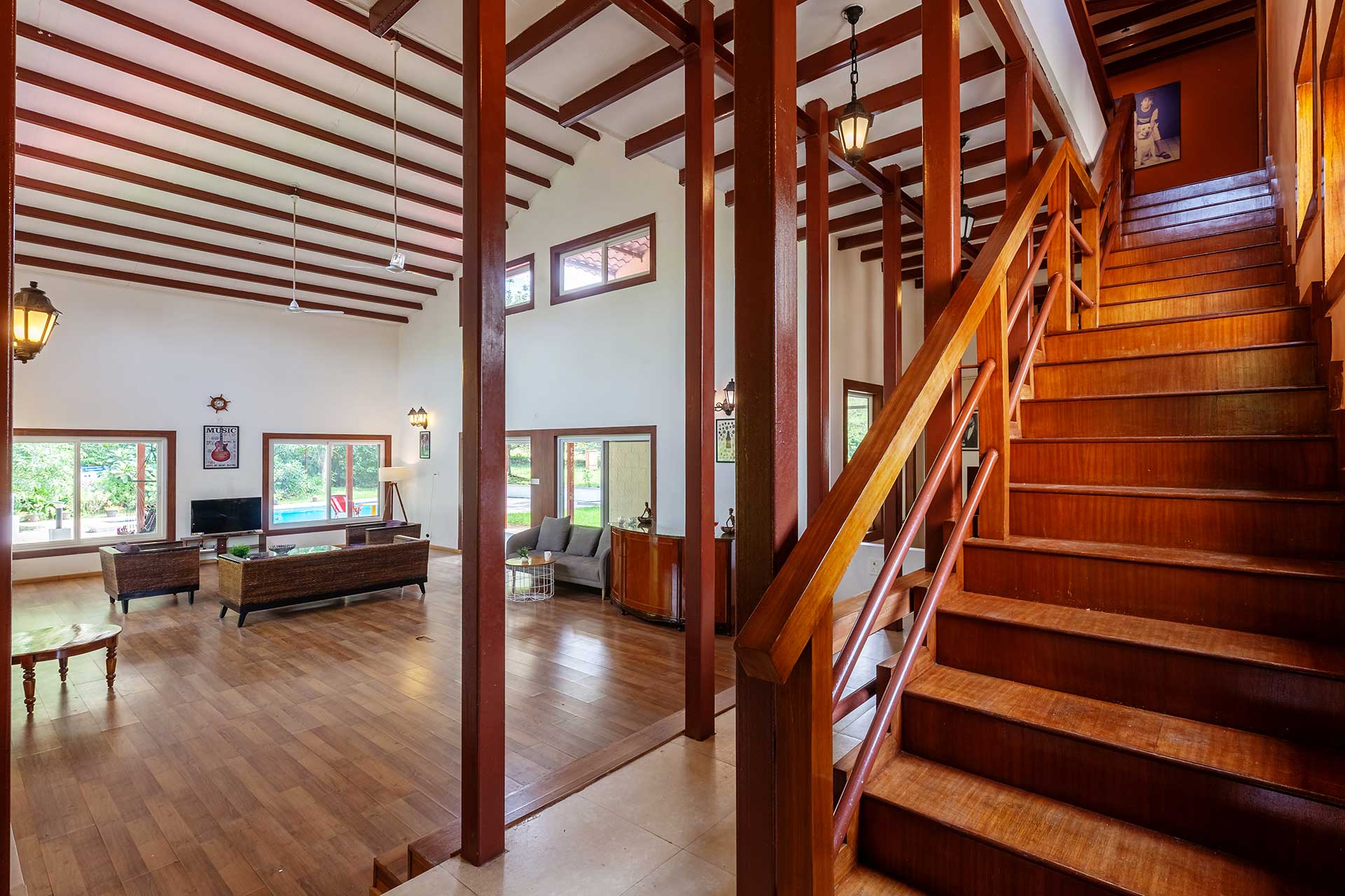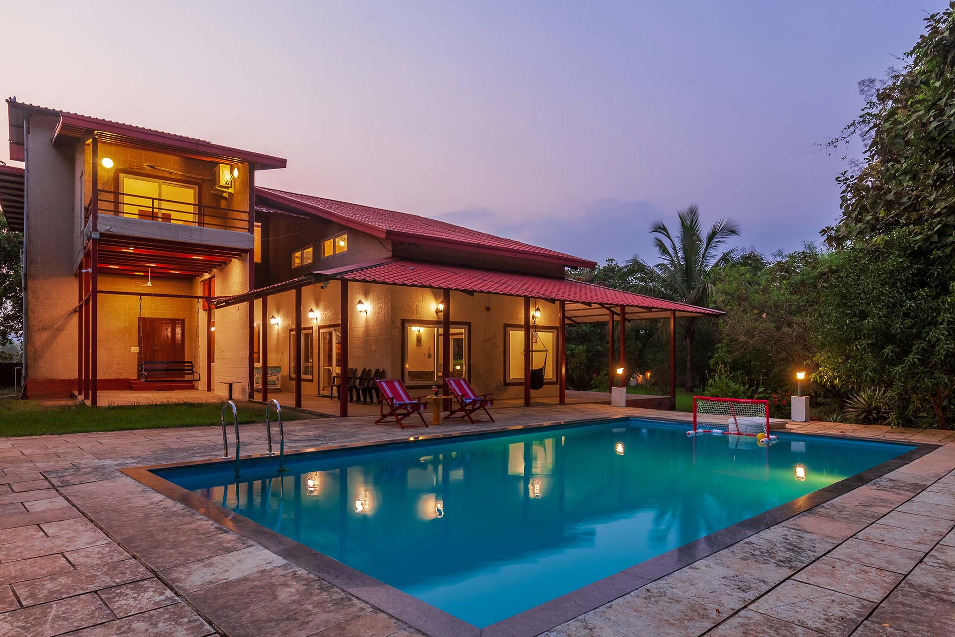 Offering an unconventional natural hideaway in the quaint town of Karjat, Corfu and Crete are twin villas where you can have a quick staycation with your entire tribe. This pet-friendly home offers beautiful sights of the lush green Sahyadris and is a classic respite amidst the meandering forests. Relax and unwind in the pool, or play to your heart’s delight on the expansive lawn; this home with its regal wooden décor offers multiple opportunities to fill your treasure trove with some beautiful memories.