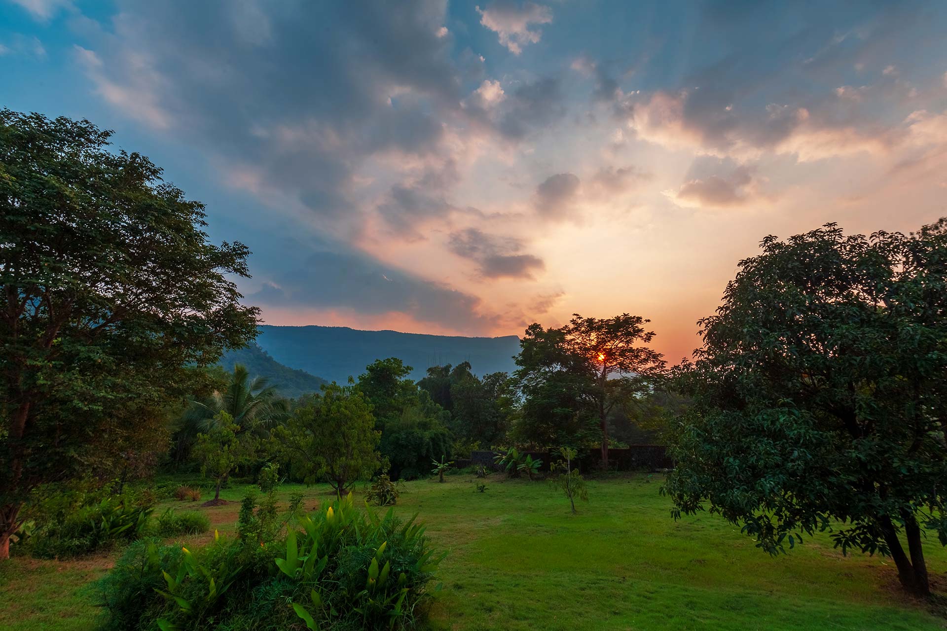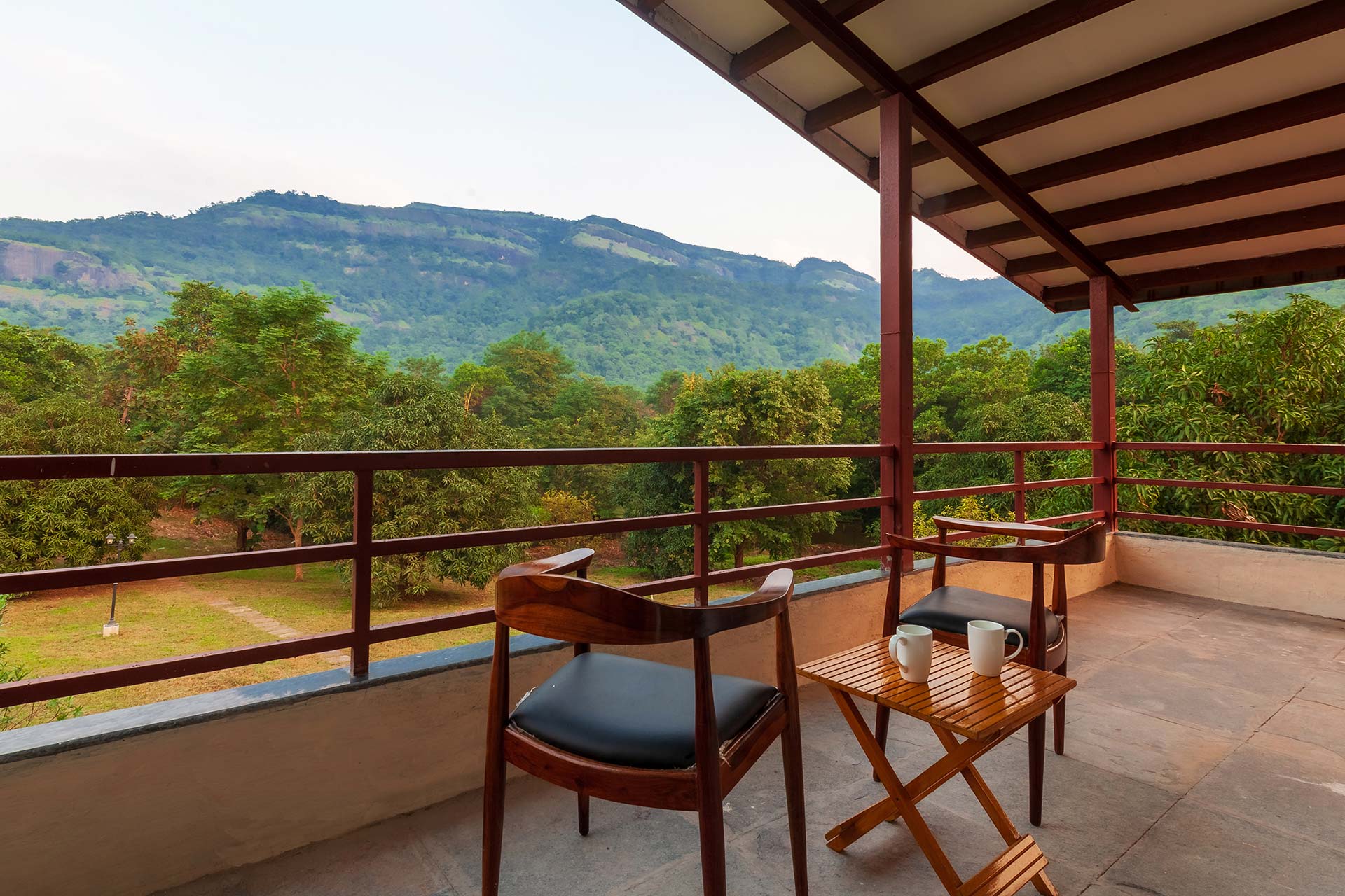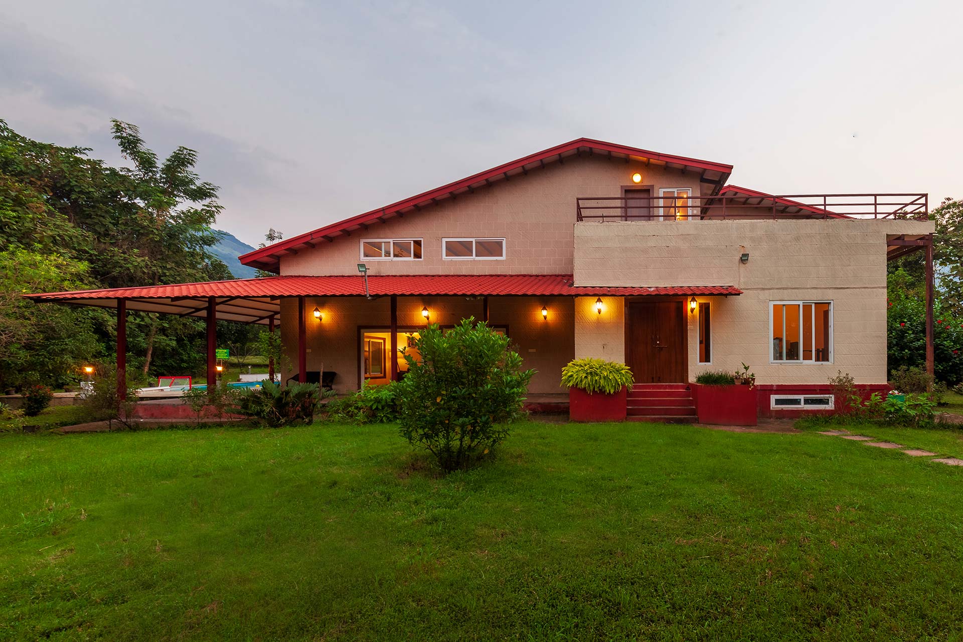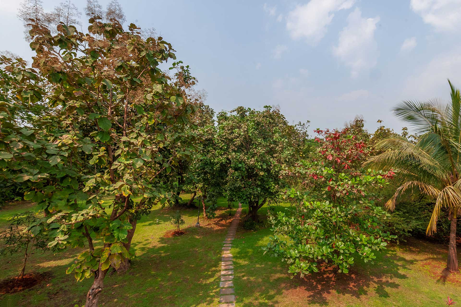 – 3.75 acres sprawling lawn featuring tall trees and a mini mango orchard with ample seating arrangements.