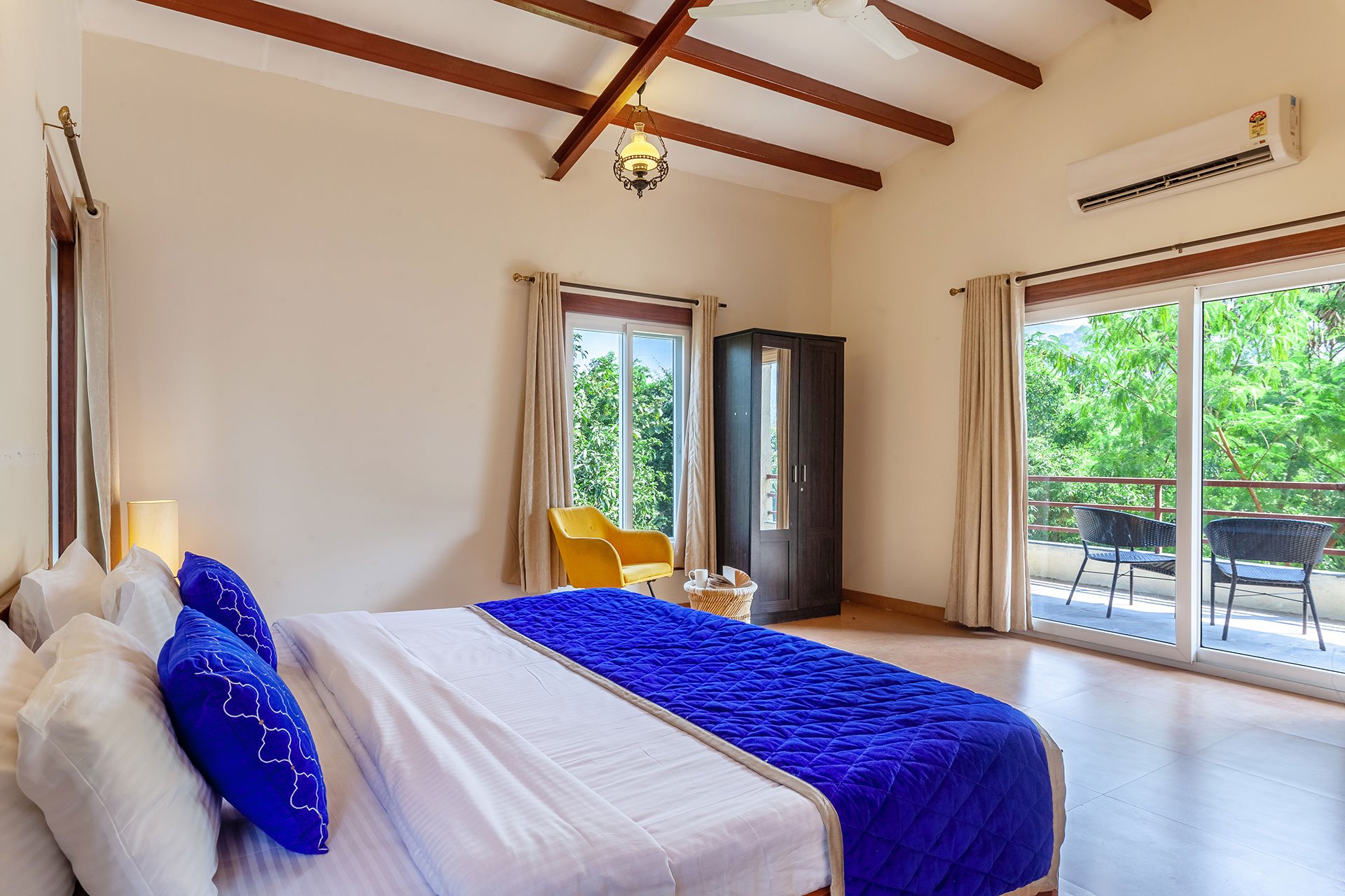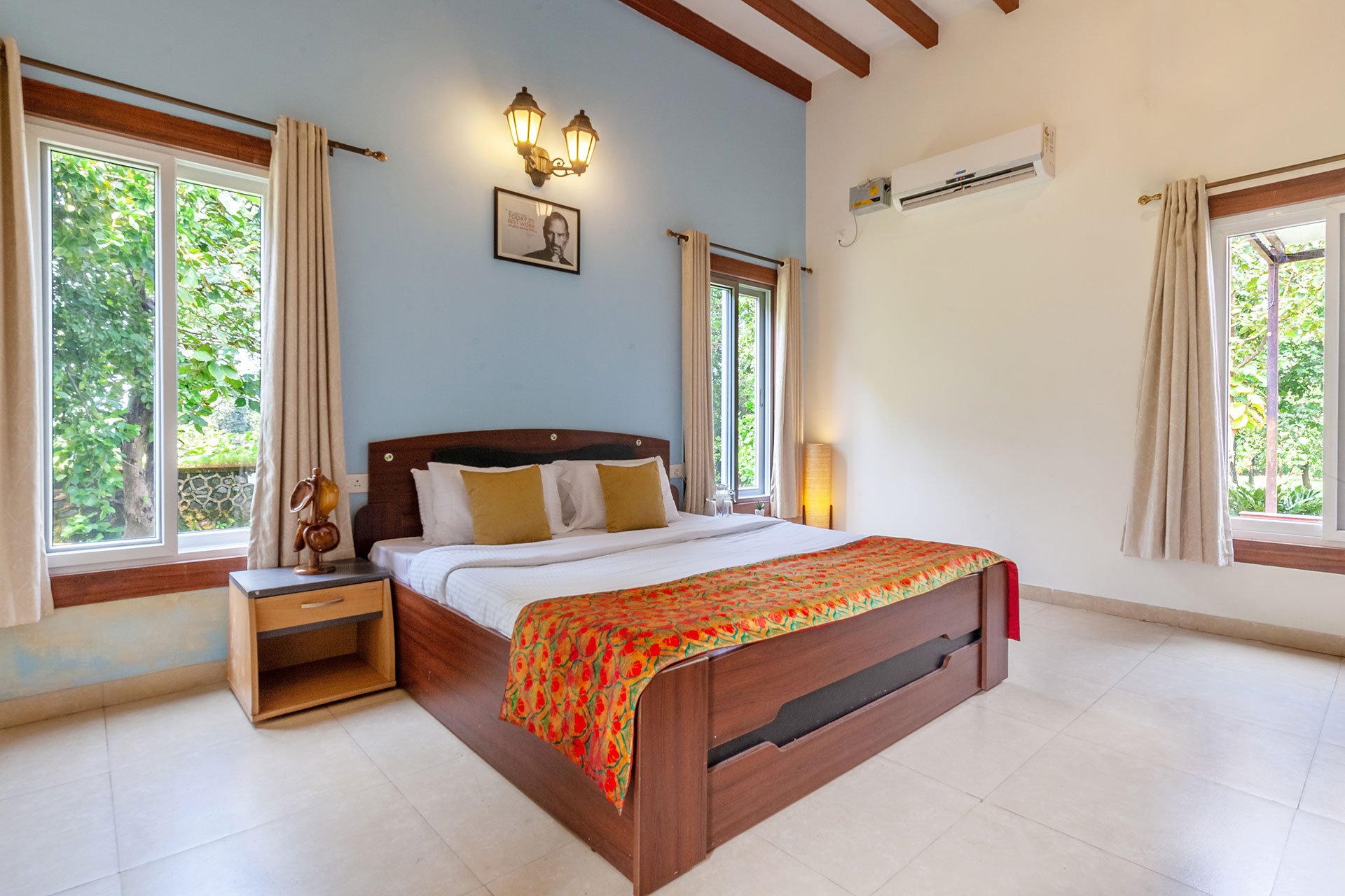 – All bedrooms offer amenities such as an AC, king-sized bed, extra mattress, Wi-Fi, and a wardrobe.