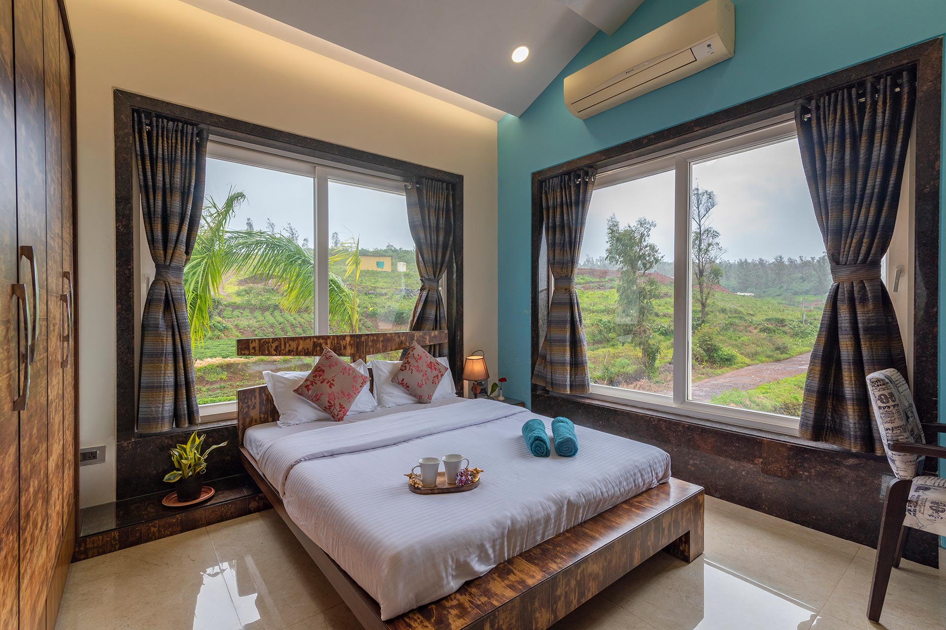 Within the property, guests can play indoor games like cards and ludo. They can take a peaceful stroll on the lawn, unwind in the glass house and savour the blissful views. They can also relish a lavish barbecue spread and request for a bonfire to be lit up.