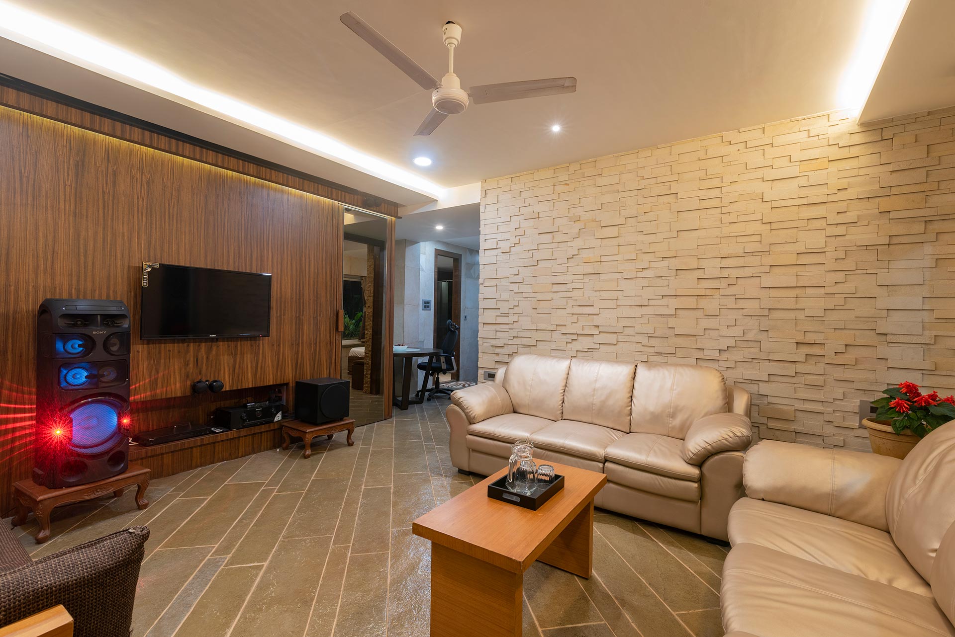 – It is equipped with a wired music system, TV and a wired CCTV camera for security purposes.