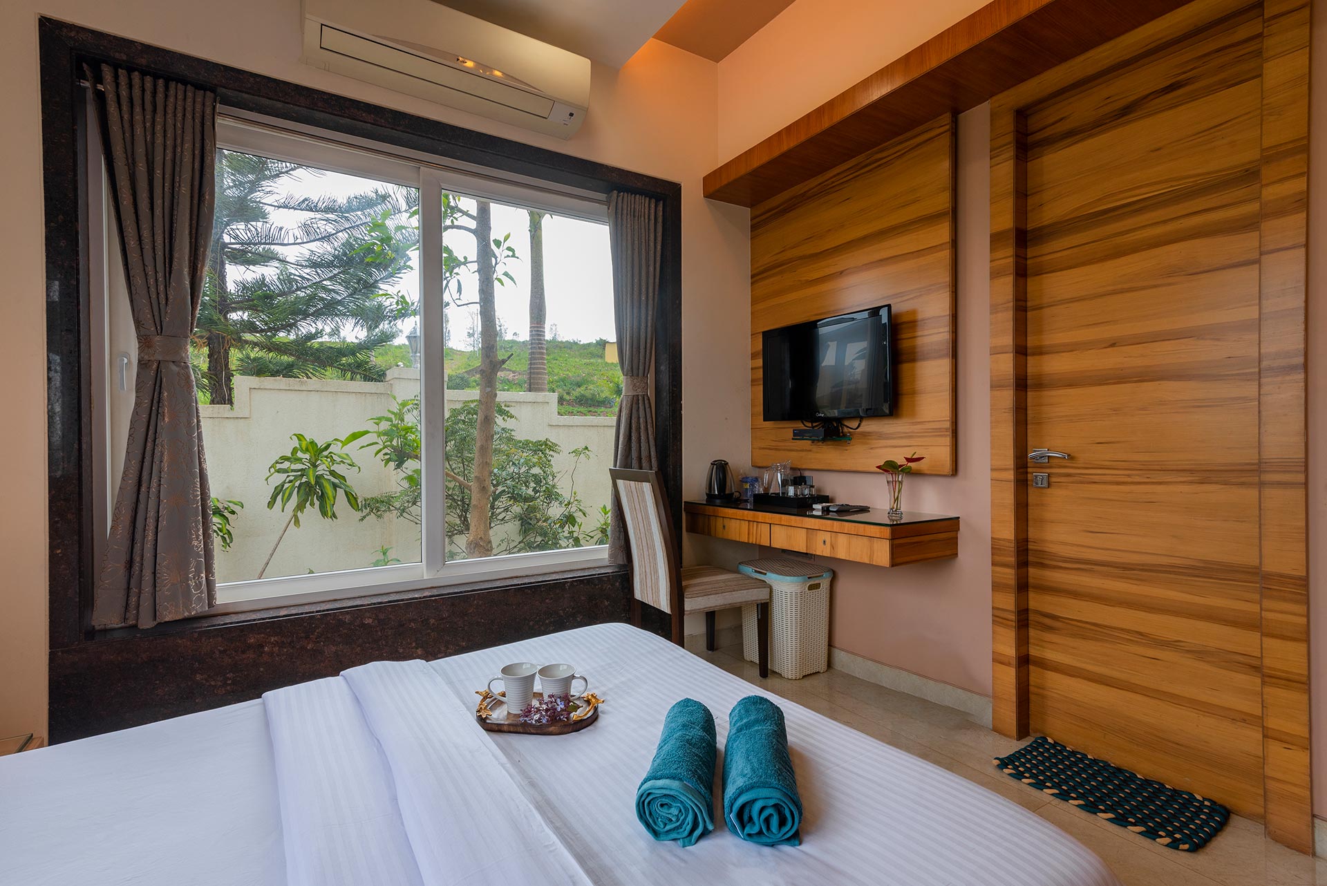 – All attached bathrooms have a separate dressing area, geysers, towels and basic toiletries.