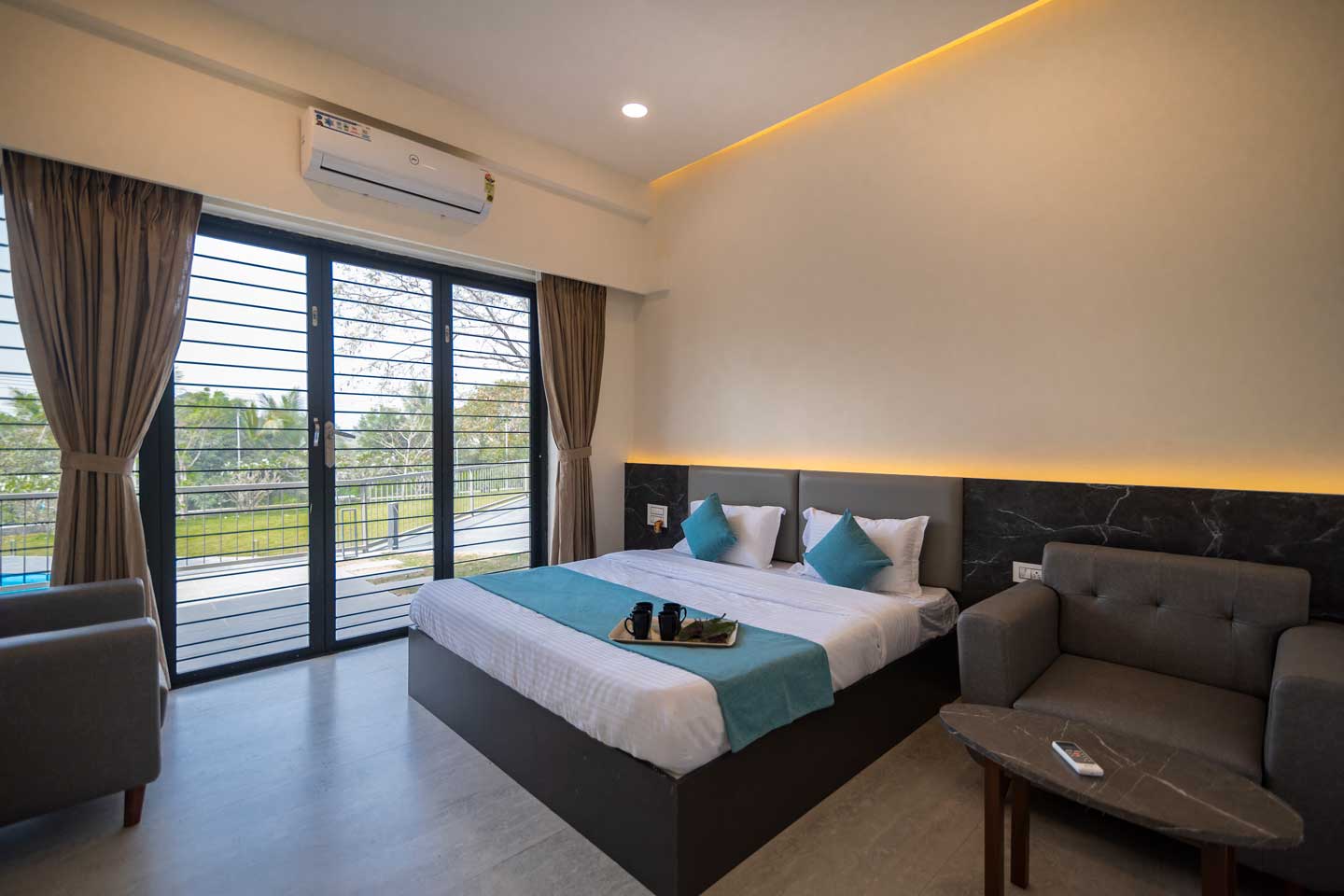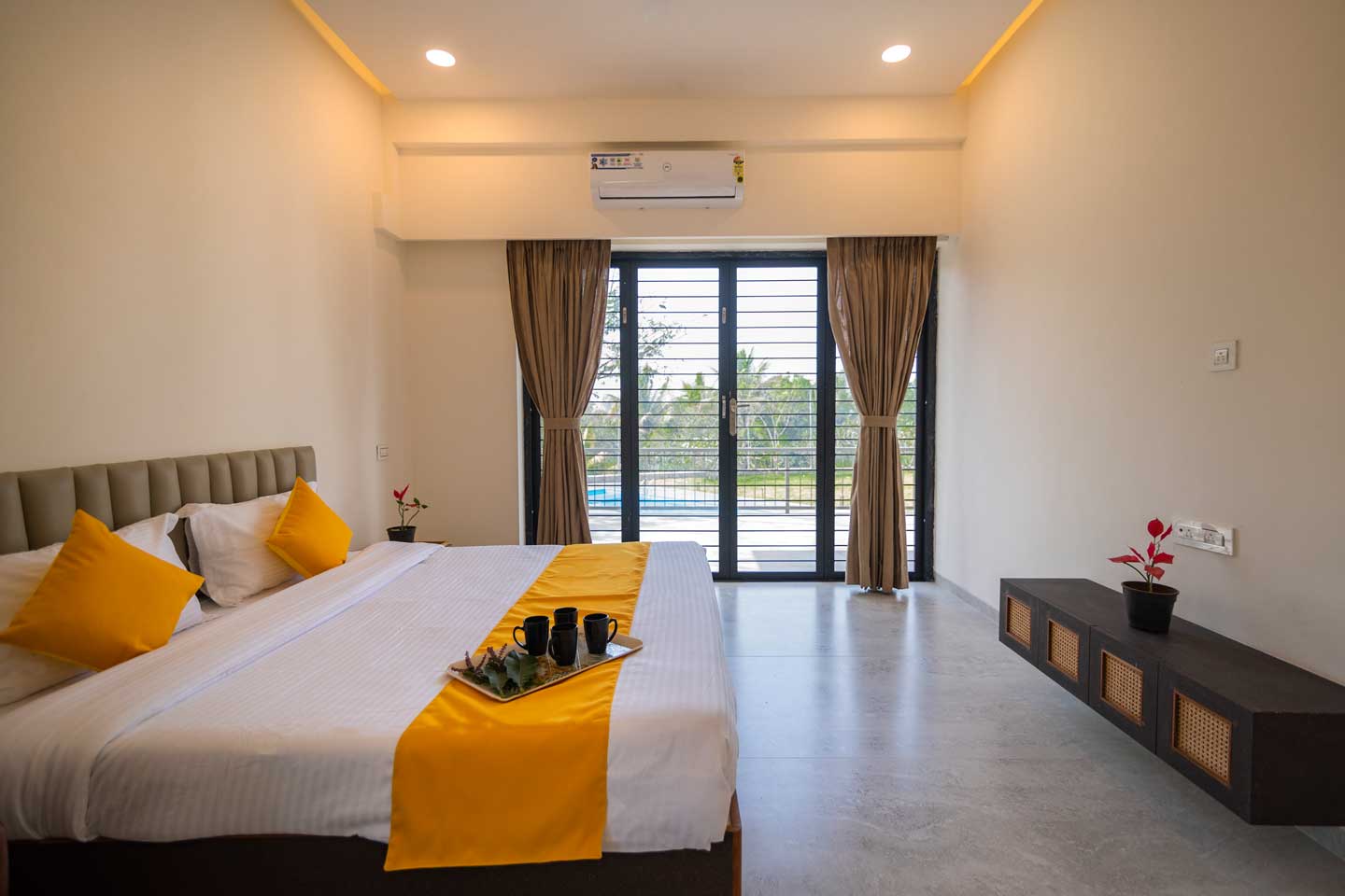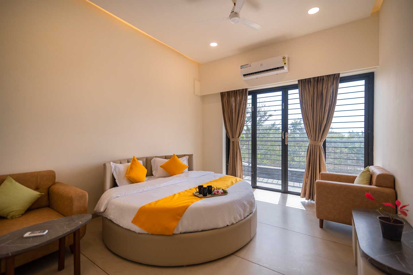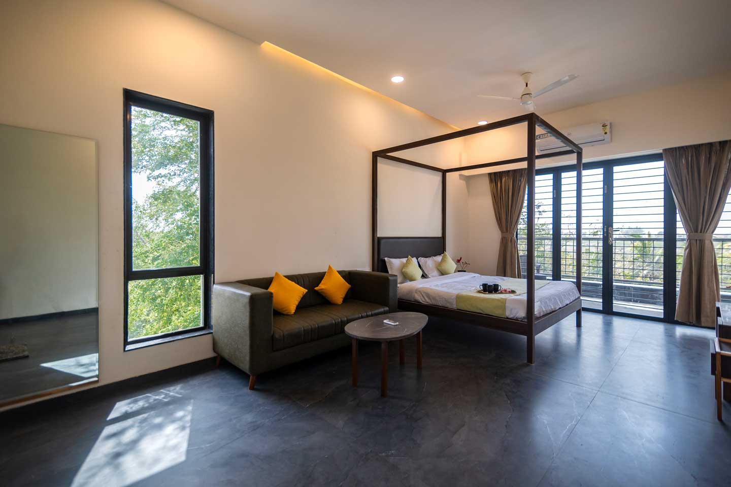 – All bedrooms open up to an attached balcony offering scenic views of the garden.