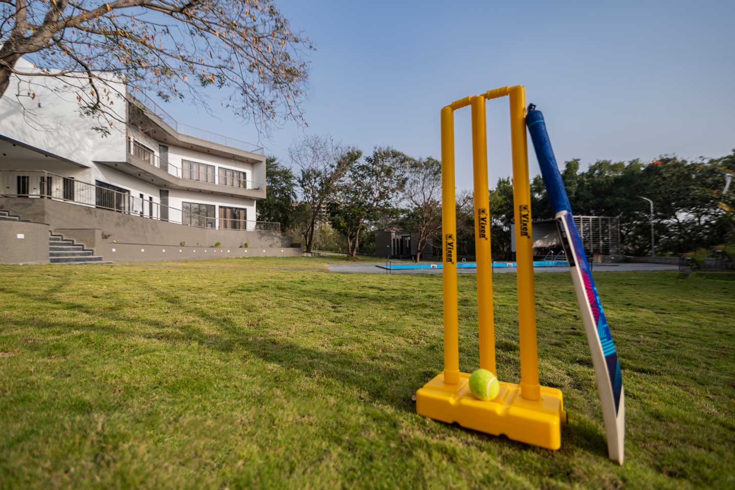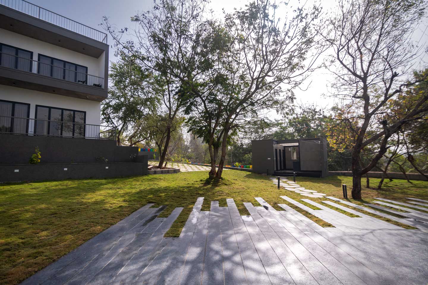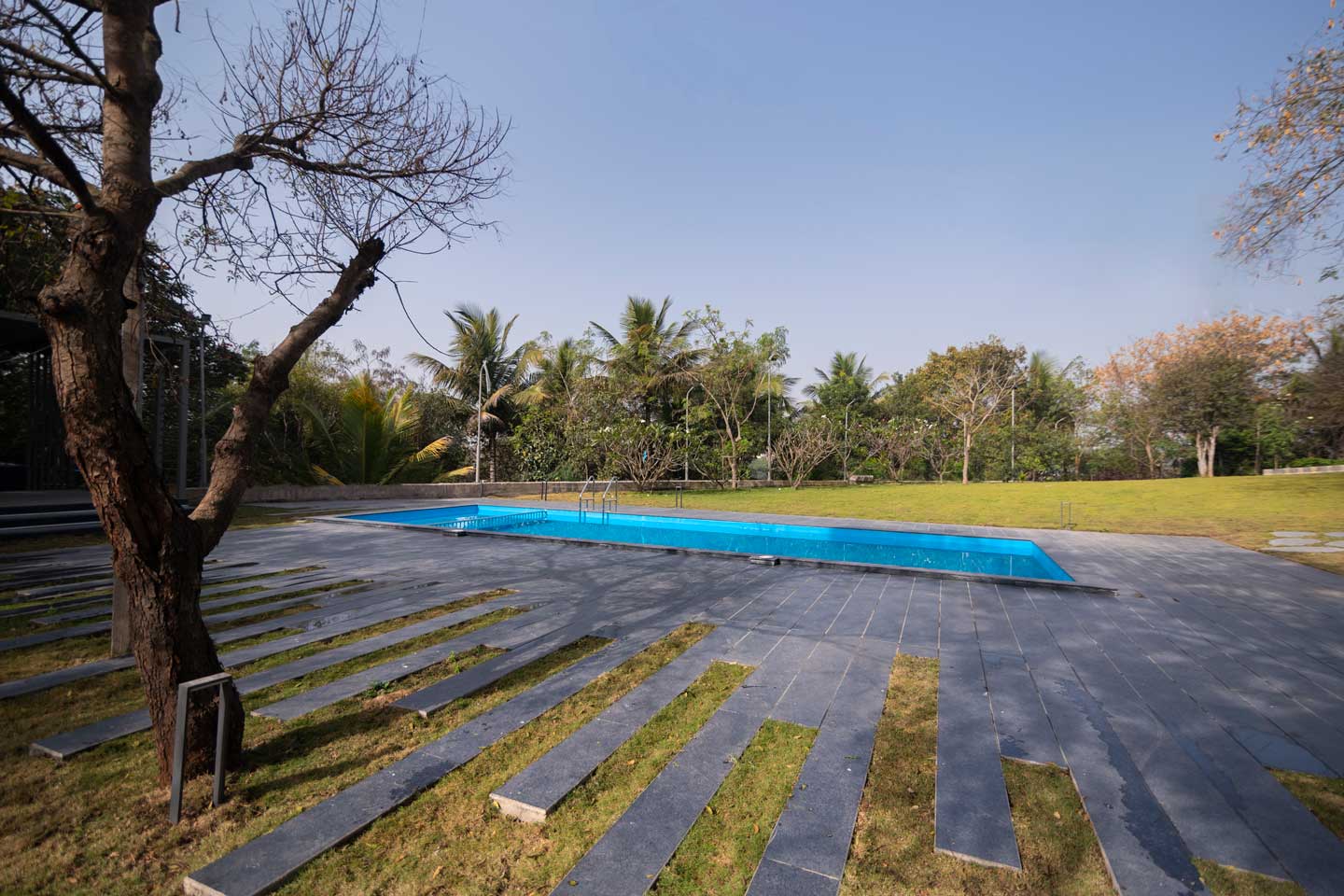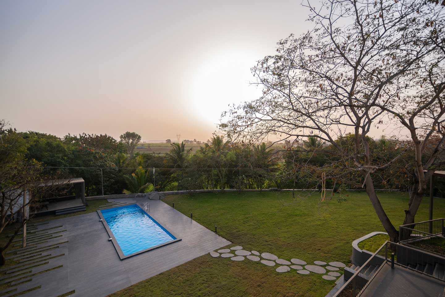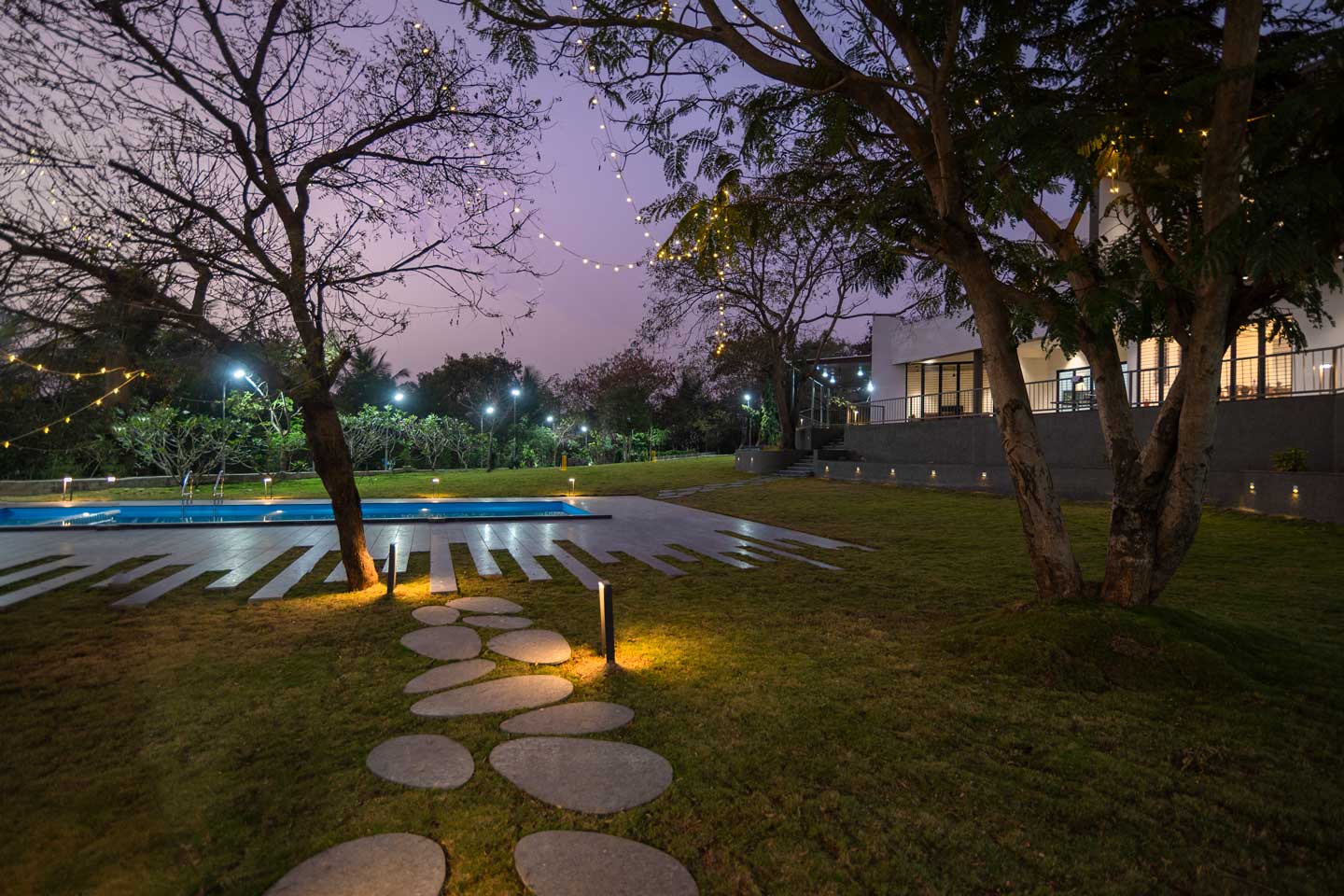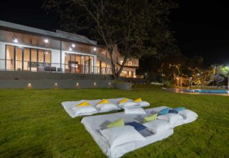 – The 30000 sq. ft. manicured lawn is furnished with cosy sofa-style seating arrangements, ideal for an evening spent amidst nature.