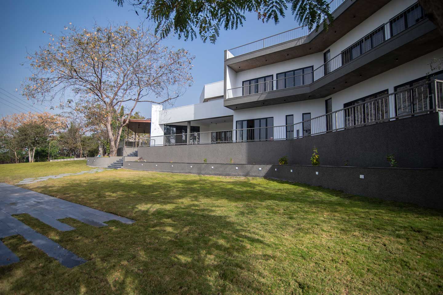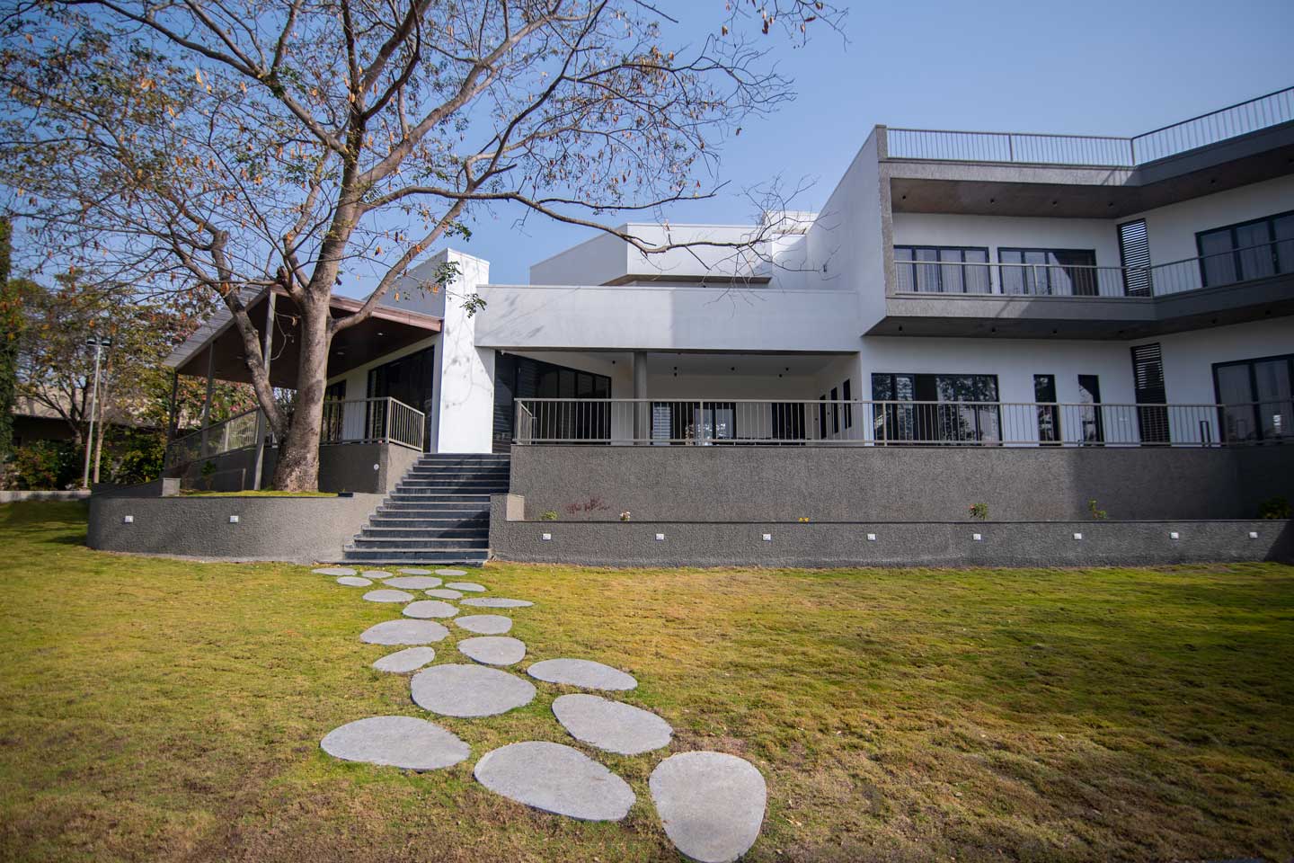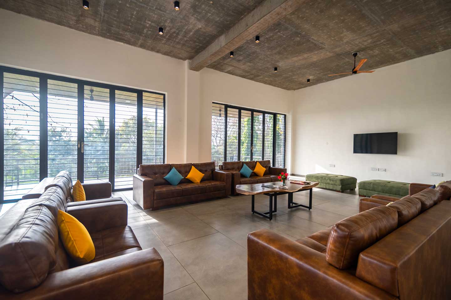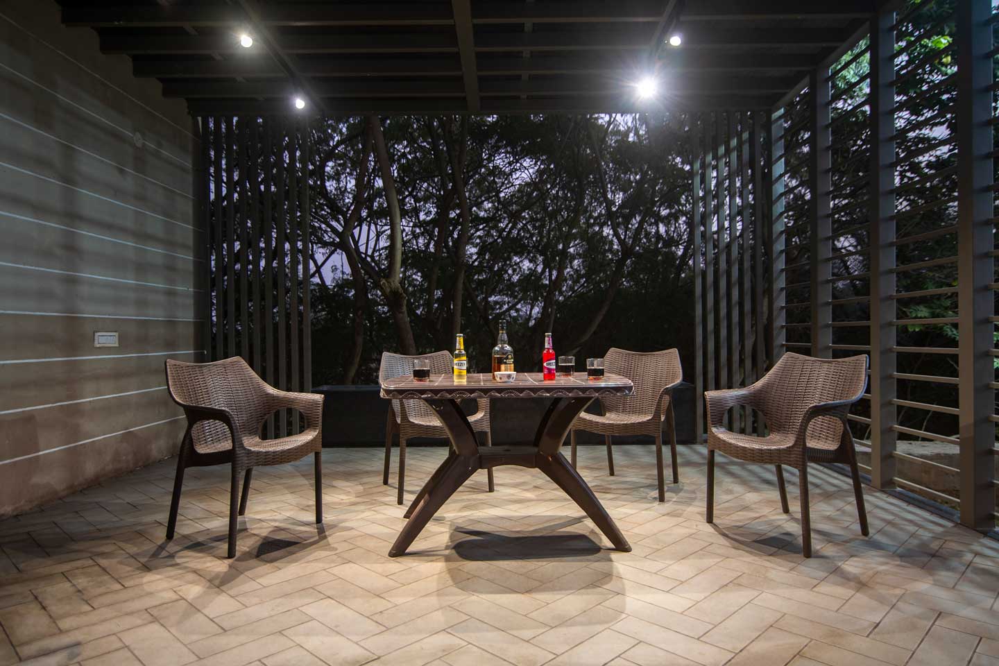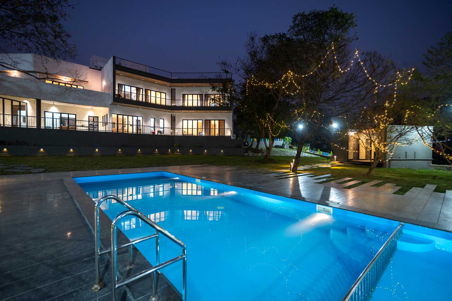 – The 30000 sq. ft. manicured lawn is furnished with cosy sofa-style seating arrangements, ideal for an evening spent amidst nature.