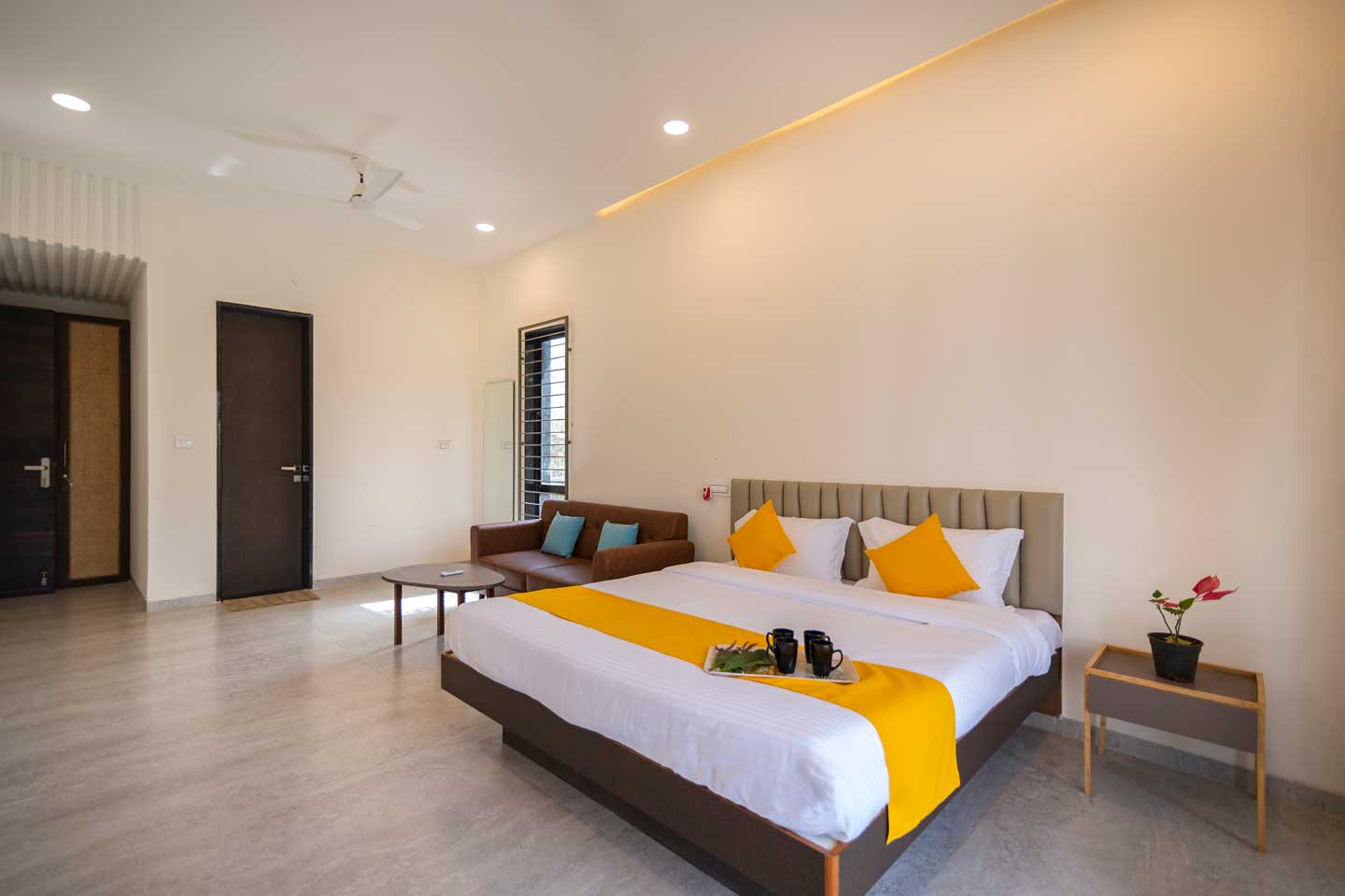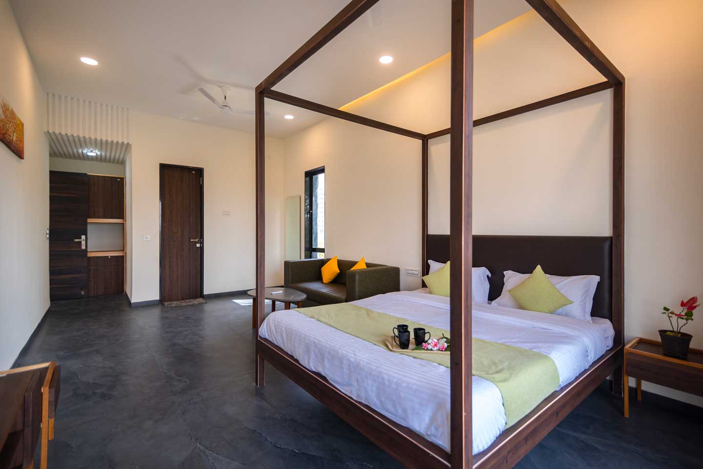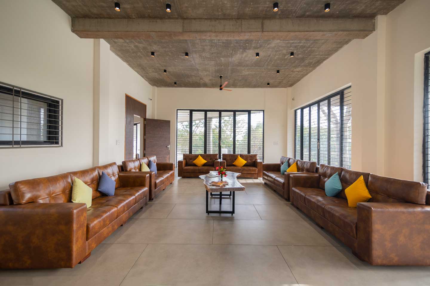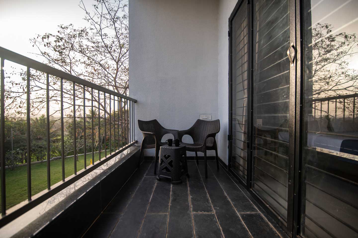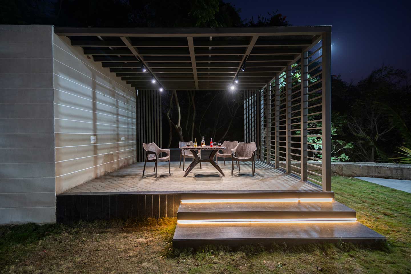 – The 30000 sq. ft. manicured lawn is furnished with cosy sofa-style seating arrangements, ideal for an evening spent amidst nature.