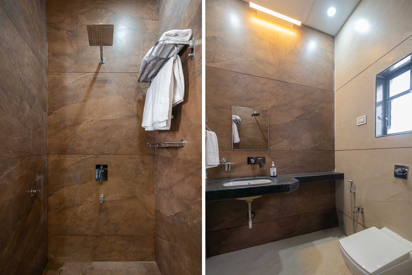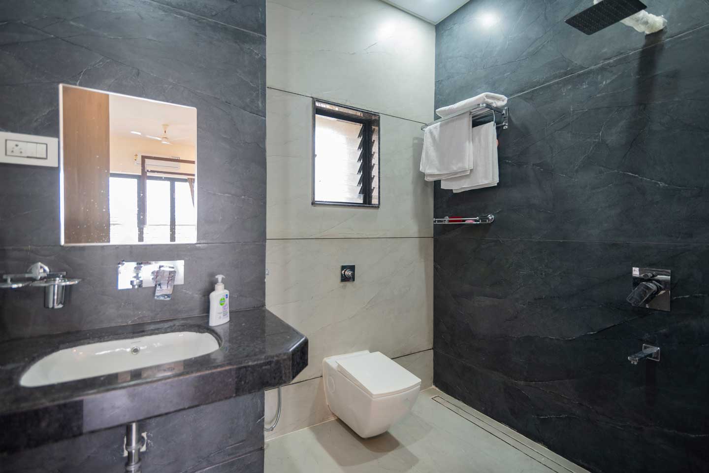 – All bathrooms have geysers, towels, and basic toiletries.