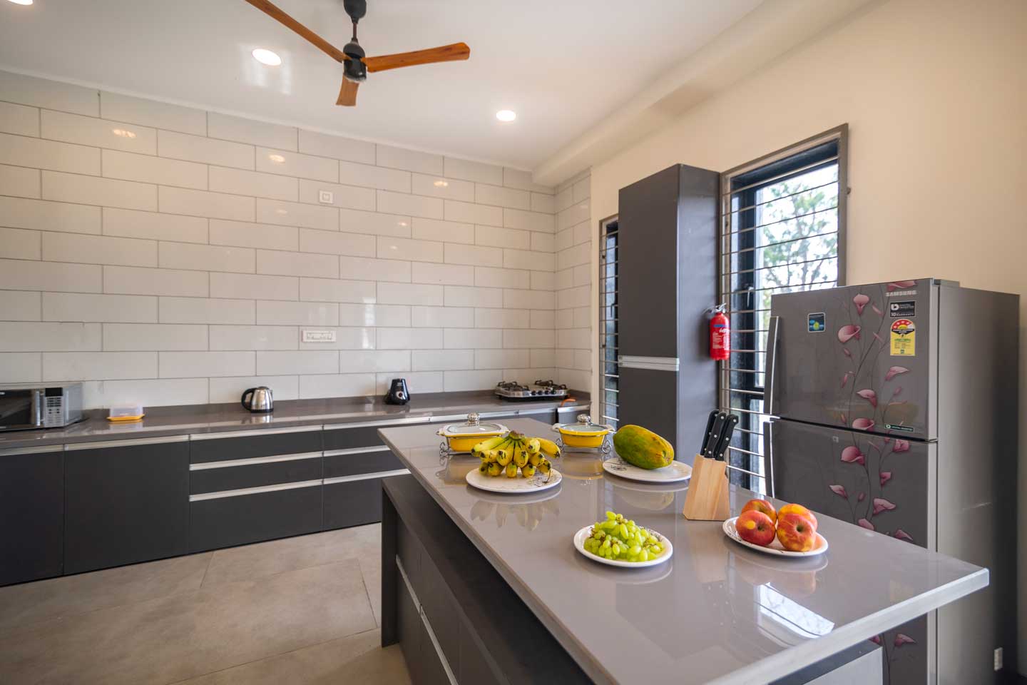 – It is equipped with a water purifier, crockery and cutlery.