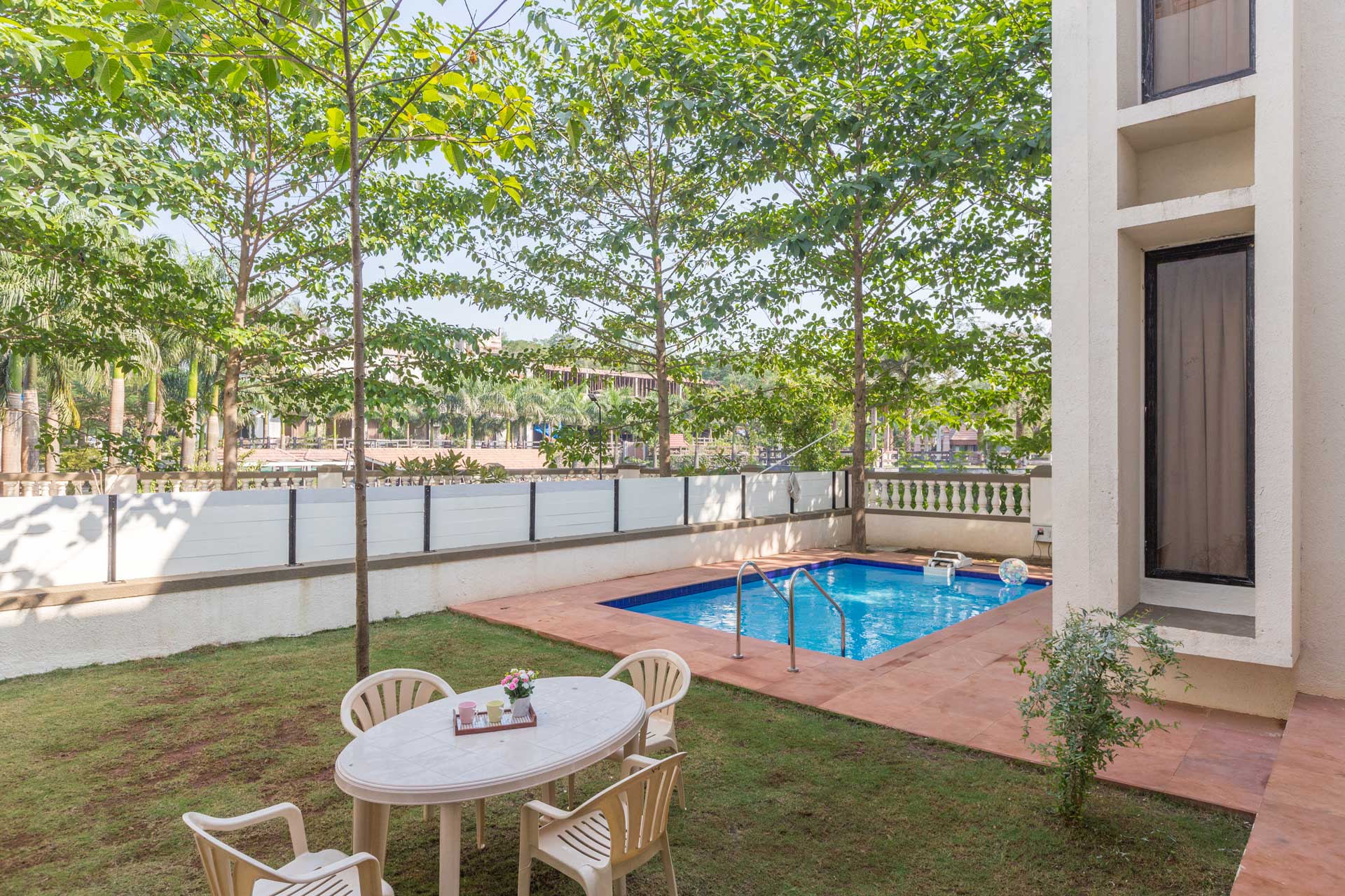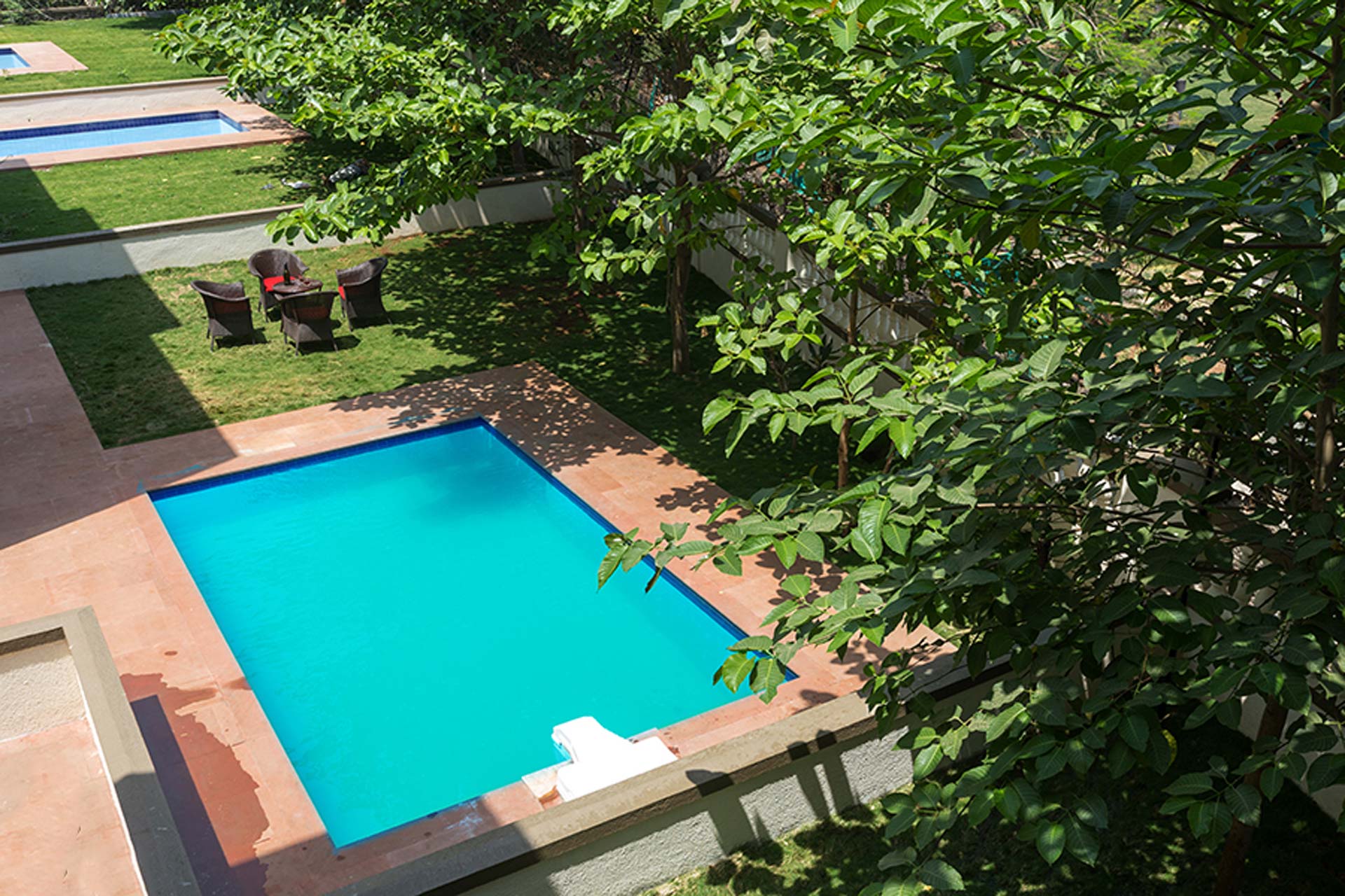 – Each of the villas offer a private lawn & a terrace with seating space where guests can sit out and relax while having a cup of their favourite beverage.