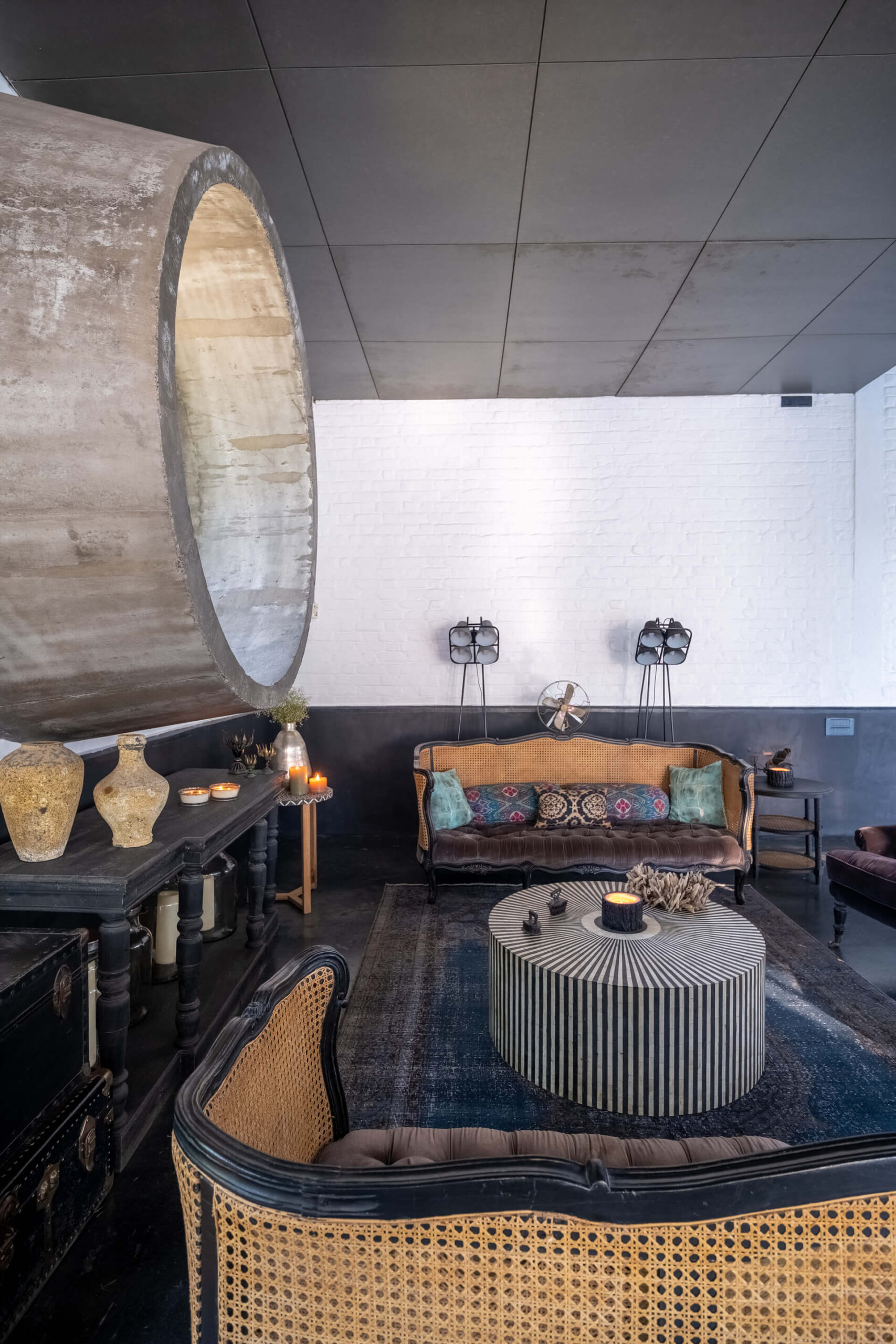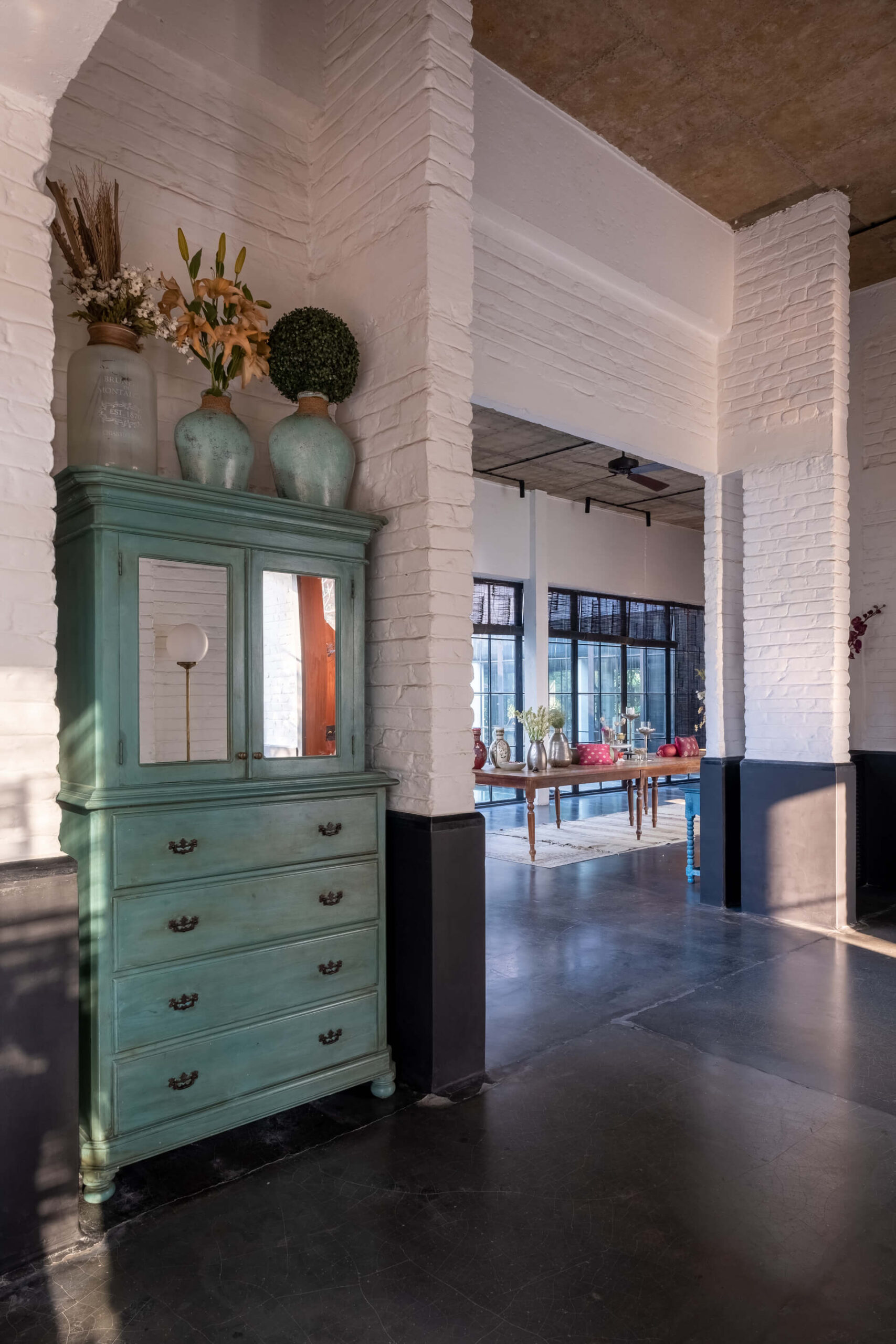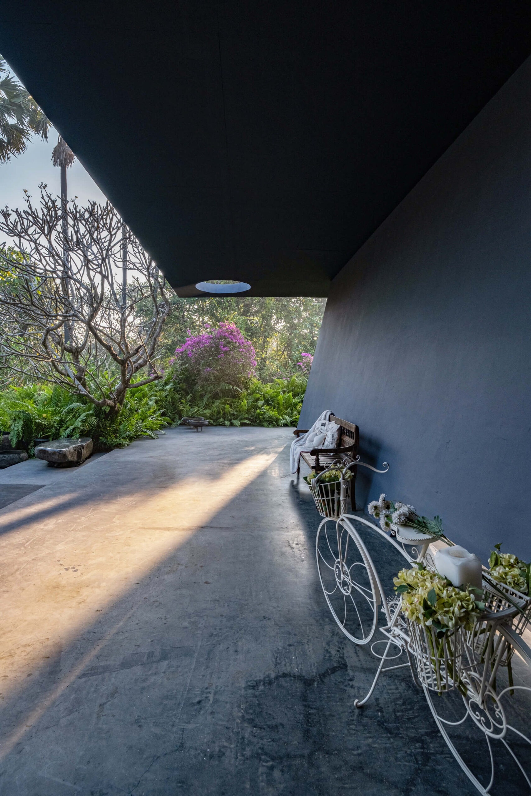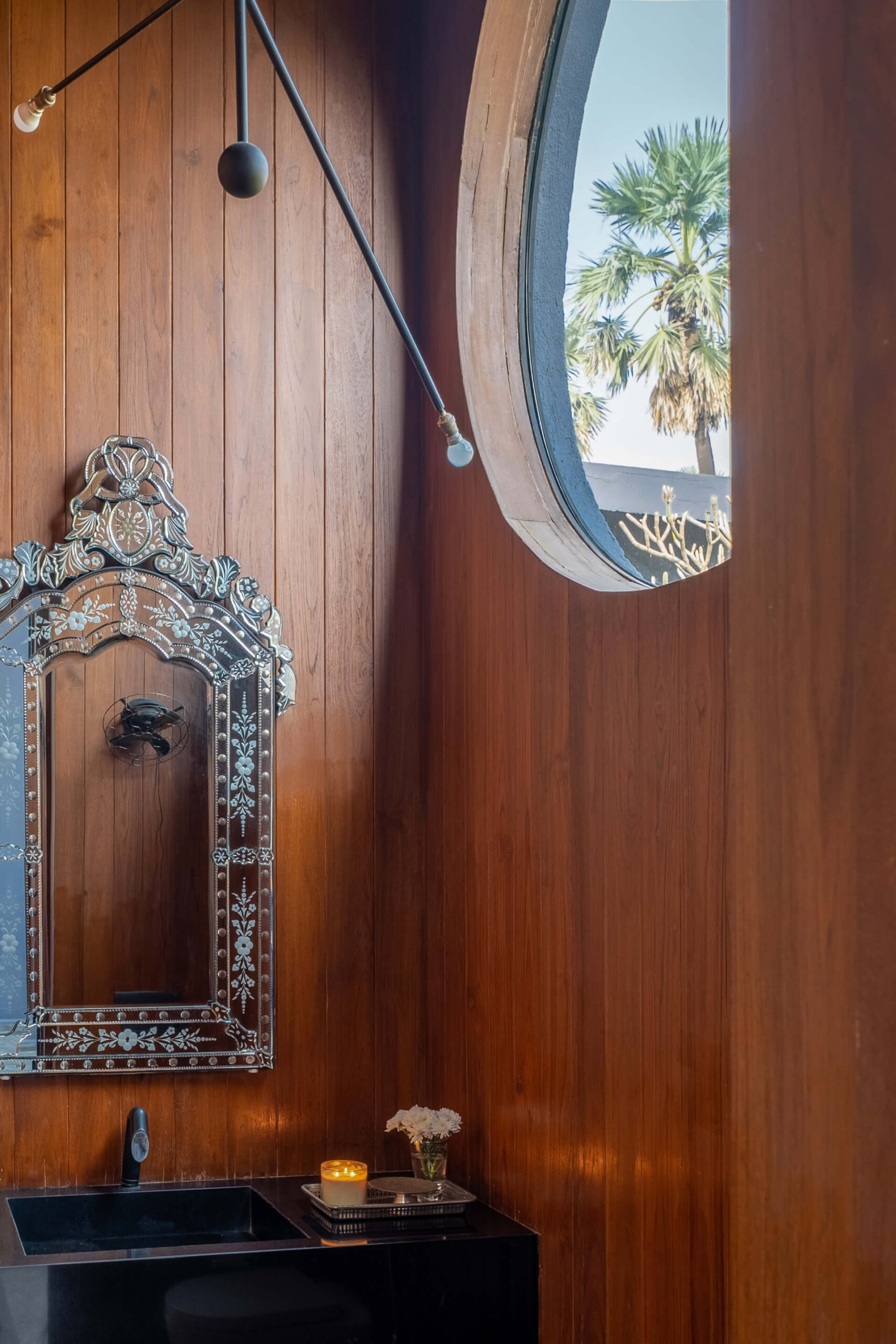 Built on the tenets of California Modernism, Greystone Manor, located in Awas, Alibaug, is a grand 5-bedroom villa that gracefully blurs the boundaries between indoors and outdoors. The transparent glass panels and the clever layout, centered around the pool, encourage interaction and spending time with loved ones. The colourful Bohemian decor strikingly contrasts the grey coloured exterior which echoes the indigenous rocks. For an intimate gathering with friends, the outdoor bar and seating areas will make the perfect setting, while the expansive lawns and dedicated games room will make for an unforgettable holiday with the family.