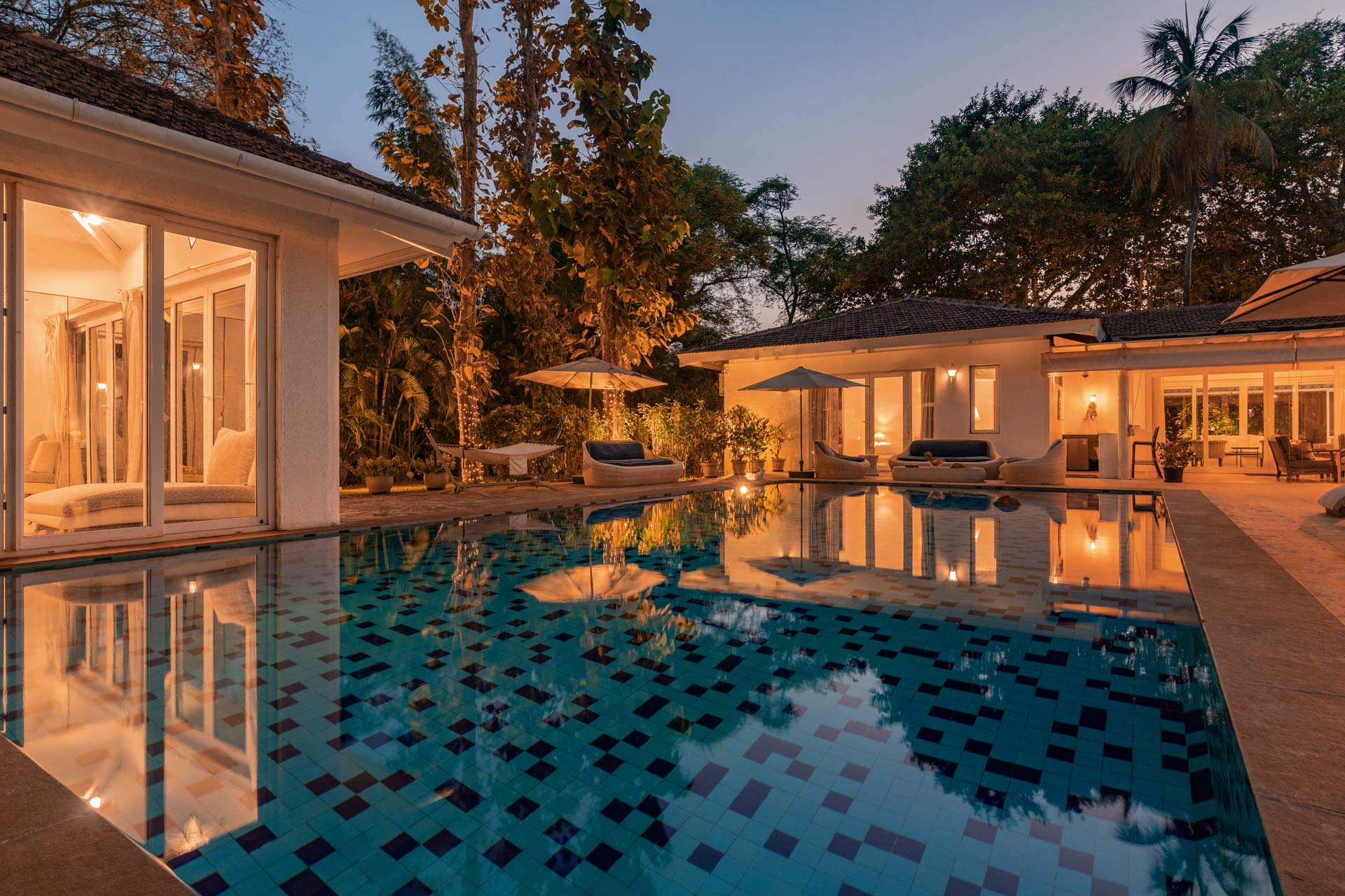 Surrounded by greenery and close to the beach, Hamptons Charm is a stylishly elegant villa in Alibaug. The furnishing is a superb balance of traditional and contemporary comfort. Most rooms surround the pool and even open up to it, including the pavilion. Two can play table tennis by the pool, or simply lounge around it. This villa is an ideal place for you to relax and spend quality time with friends and family, head here for a charming time!