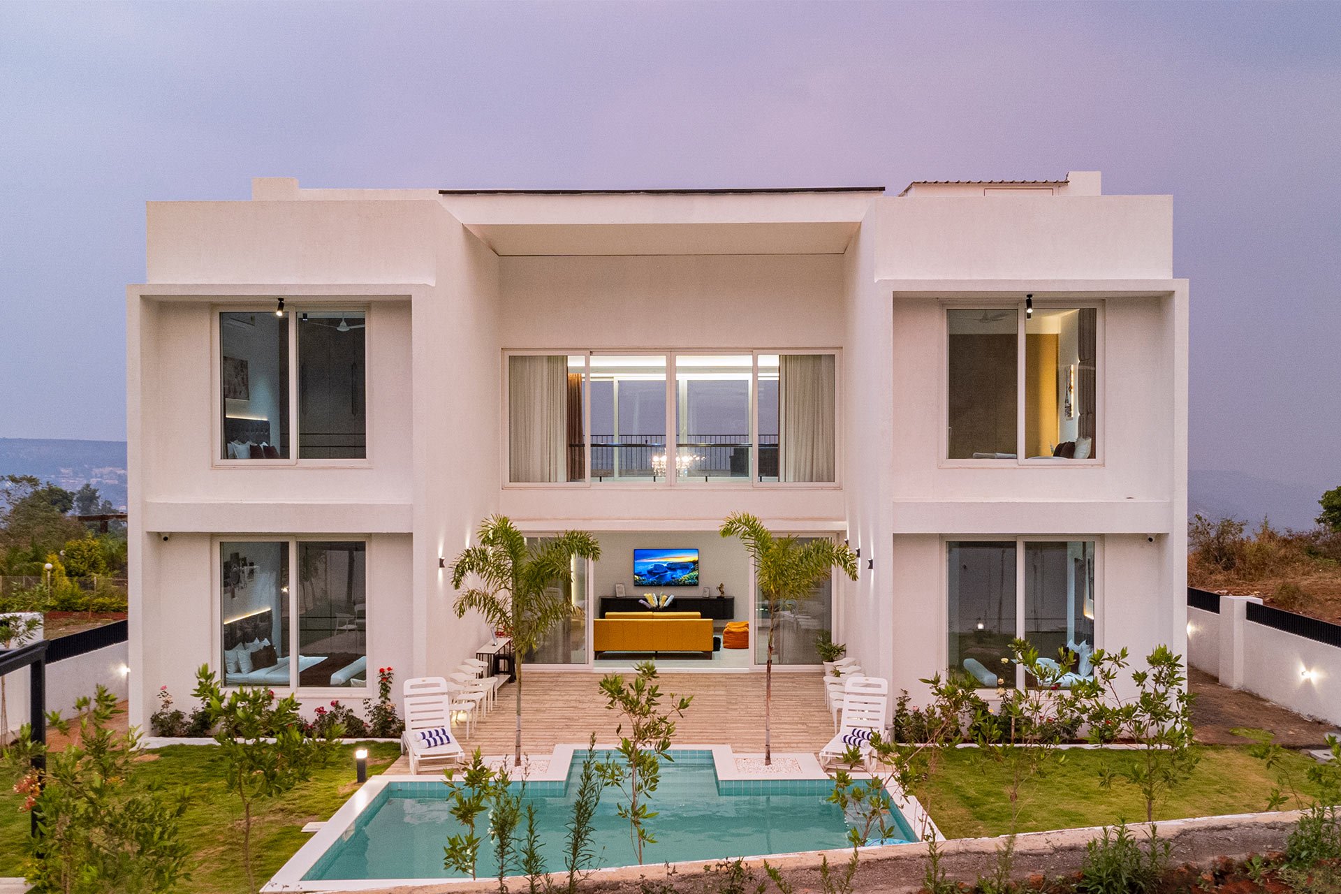 Welcome to Hilldale, an enchanting villa nestled in the picturesque town of Panchgani. This exquisite property is a perfect blend of modern elegance and whimsical charm, and one of its defining features is its breathtaking location, offering panoramic views of the valley and Tableland. The private outdoor pool, accompanied by a spacious deck, is an oasis of luxury where you can unwind and bask in the mesmerising scenery. The meticulously landscaped lawn with a charming gazebo is a delightful spot to enjoy a cup of tea and soak in the tranquillity of your surroundings.