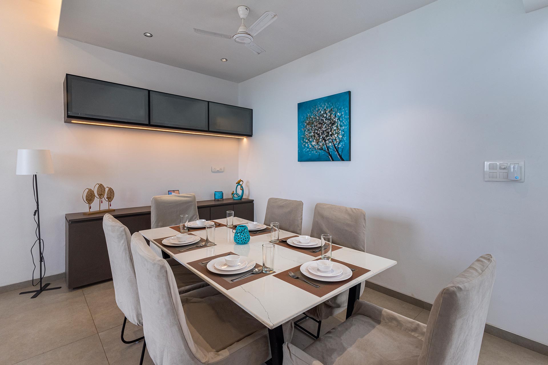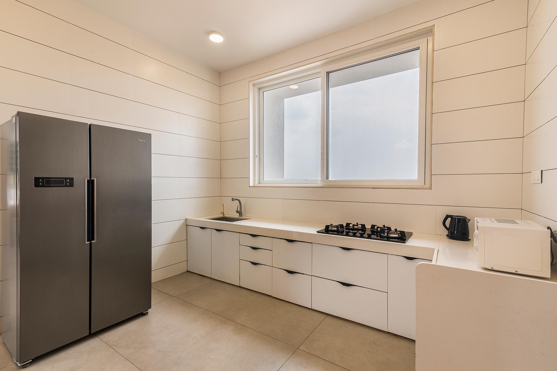 – Muted ivory hues throughout the expanse that lend a serene ambiance to the space