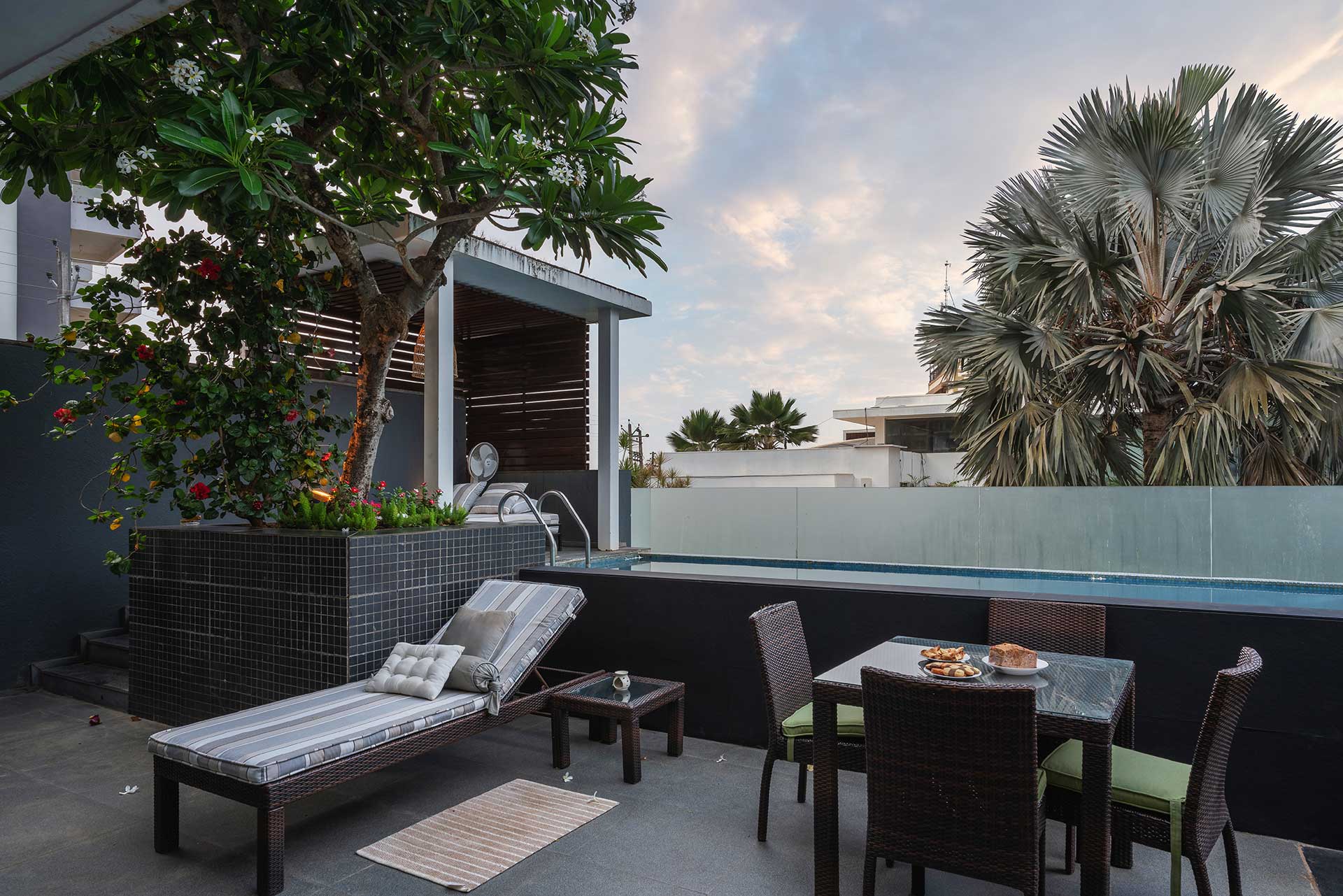 There is a plunge pool attached to the bedroom on the first floor. It is 12×6 ft. in size and 4.5 ft. in depth.