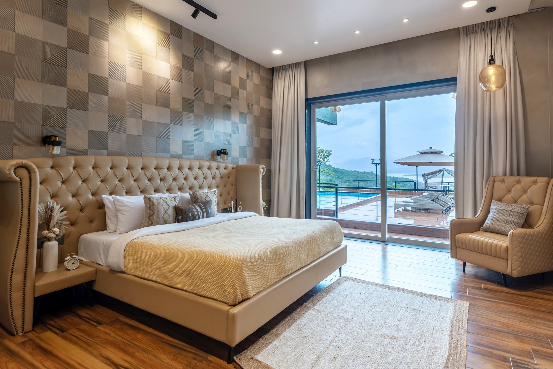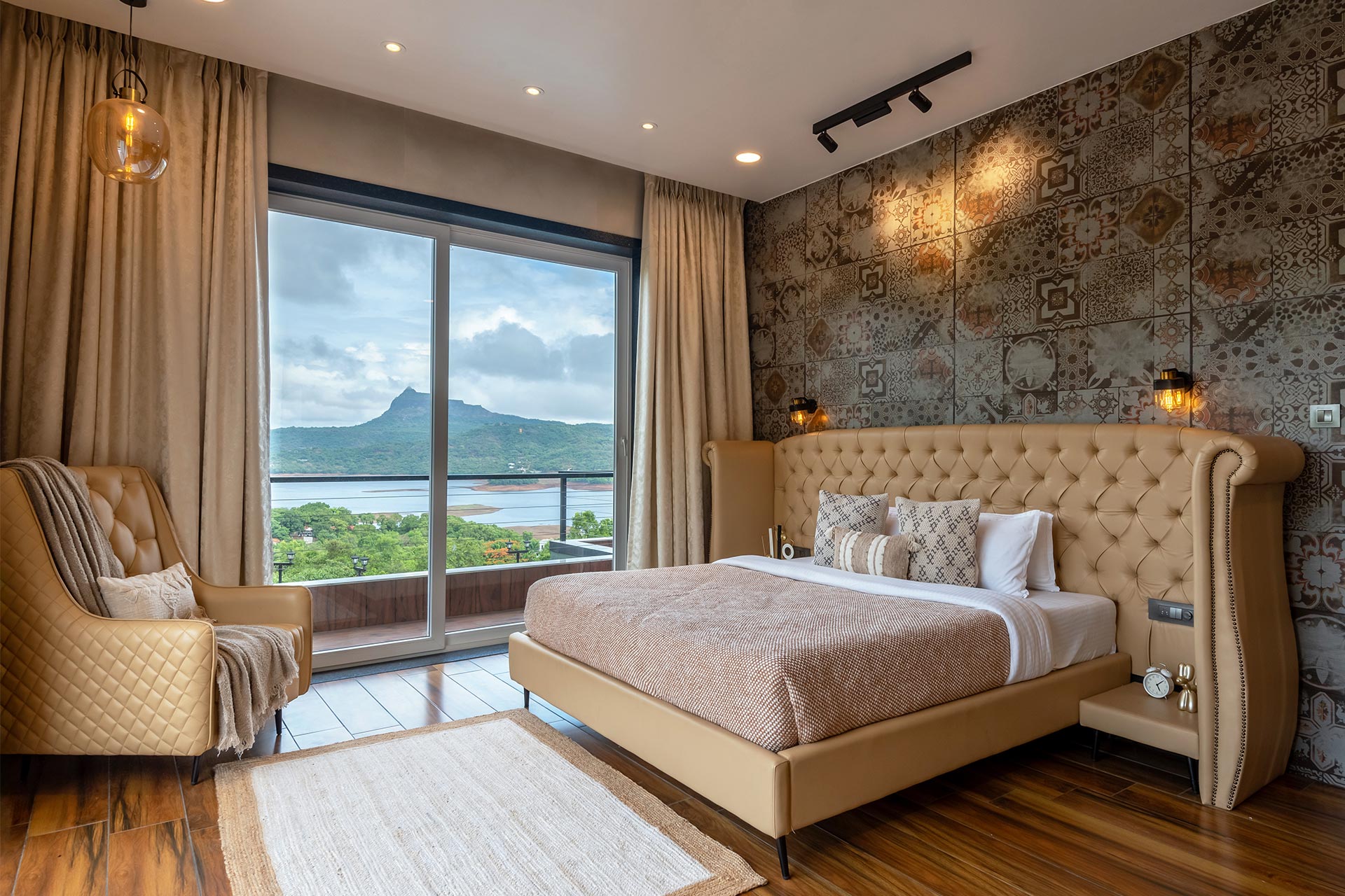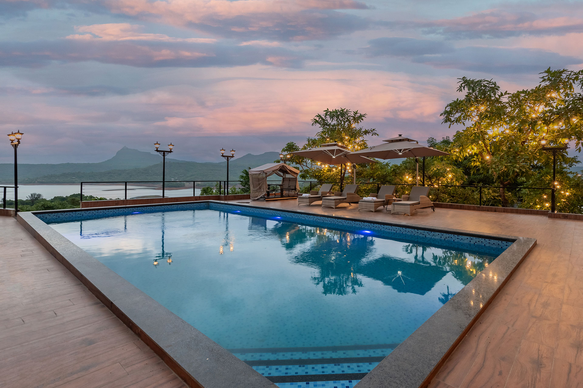 La Nirvana is a haven resting by the invigorating Pawana Lake, transcending the concept of a mere holiday. Imagine waking up to the gentle strokes of the mountain breeze as the rhythmic ripples of the lake energise the soul. Woven in classy interiors, this lovely abode is crafted to foster relaxation amidst the humble ambience of the Lonavala. Let the lively vistas unfold in front of you from every coroner. With a pool facing the sturdy landscapes, one can find themselves taking a seat back and diving into the restful symphonies of nature.