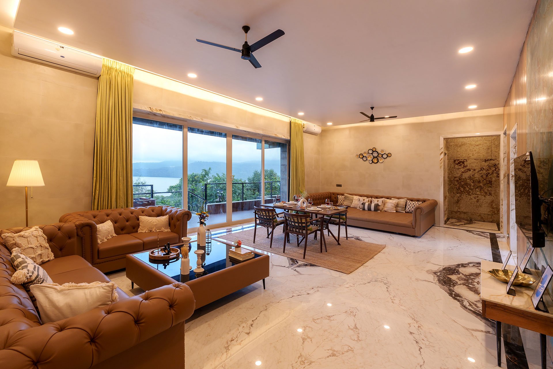 From the moment you step into La Sierra in Lonavala, prepare to be enchanted. Nestled by the tranquil lake, this luxurious haven promises a seamless blend of modern elegance and natural beauty. Begin your stay with a warm welcome and a panoramic lake view that soothes the soul. Dive into the outdoor pool, perfectly positioned to overlook the shimmering waters, or relax on the chic patio with your furry friend by your side.