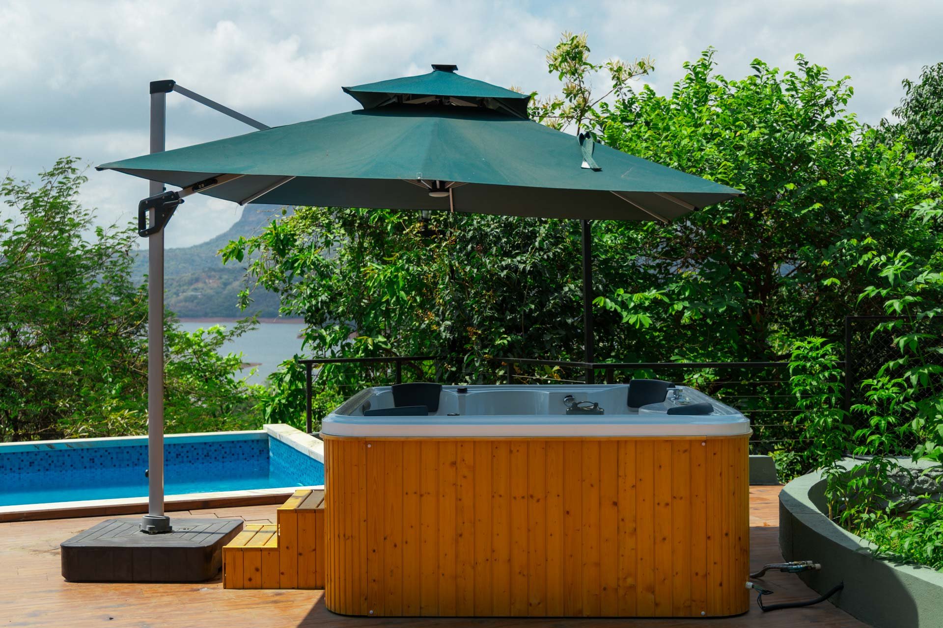 – Outdoor pool where one can dive into luxury overlooking the lake’s gentle waves